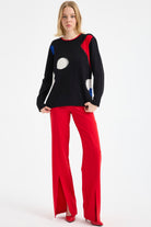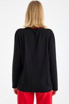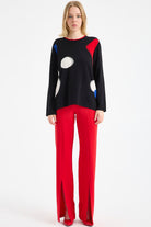 Geometrik Desenli Taş Detaylı Triko Kazak - Siyah