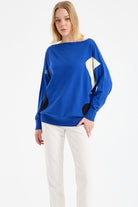 Kayık Yaka Düşük Kol Triko Kazak - Saks
