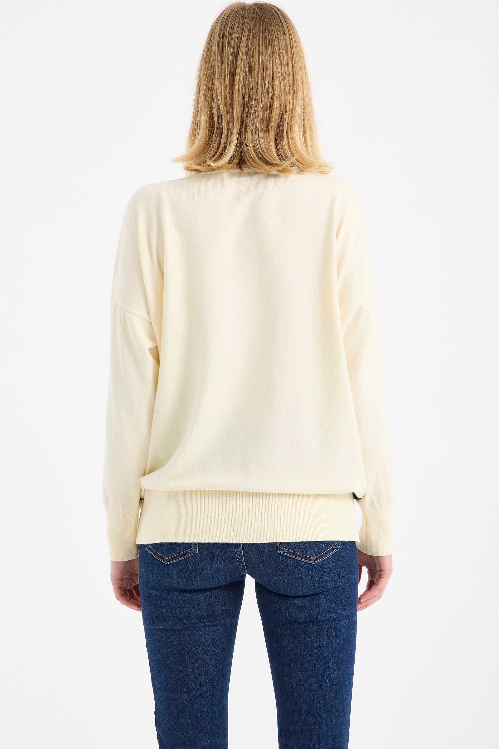Kayık Yaka Düşük Kol Triko Kazak - Vizon