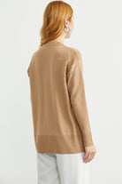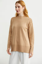 Kol Detaylı Sıfır Yaka Tunik Triko Kazak - Kamel