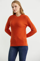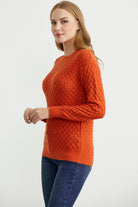 Motifli Sıfır Yaka Triko Kazak - Oranj