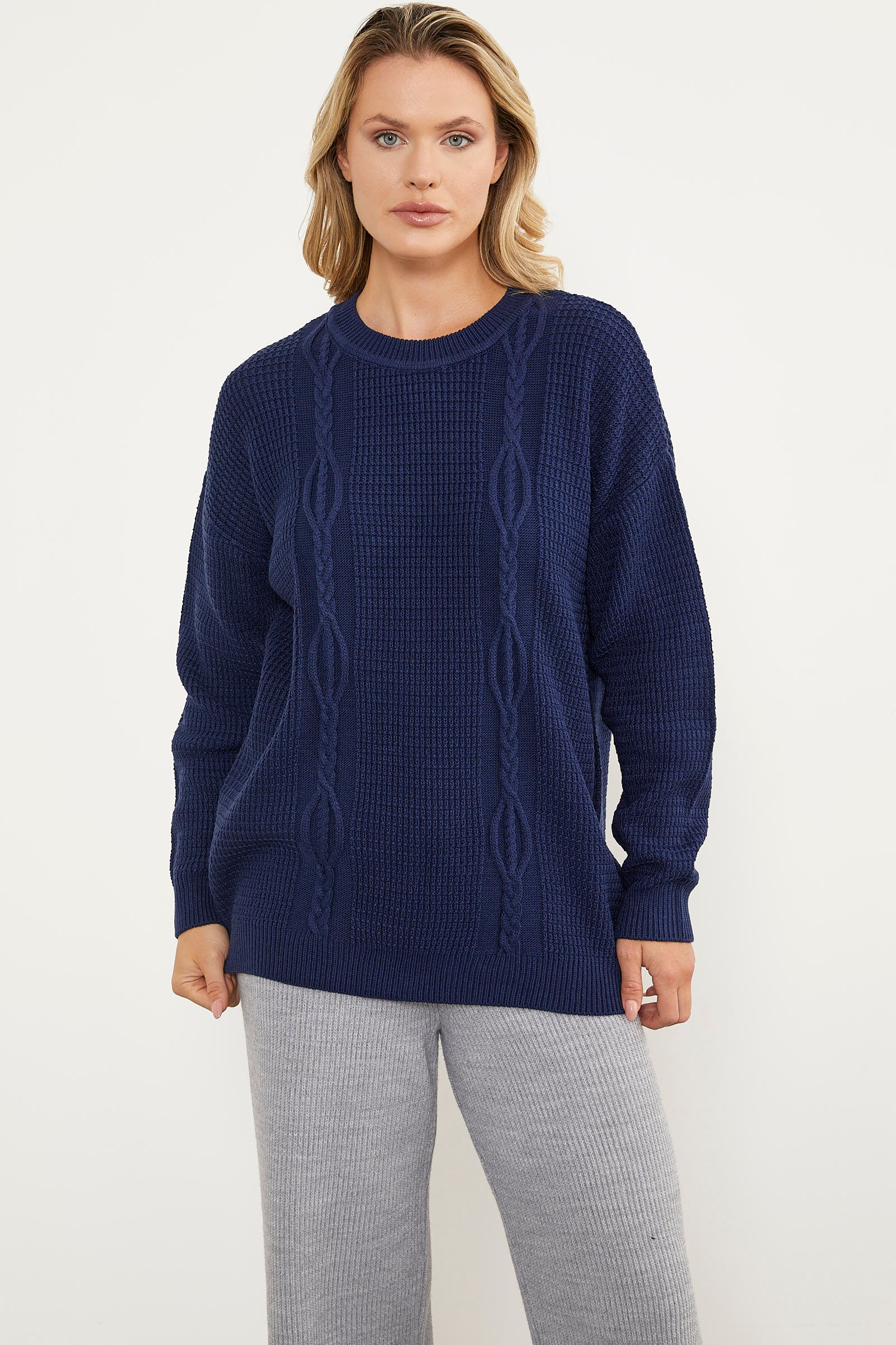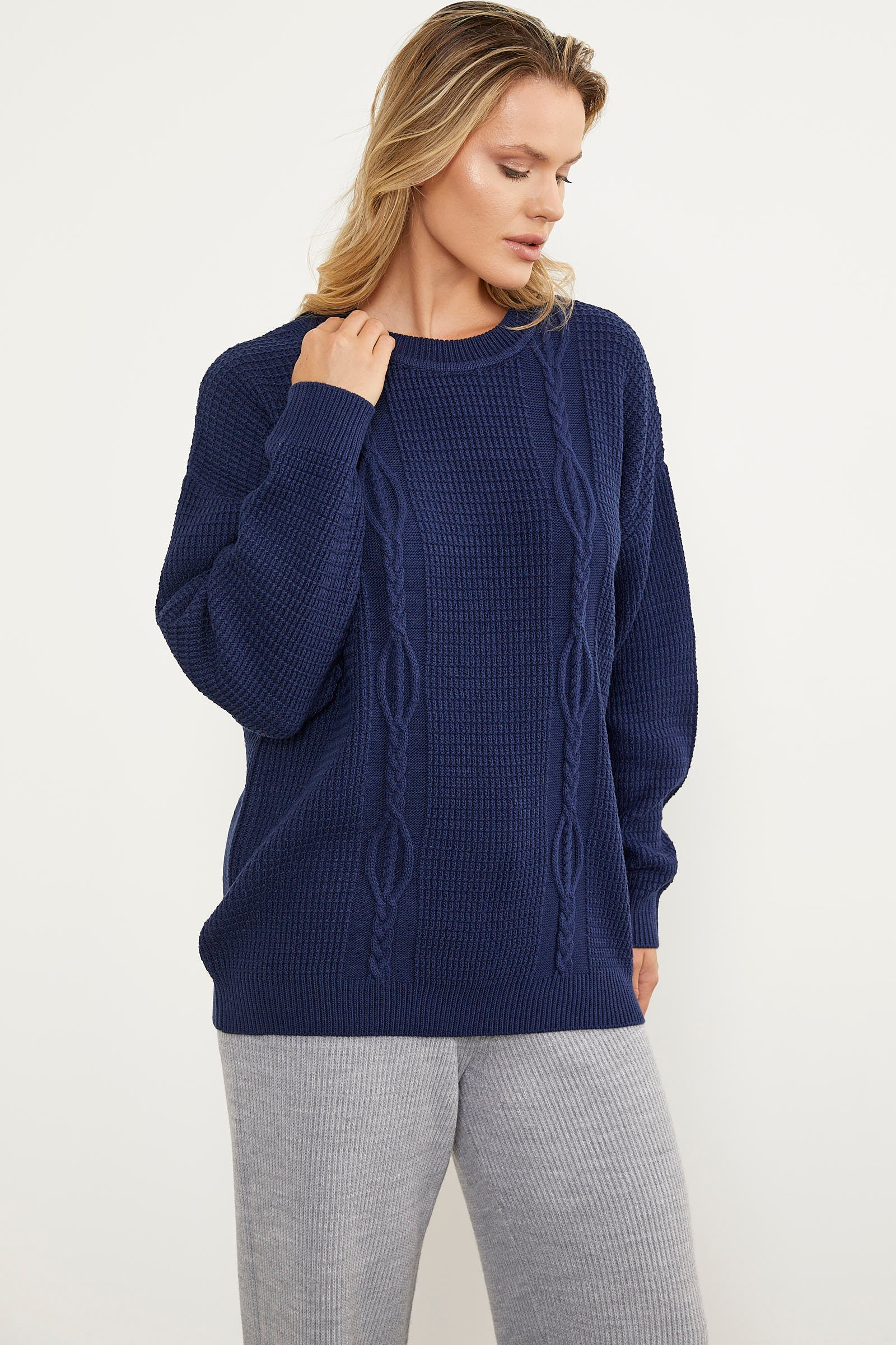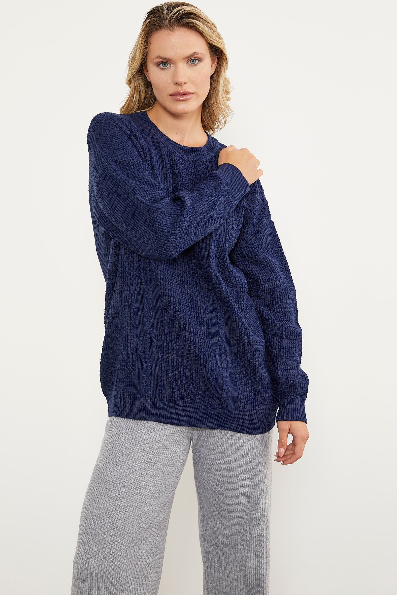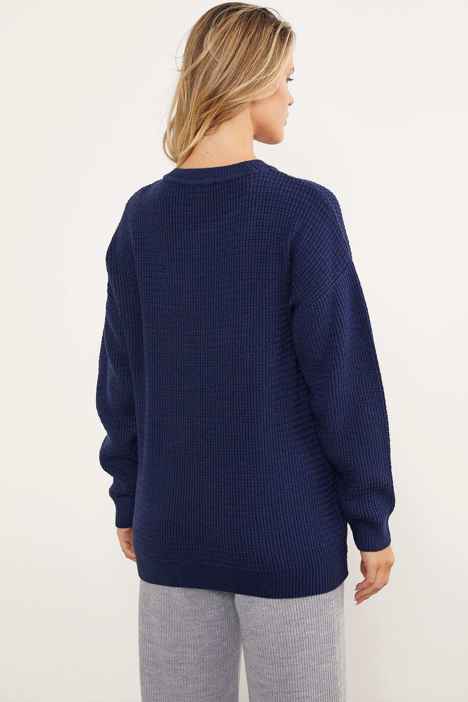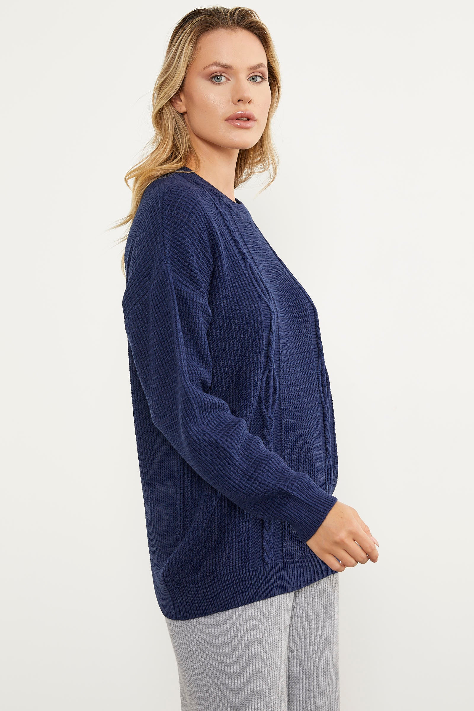 Petek Örgü Sıfır Yaka Triko Kazak - Lacivert