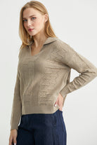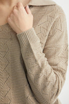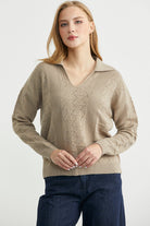 Polo Yaka Motifli Triko Kazak - Kamel