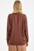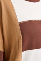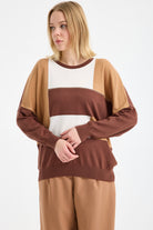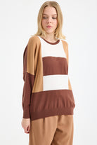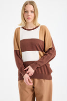 Renk Bloklu Taşlı Triko Kazak - Kahve