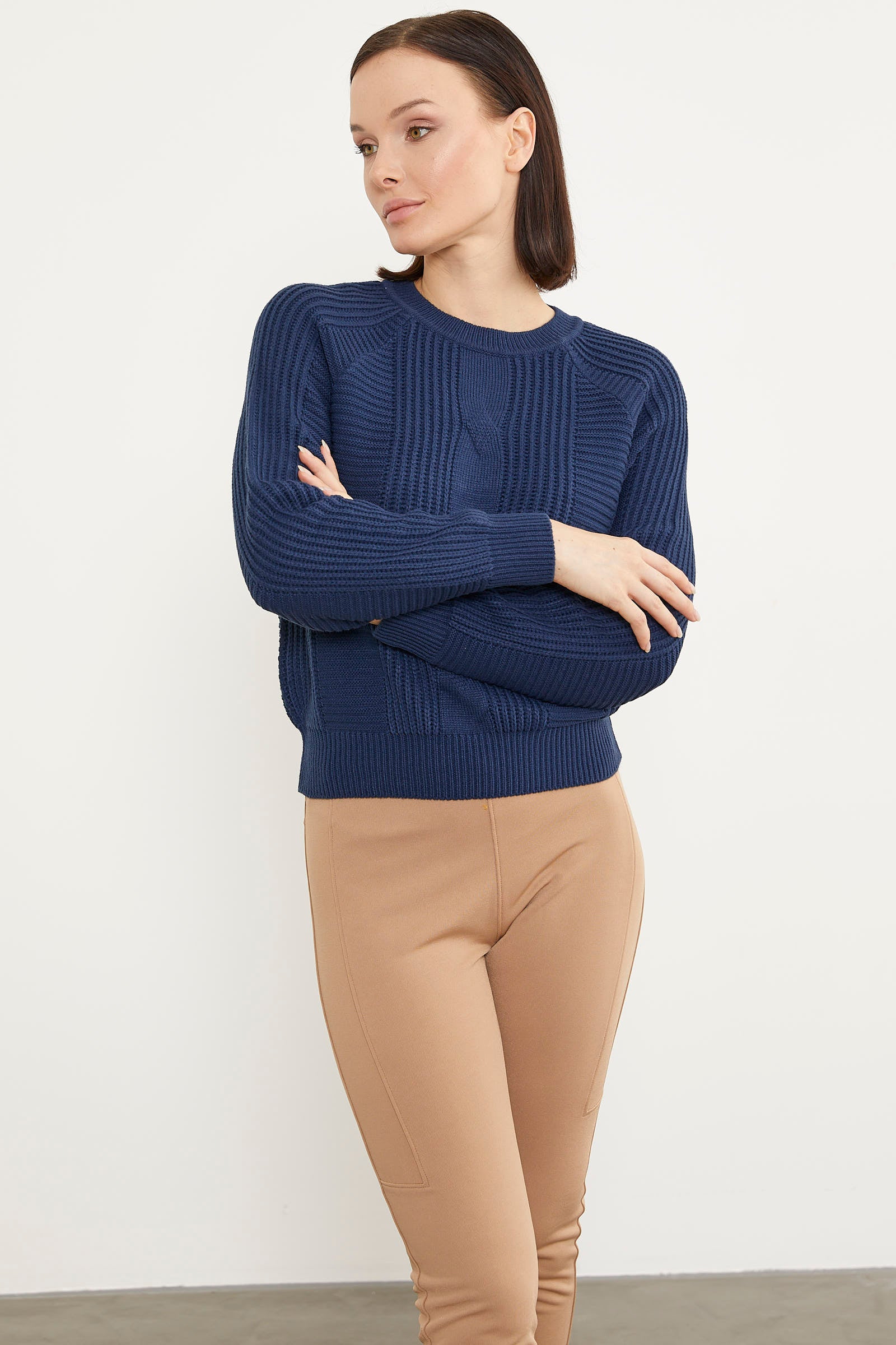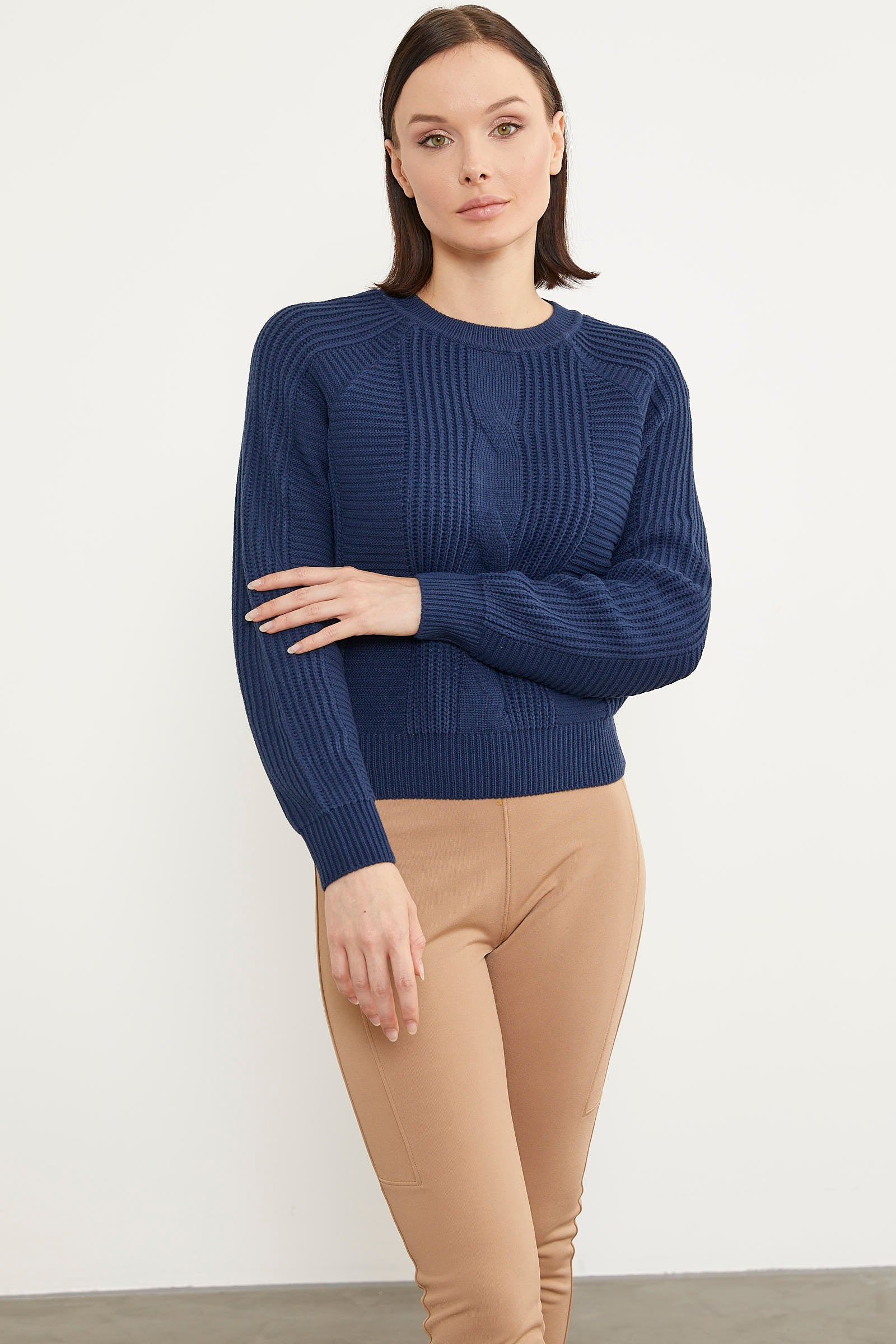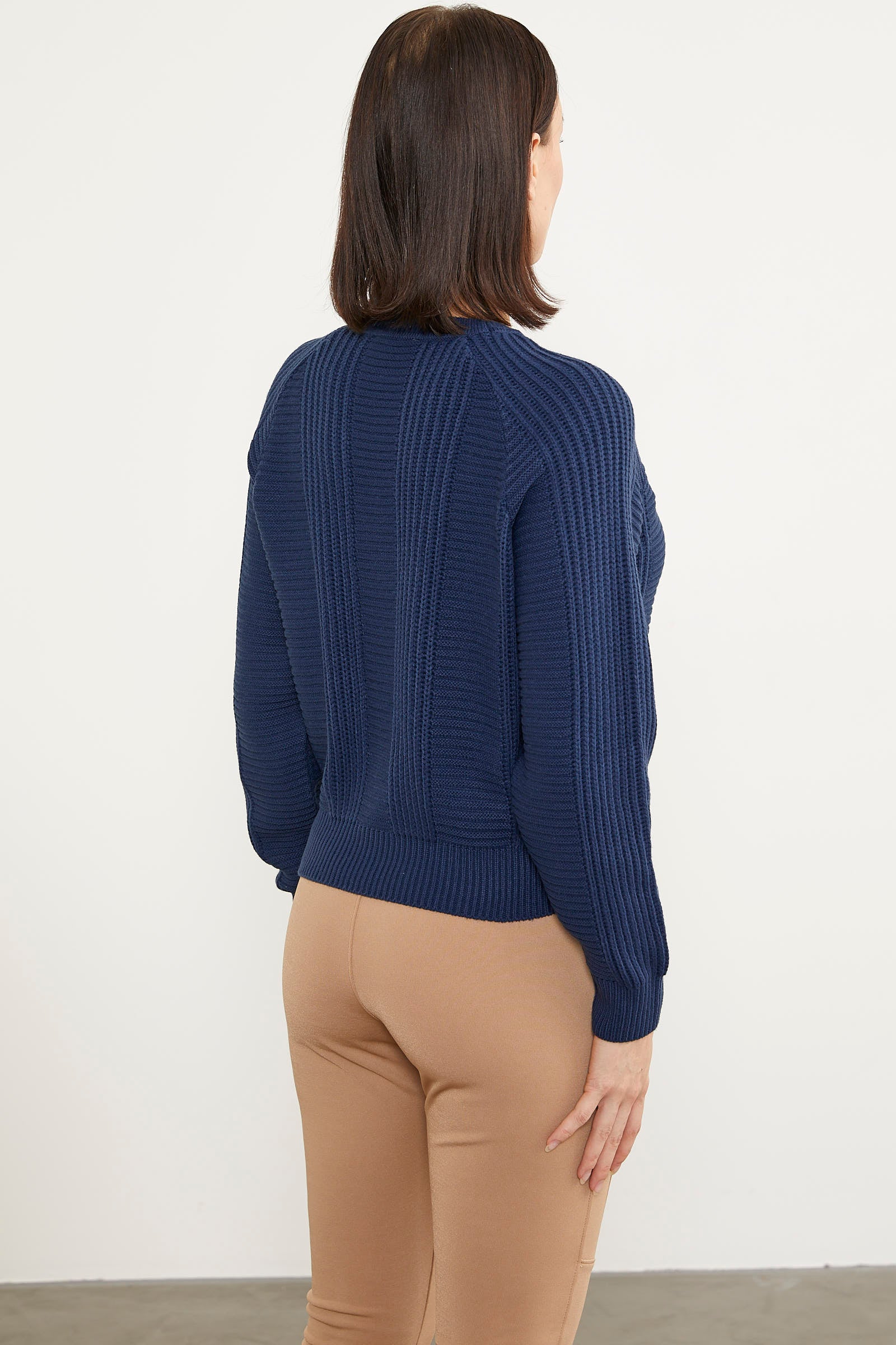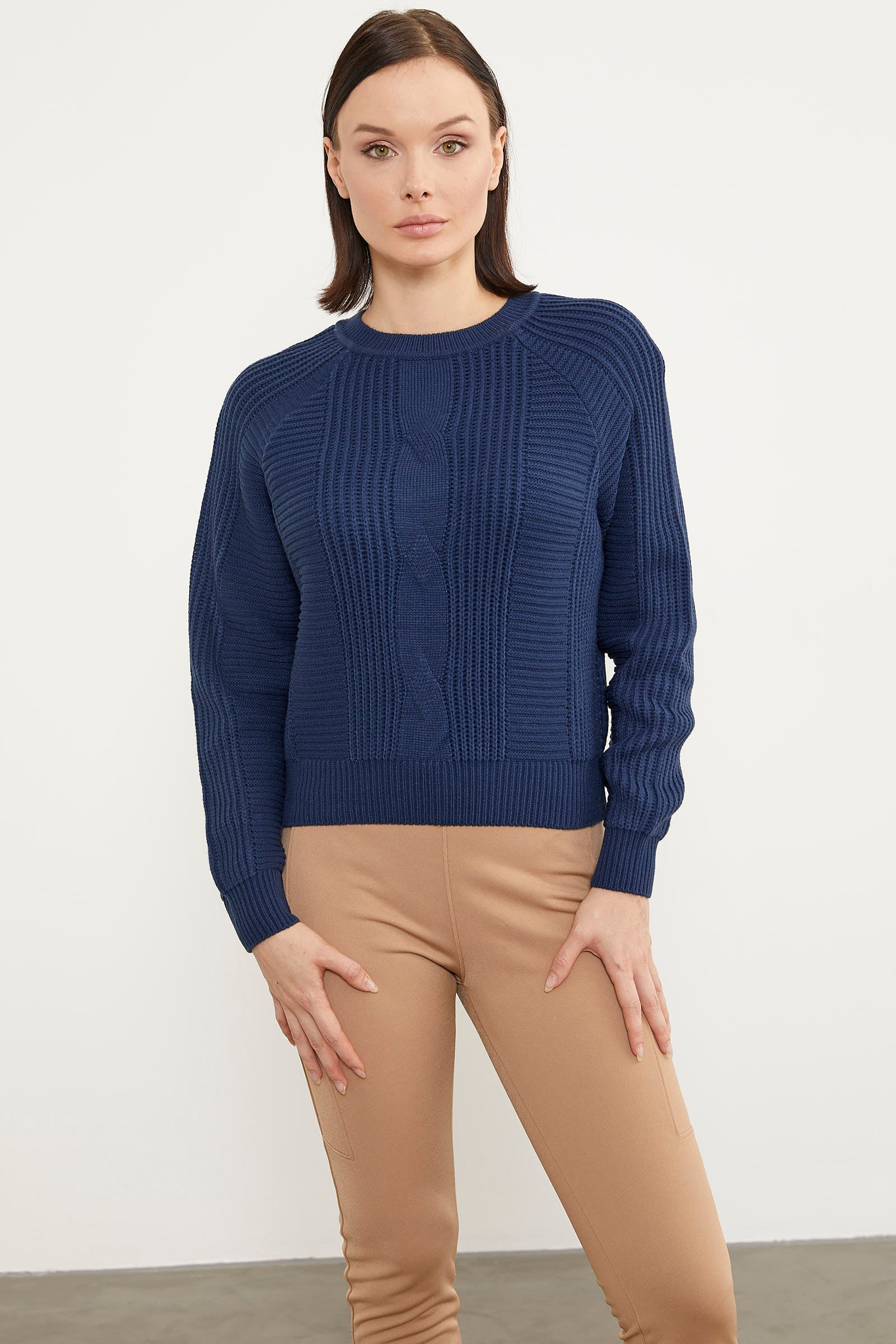 Saç Örgü Detaylı Triko Kazak - Lacivert