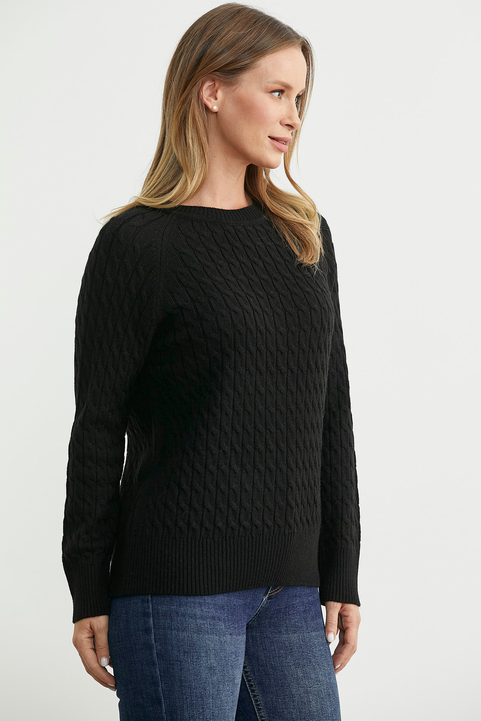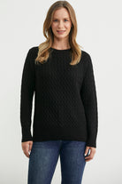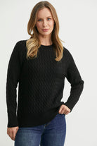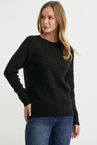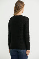 Saç Örgü Motifli Yuvarlak Yaka Triko Kazak - Siyah
