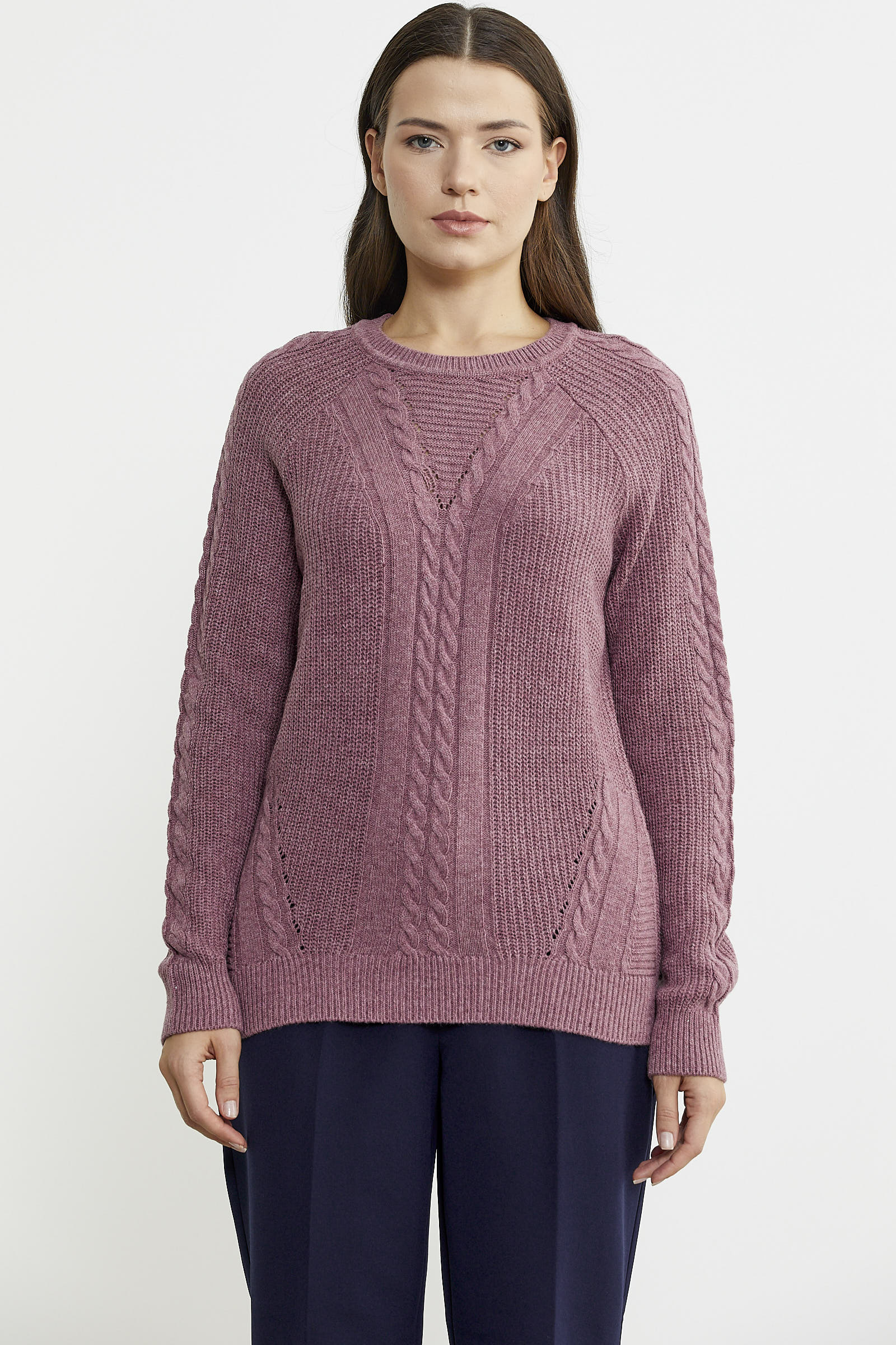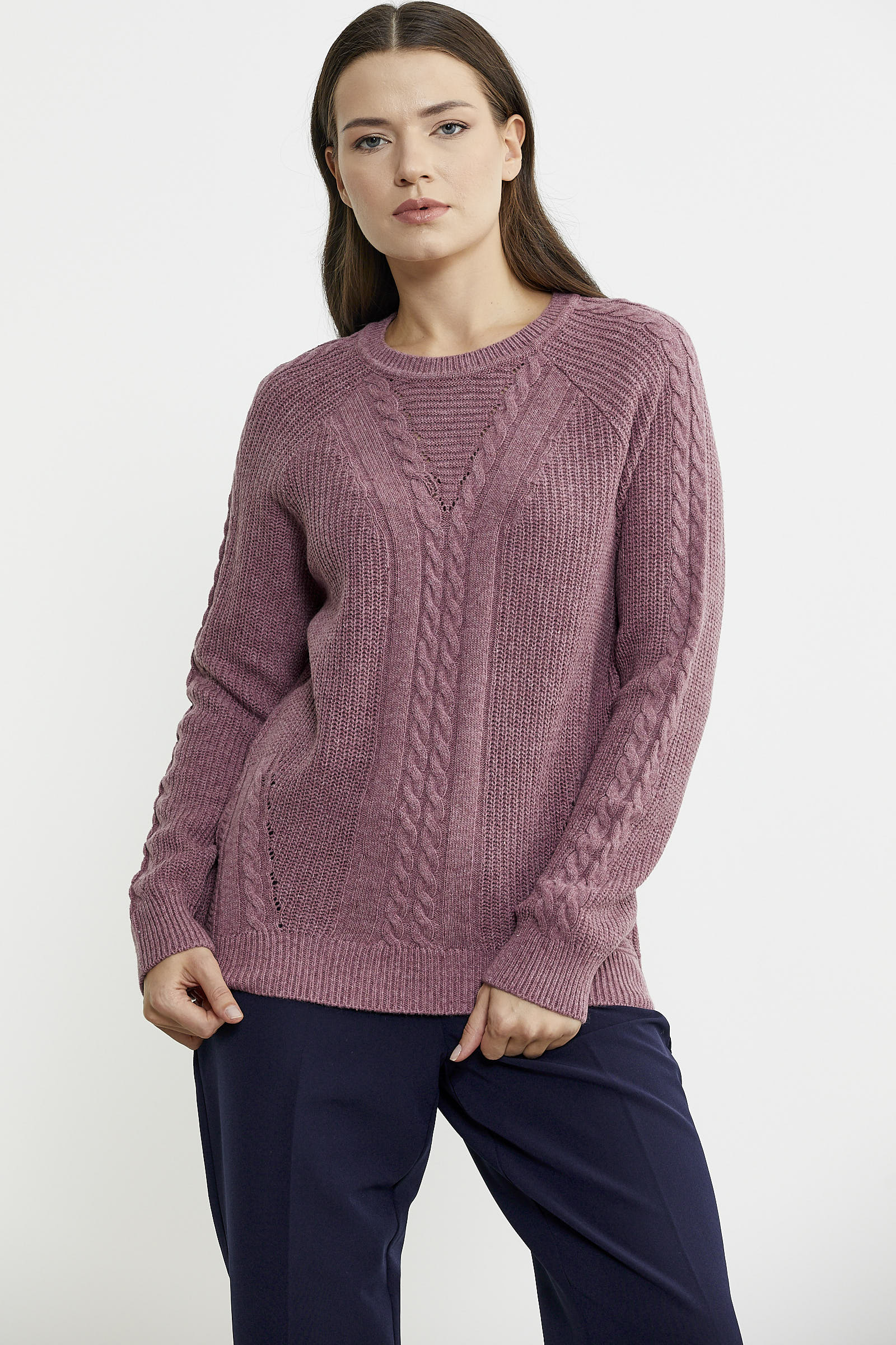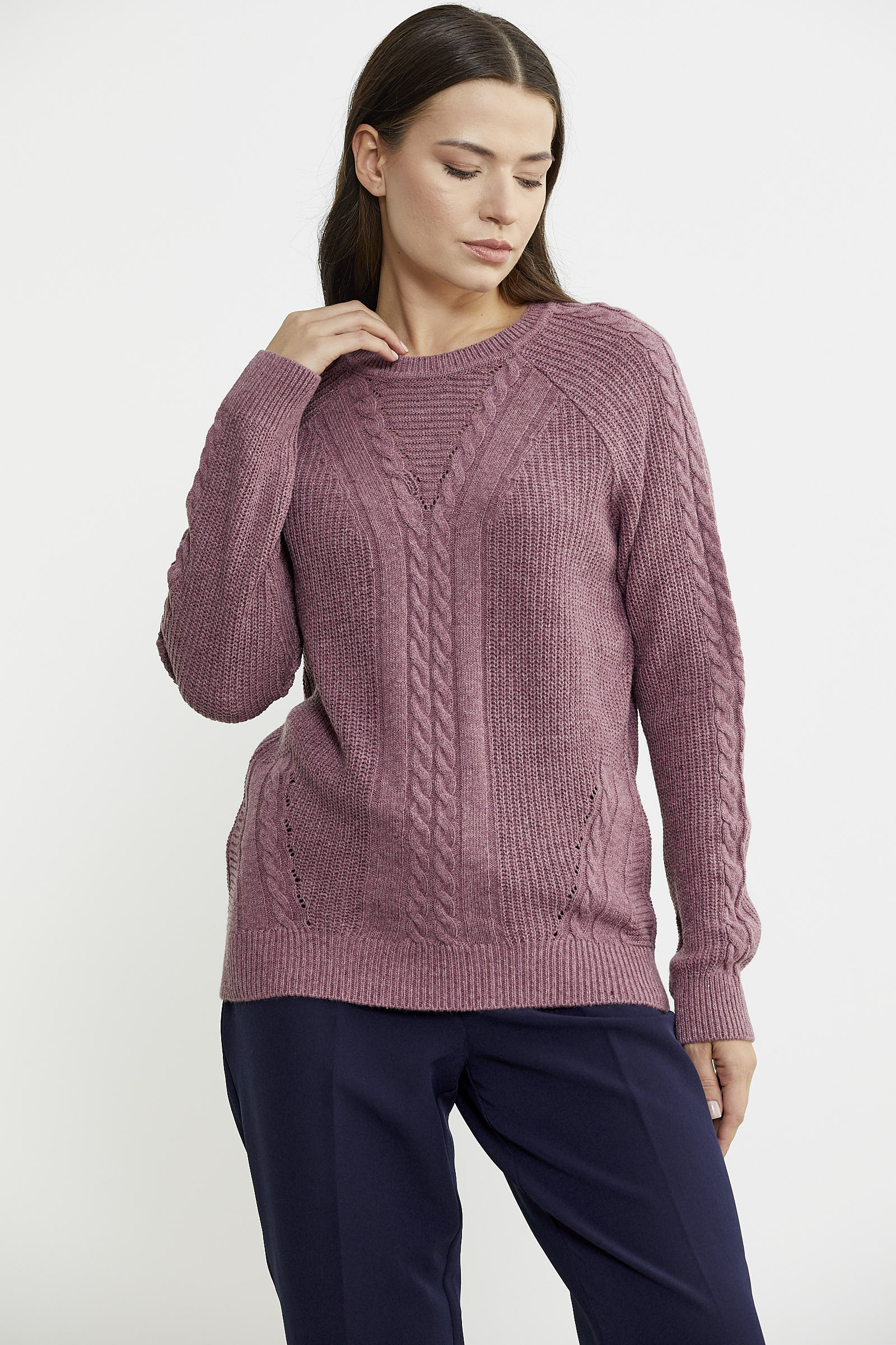 Karışımında ağırlıklı olarak yün kullanılan triko kazak rahat kalıptır. Motif detaylarıyla hareket katılmıştır.