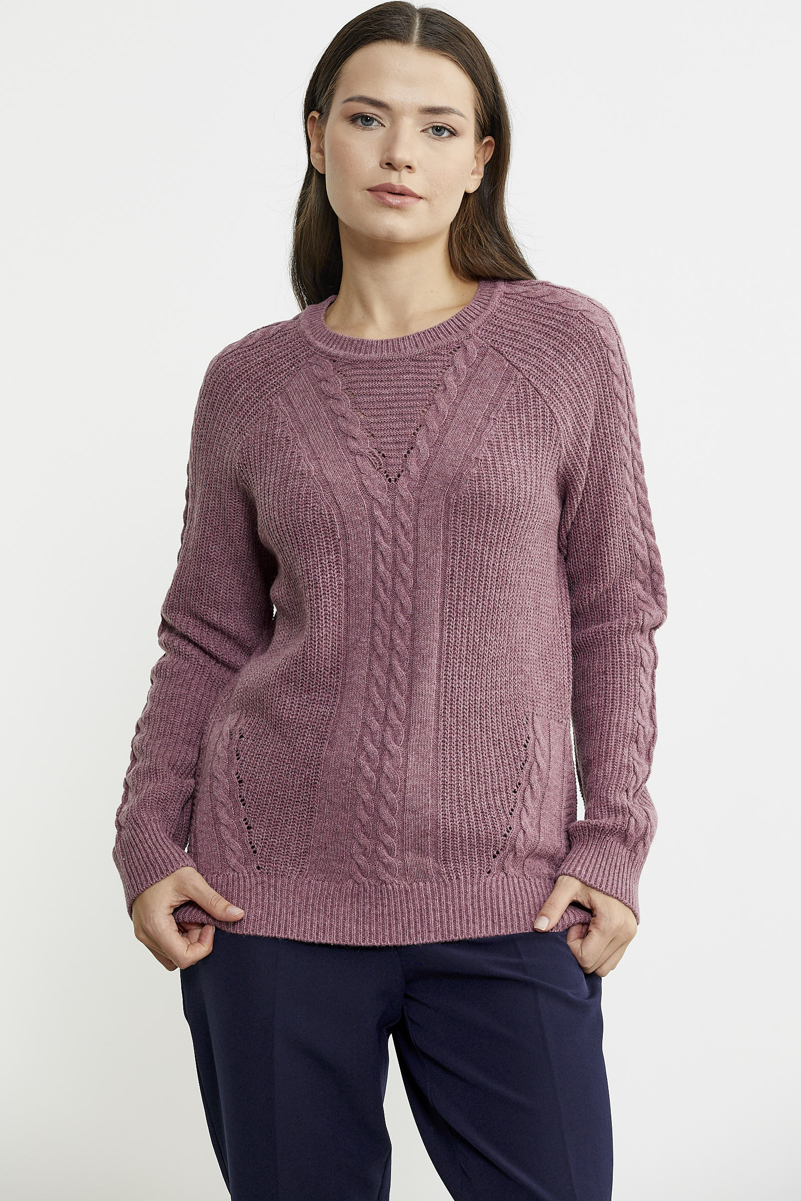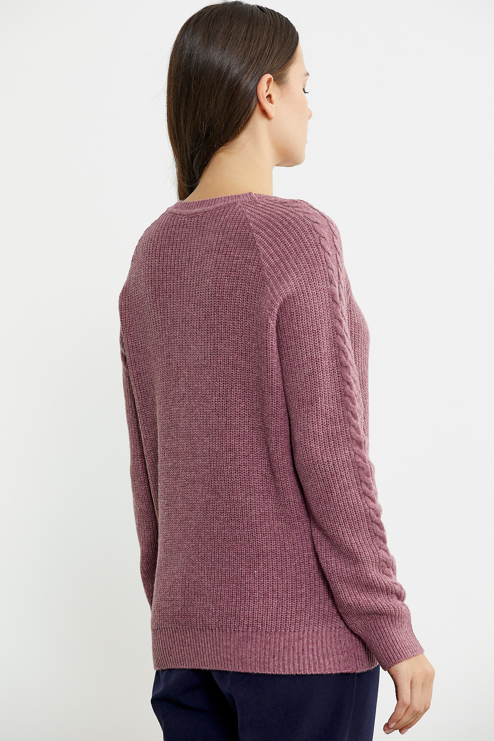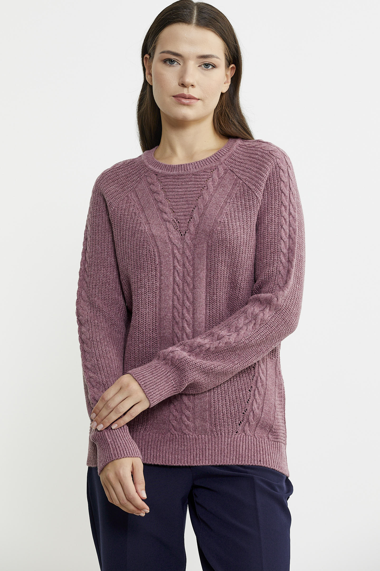 Karışımında ağırlıklı olarak yün kullanılan triko kazak rahat kalıptır. Motif detaylarıyla hareket katılmıştır.