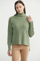 Tam Balıkçı Arkası Uzun Triko Kazak - Çağla Yeşili