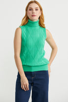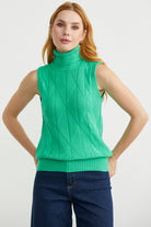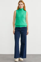 Tam Balıkçı Kolsuz Triko Kazak - Yeşil