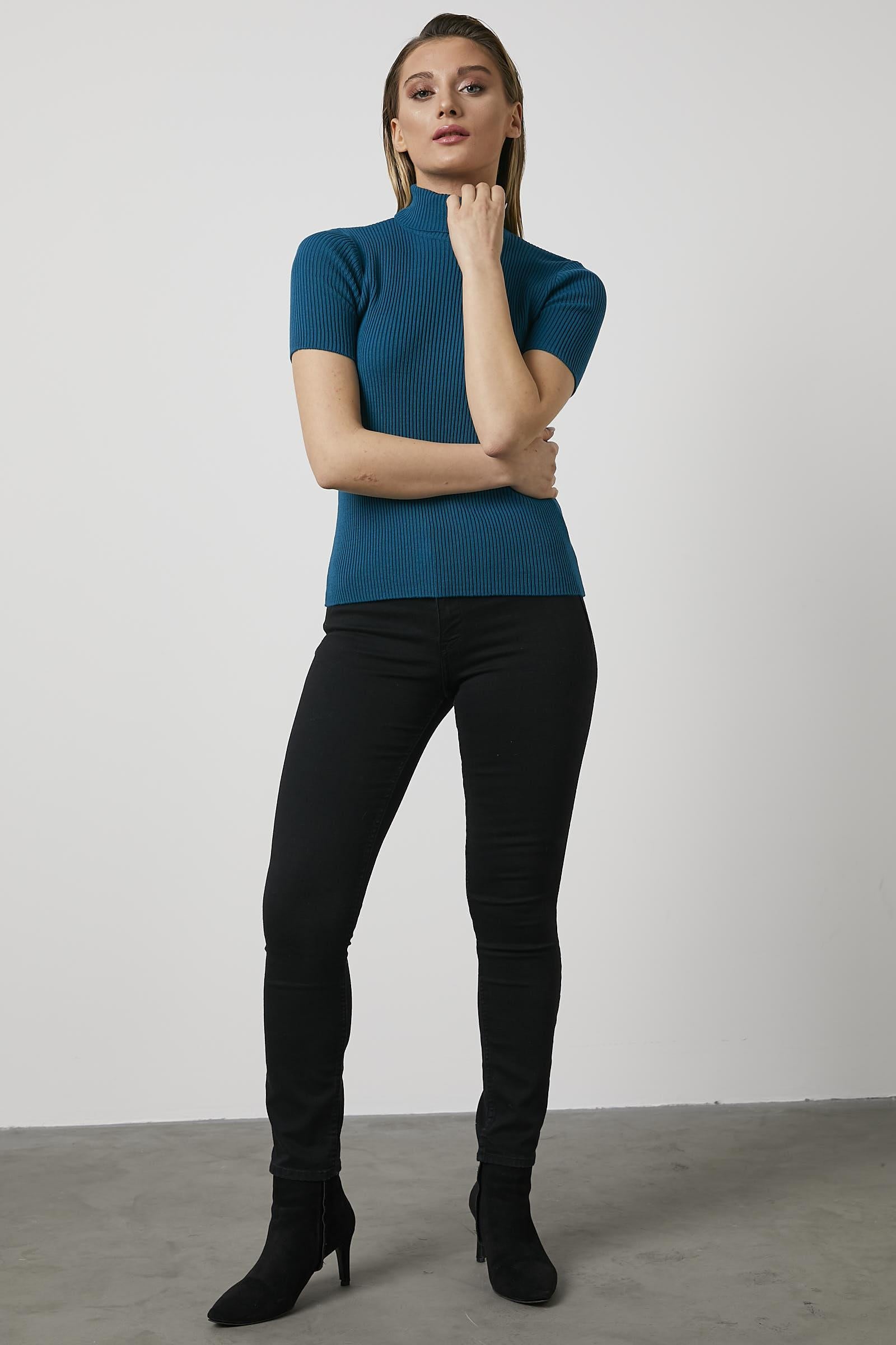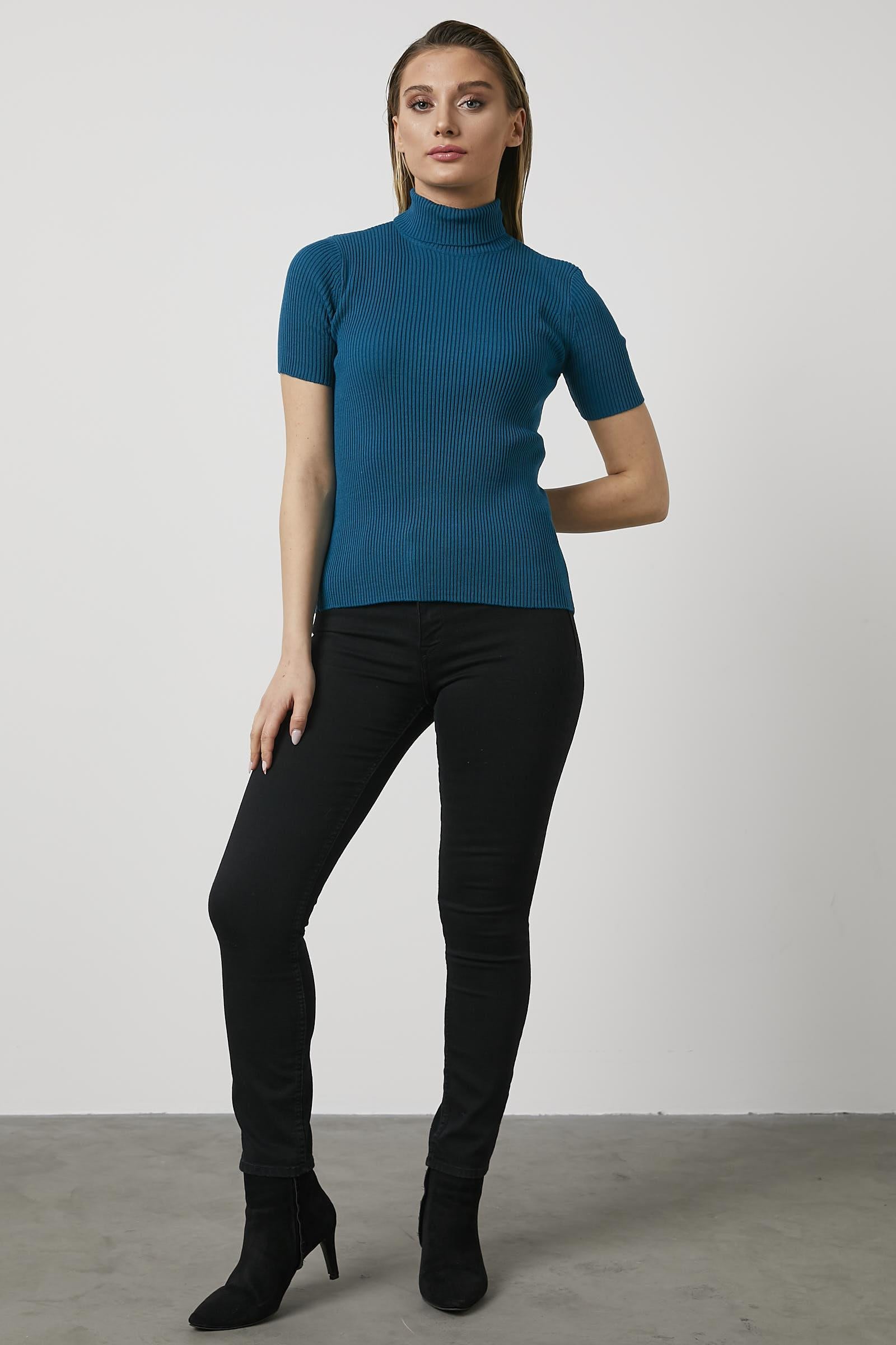 Tam Balıkçı Yaka Kısa Kollu Triko Kazak - Turkuaz