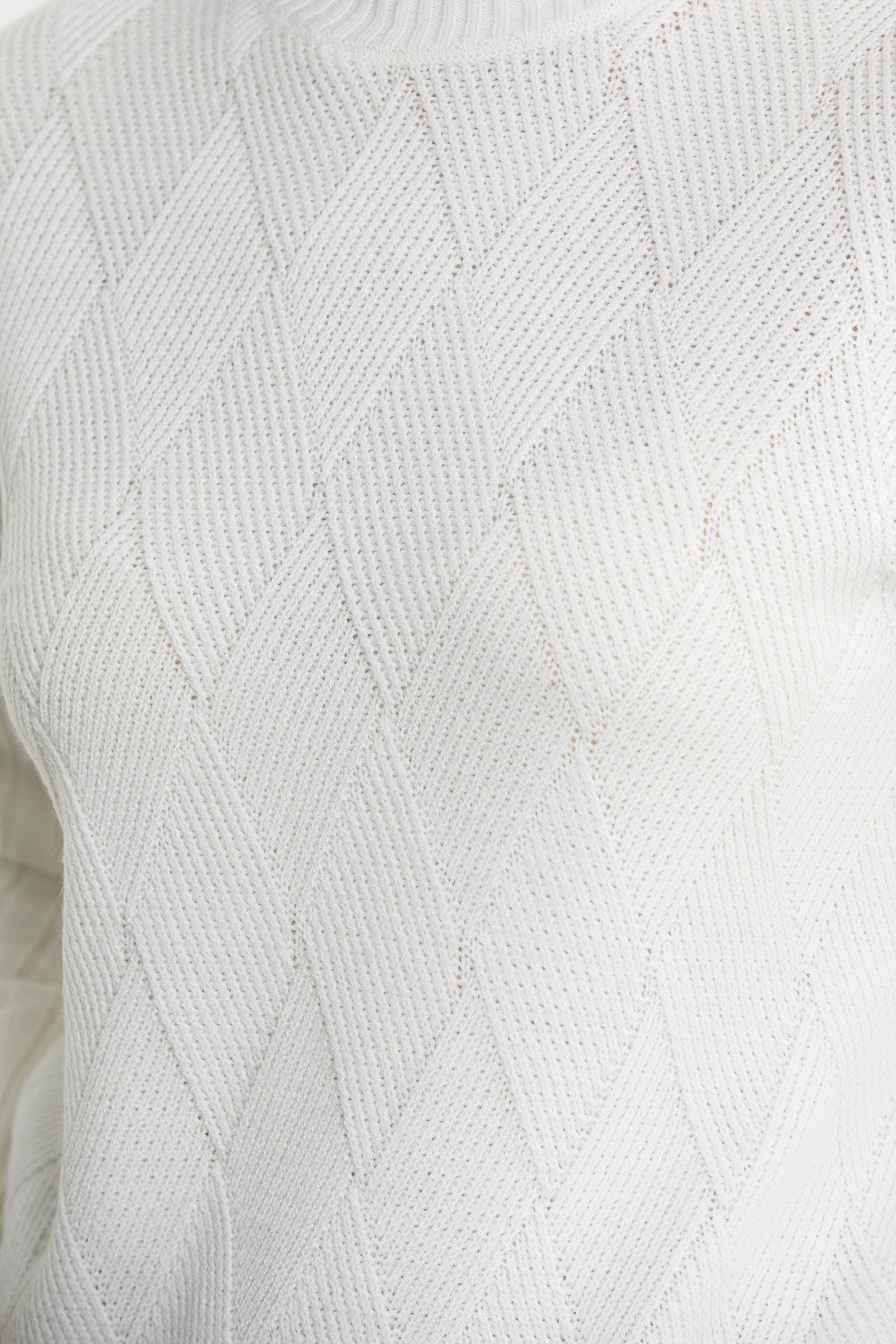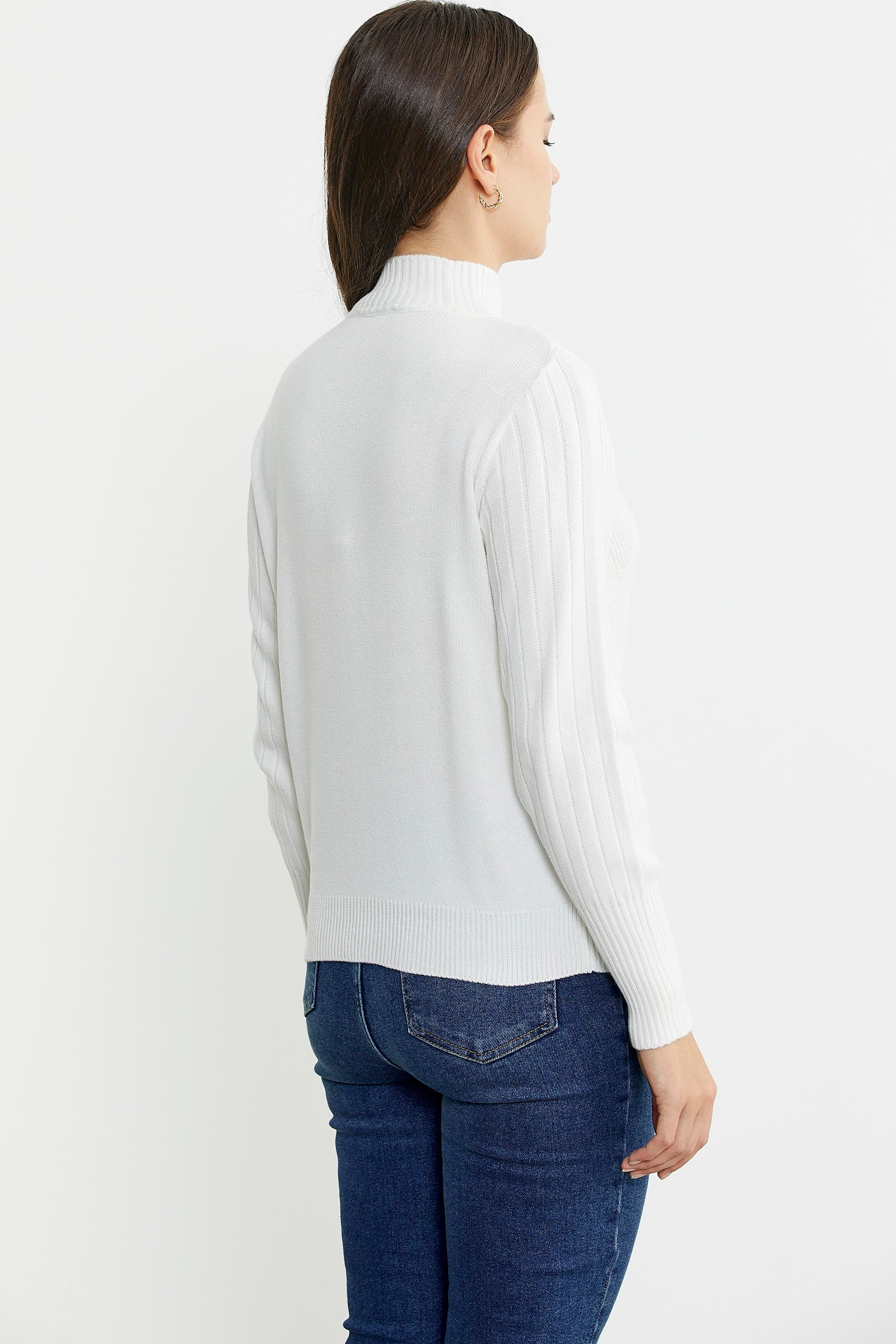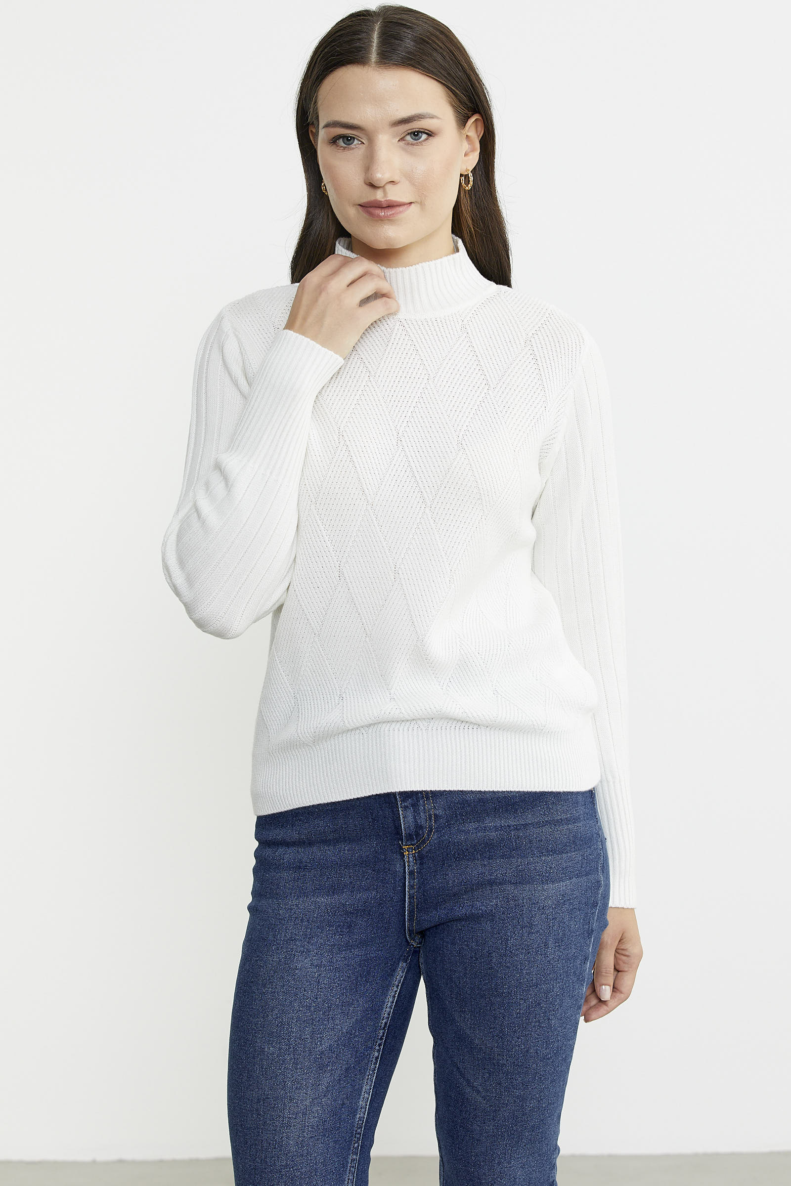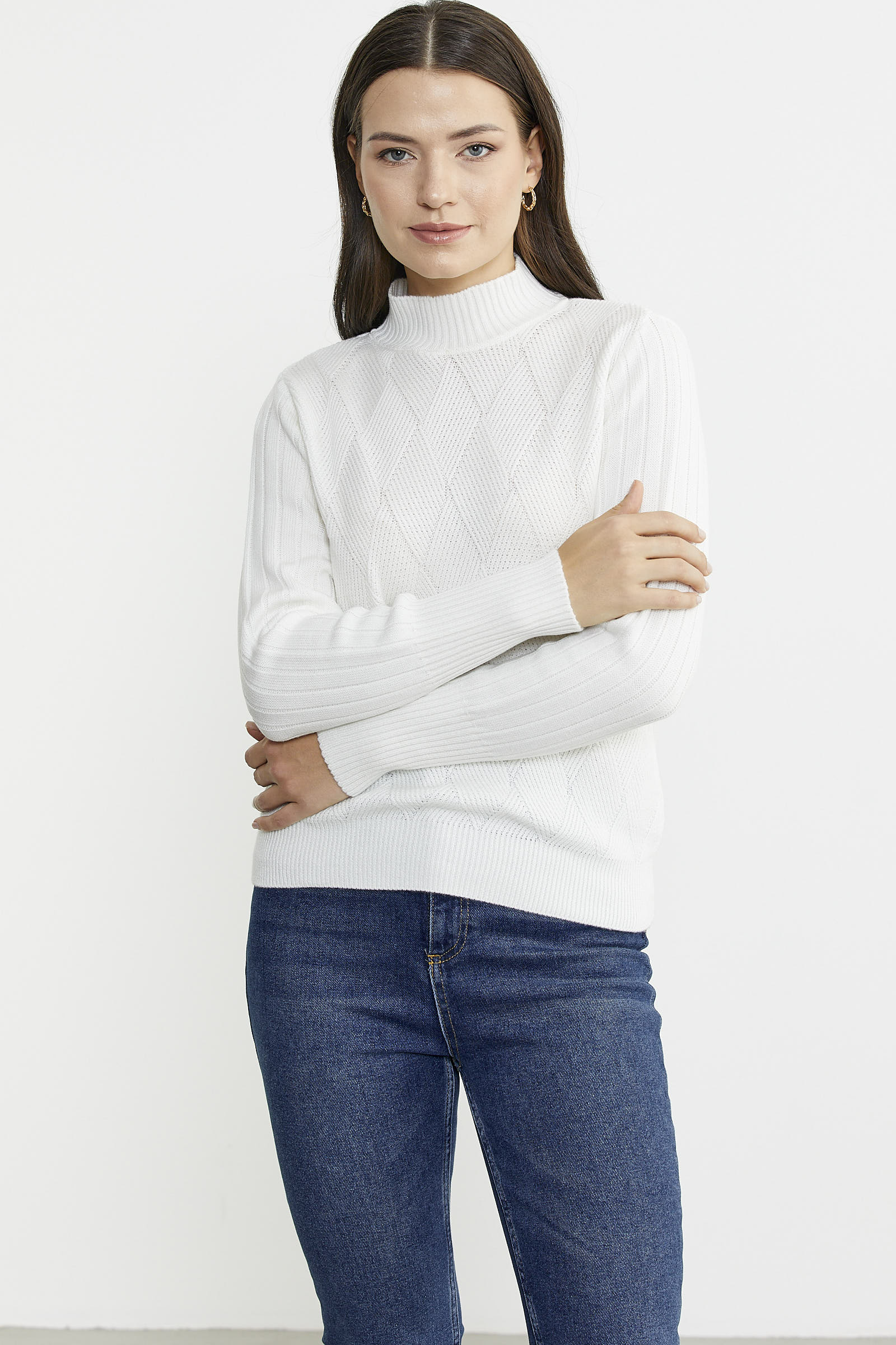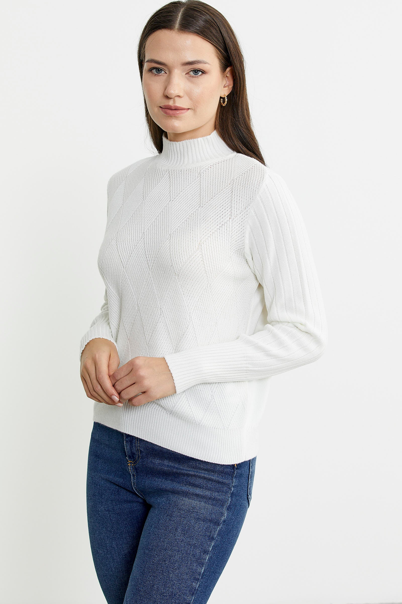 Yarım Balıkçı Motifli Triko Kazak - Kemik