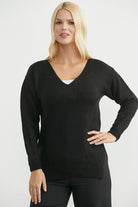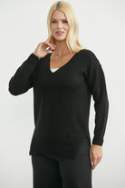 Yumuşak Dokulu V Yaka Triko Kazak - Siyah