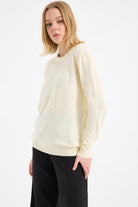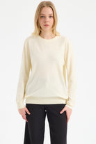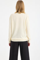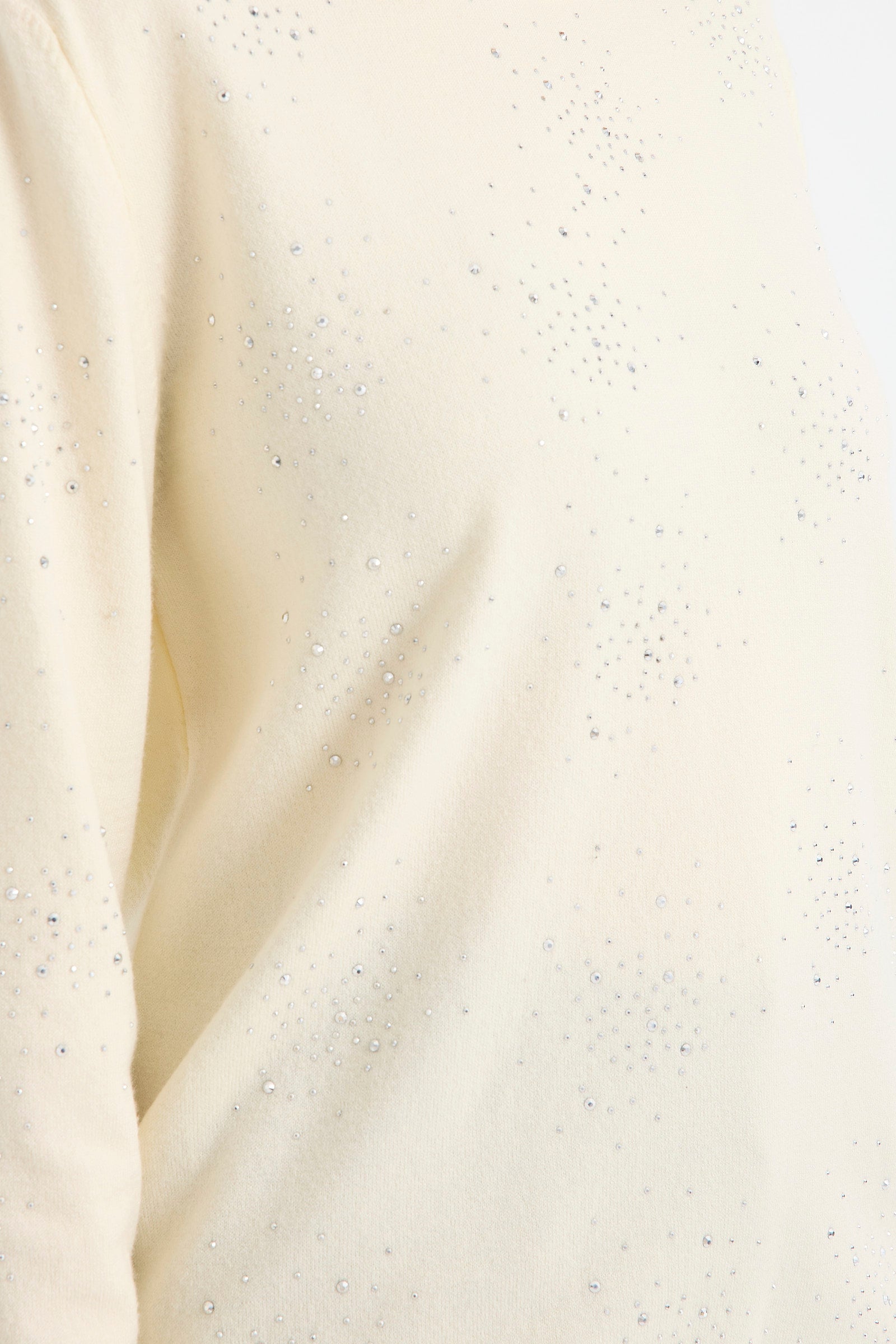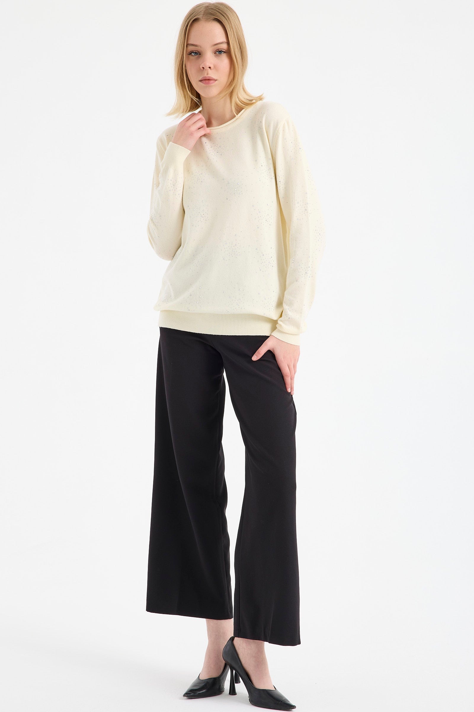 Yuvarlak Yaka Taşlı Triko Kazak - Ekru