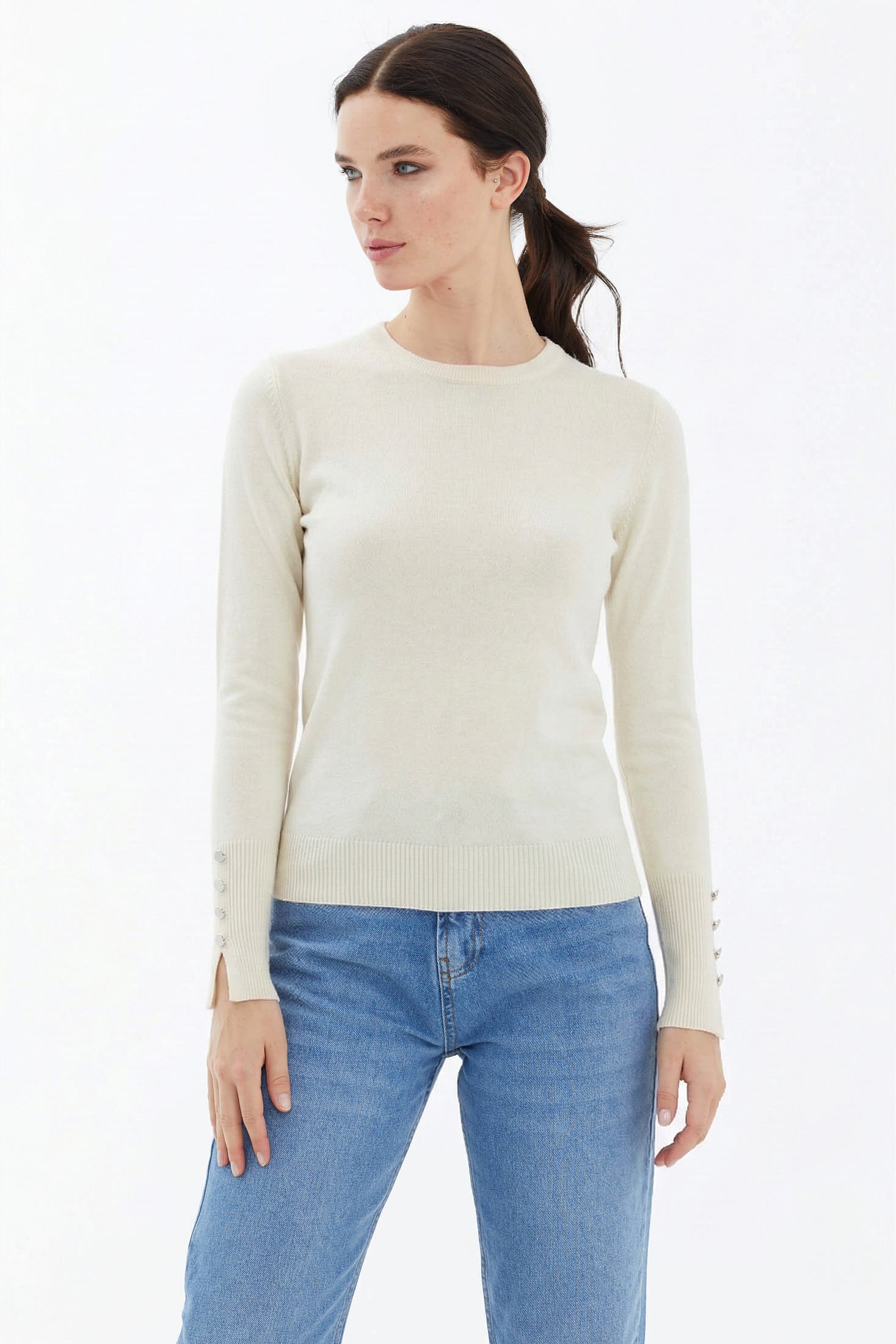 Bej rengi kuzu desenli polo yaka kazak da, kadın triko kazak ürünleri arasında adeta bir inci gibi parlıyor. Özellikle kış aylarında hayvan desenli kazakların sık tercih edildiği biliniyor. Bu desenler, sıcak, samimi ve sevimli bir hava oluşturduklarından çok beğeniliyor.