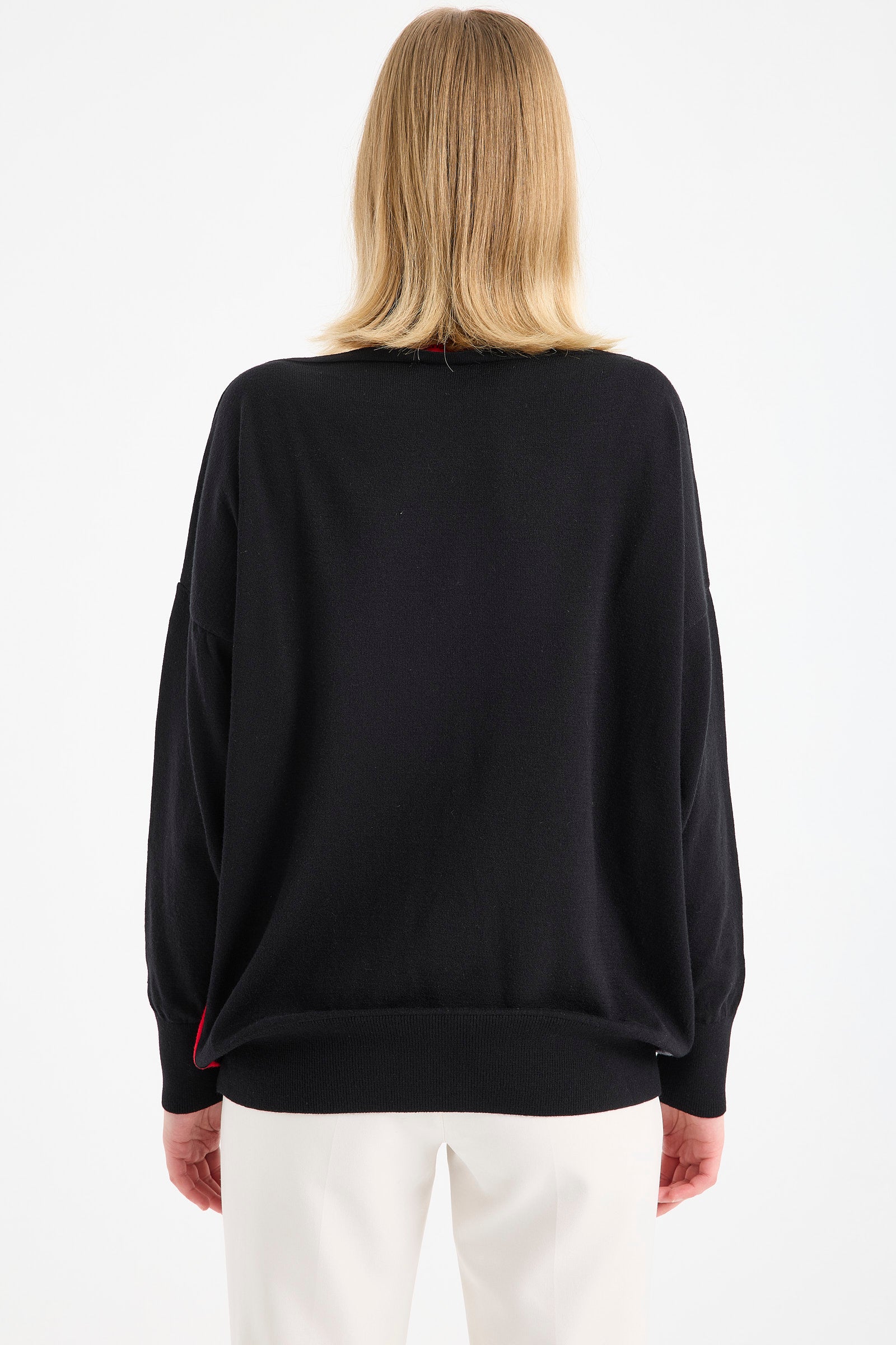 Ayrıca yarım balıkçı yaka kadın kazak tasarımları içinde yer alıp, son derece çarpıcı bir duruşu olan yaka ucu büzgü detaylı kazak da, sezonun trend ve favori ürünleri arasında! Bu ürünümüzde ayrıca desenler de, şık ve zarif duruşlarıyla göz dolduruyor. Renk seçenekleri arasında ise siyah, lacivert, bordo, pudra ve vizon yer alıyor.