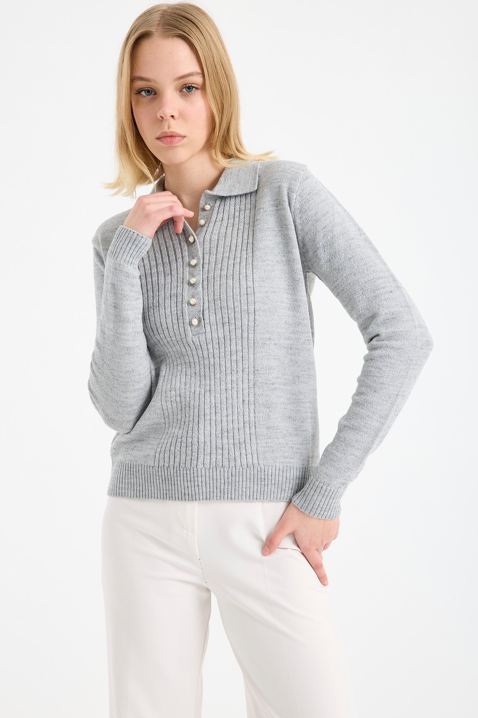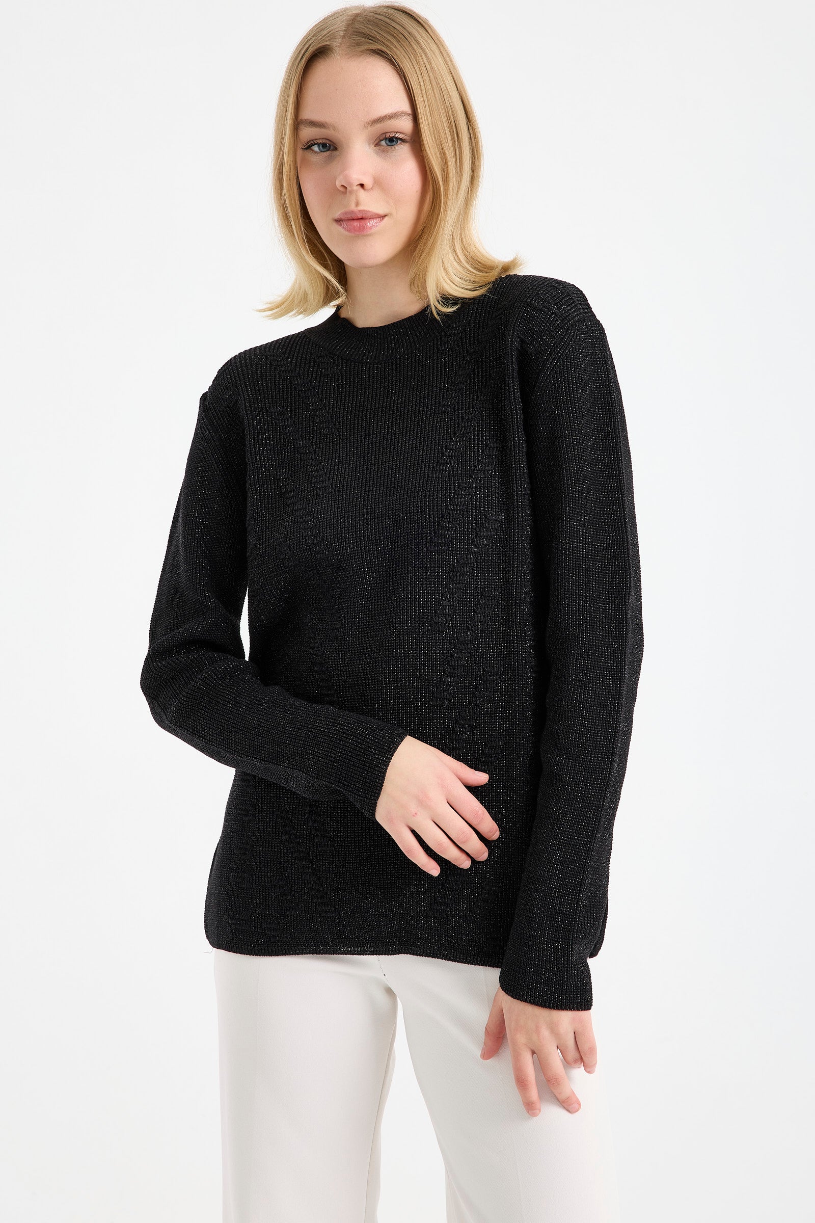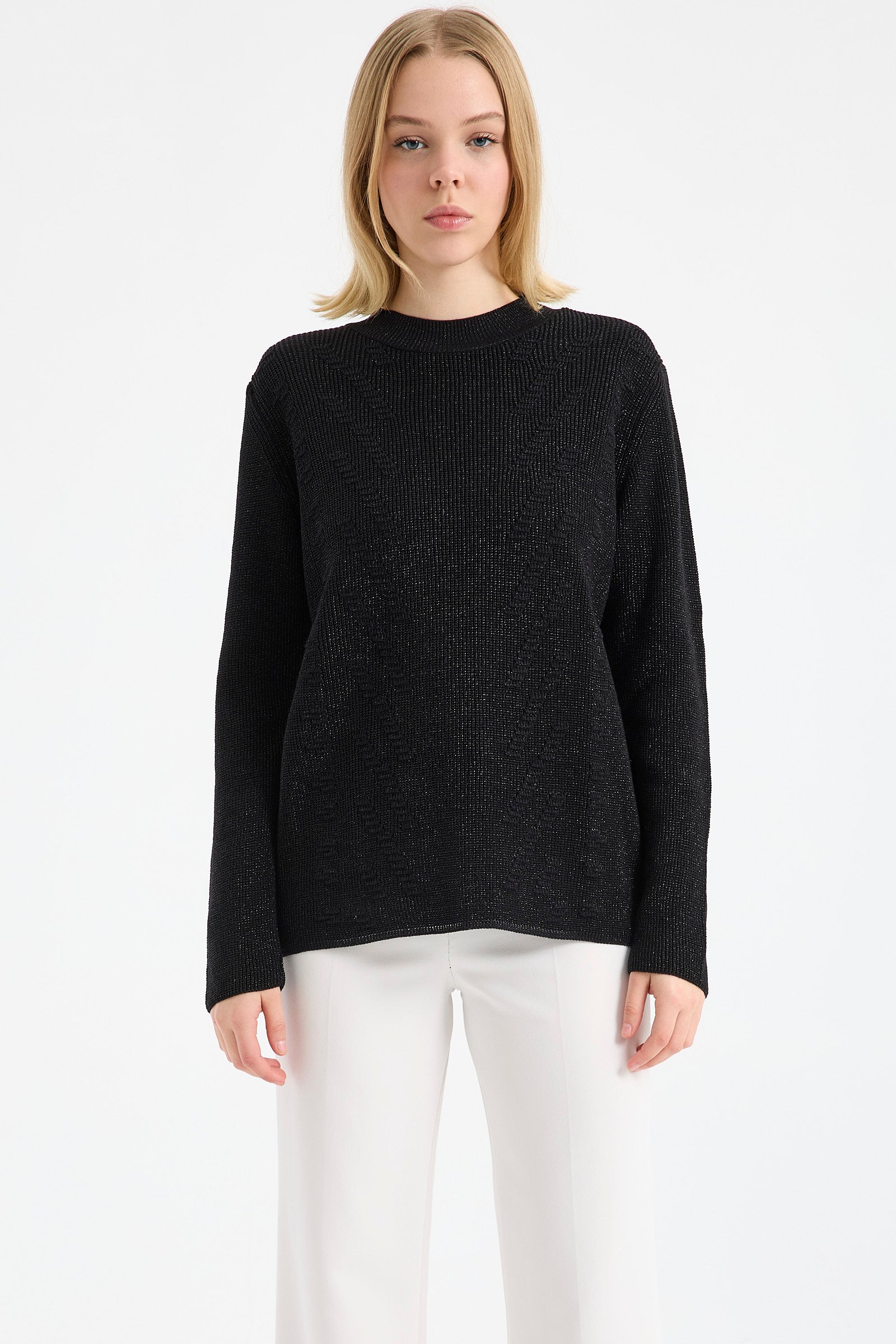 Ayrıca yarım balıkçı yaka kadın kazak tasarımları içinde yer alıp, son derece çarpıcı bir duruşu olan yaka ucu büzgü detaylı kazak da, sezonun trend ve favori ürünleri arasında! Bu ürünümüzde ayrıca desenler de, şık ve zarif duruşlarıyla göz dolduruyor. Renk seçenekleri arasında ise siyah, lacivert, bordo, pudra ve vizon yer alıyor.
