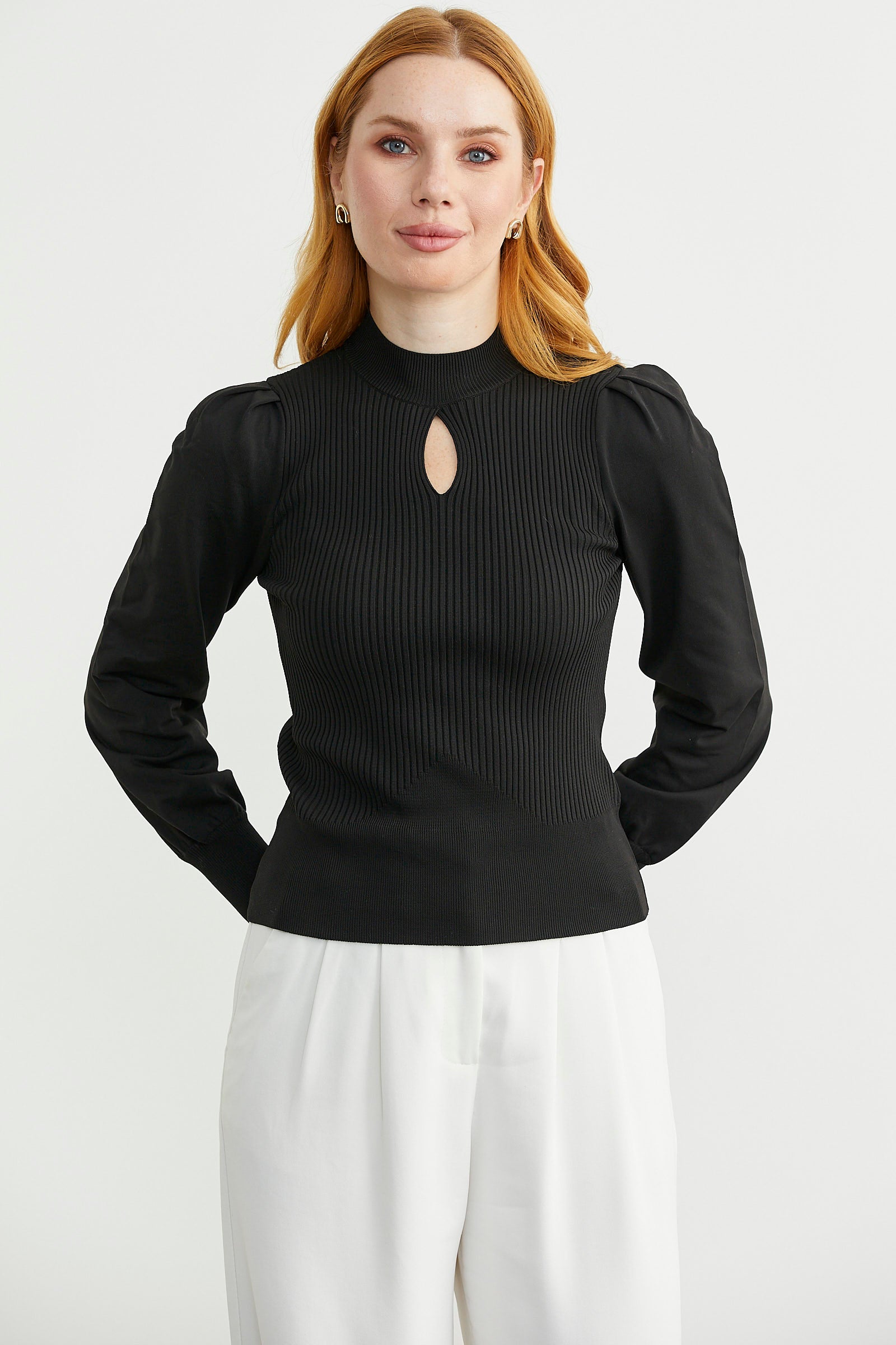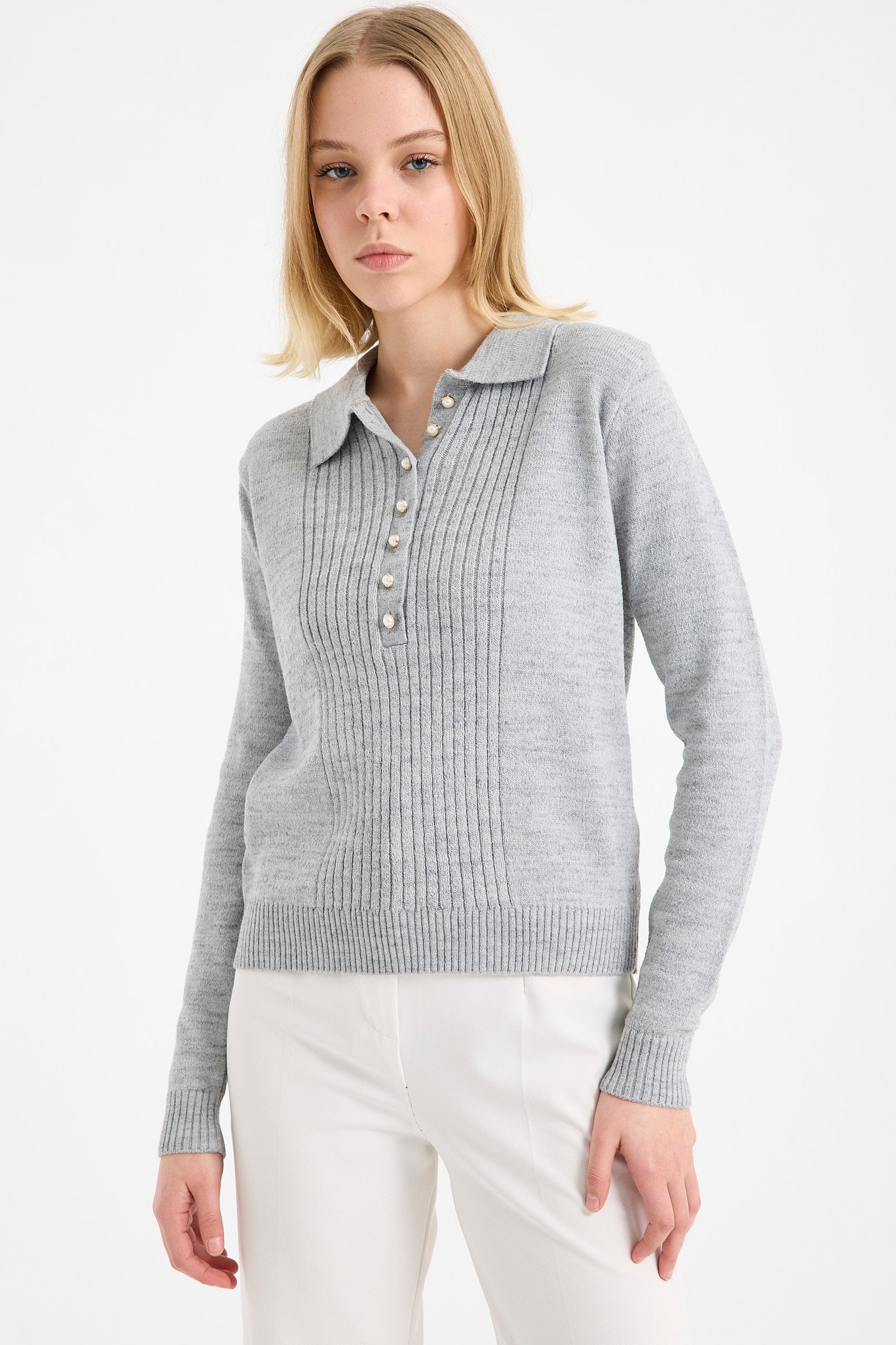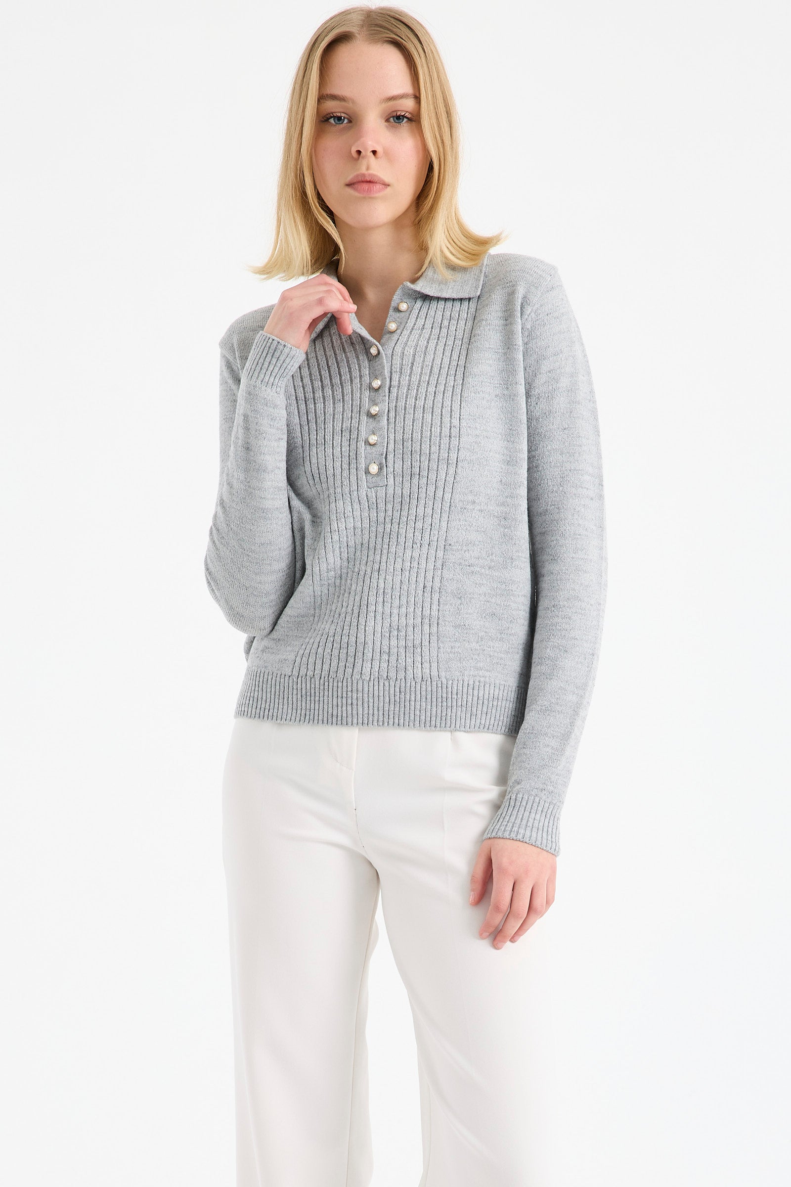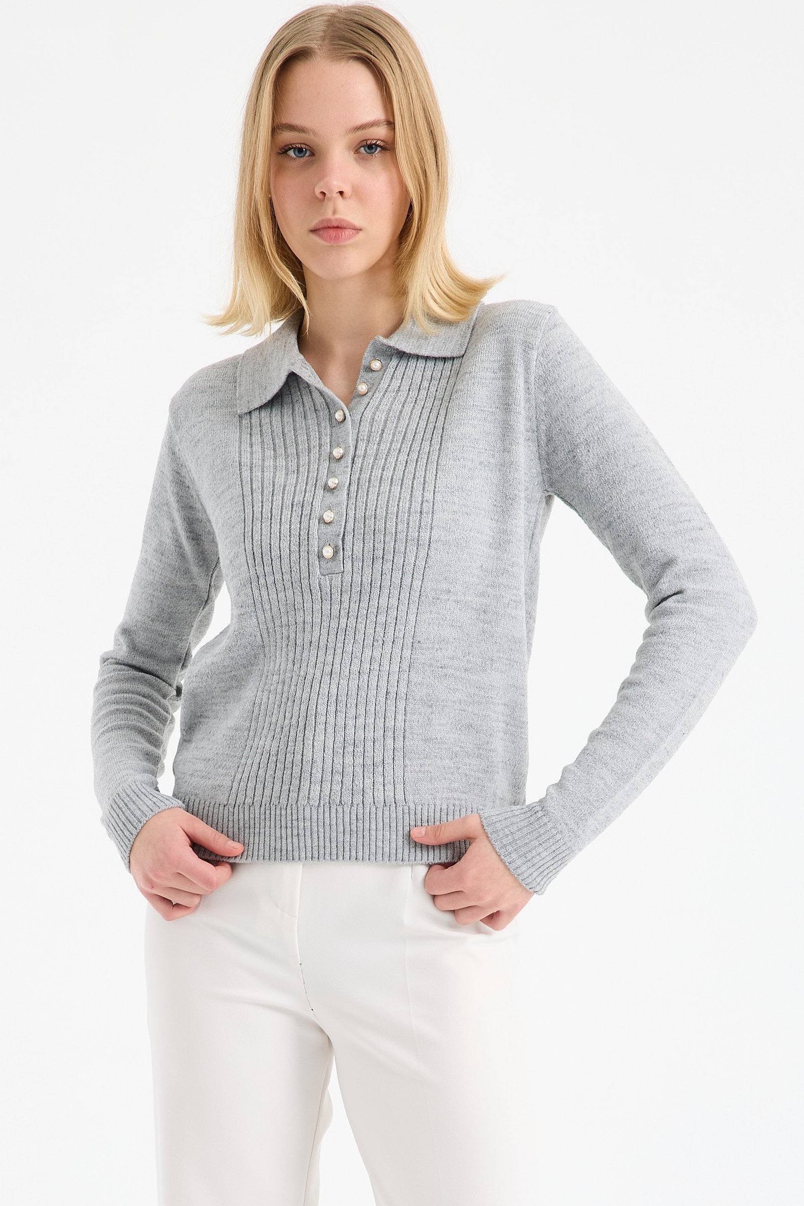 Ayrıca yarım balıkçı yaka kadın kazak tasarımları içinde yer alıp, son derece çarpıcı bir duruşu olan yaka ucu büzgü detaylı kazak da, sezonun trend ve favori ürünleri arasında! Bu ürünümüzde ayrıca desenler de, şık ve zarif duruşlarıyla göz dolduruyor. Renk seçenekleri arasında ise siyah, lacivert, bordo, pudra ve vizon yer alıyor.