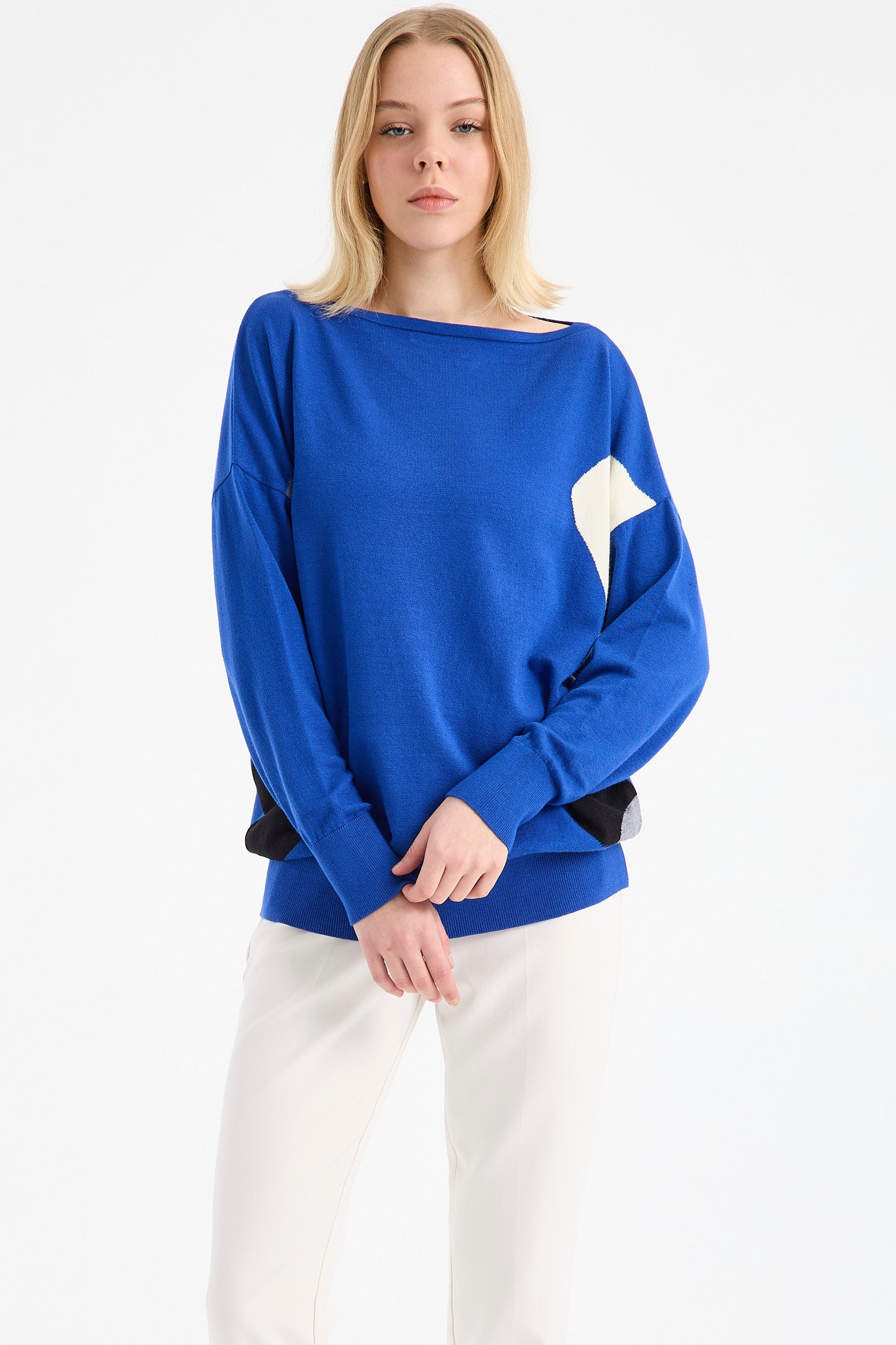 Dikdörtgen vücut şekline sahipseniz, yani vücudunuzun belirgin hatları yoksa kazak seçiminizi buna uygun olarak yapmalısınız. Bu durumda, hatlarınızı öne çıkartacak biçimde, olgun ya da genç kadın kazak modelleri arasından dar bir tasarımı seçmelisiniz. İnce hatlarınızı belirginleştirecek kadın triko kazak modelleri içinden dar ve yatay desenleri olan çizgili kadın kazak tasarımlarına da yönelebilirsiniz. Renk tercihinizi ise yine hatlarınızı ortaya çıkarmak üzere beyaz kadın kazak seçeneklerinden yana kullanabilirsiniz. Bunların yanı sıra kalın kadın kazak seçimleriniz ile gösterişli bir görünüm elde edebilirsiniz. Kazağın üzerinde, fırfır, büzgü, püskül gibi hareketlendirici detayların olması da bu noktada size avantaj sağlar.