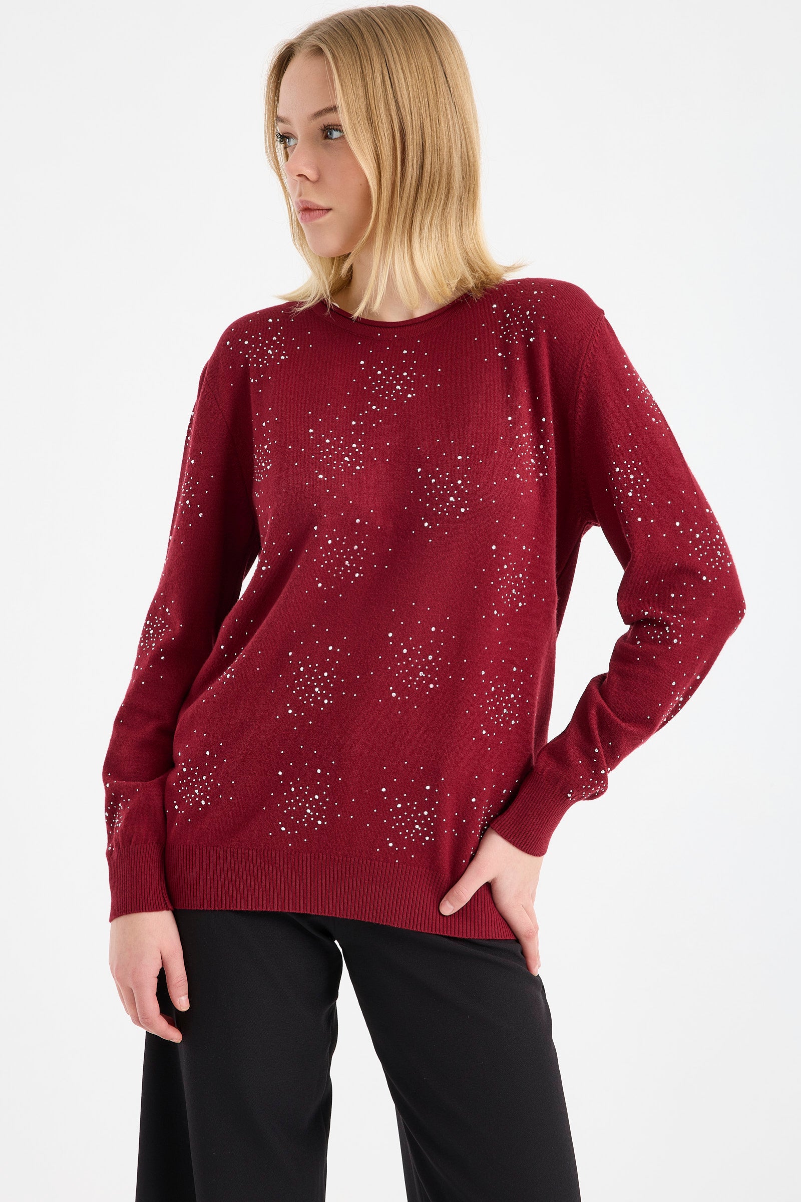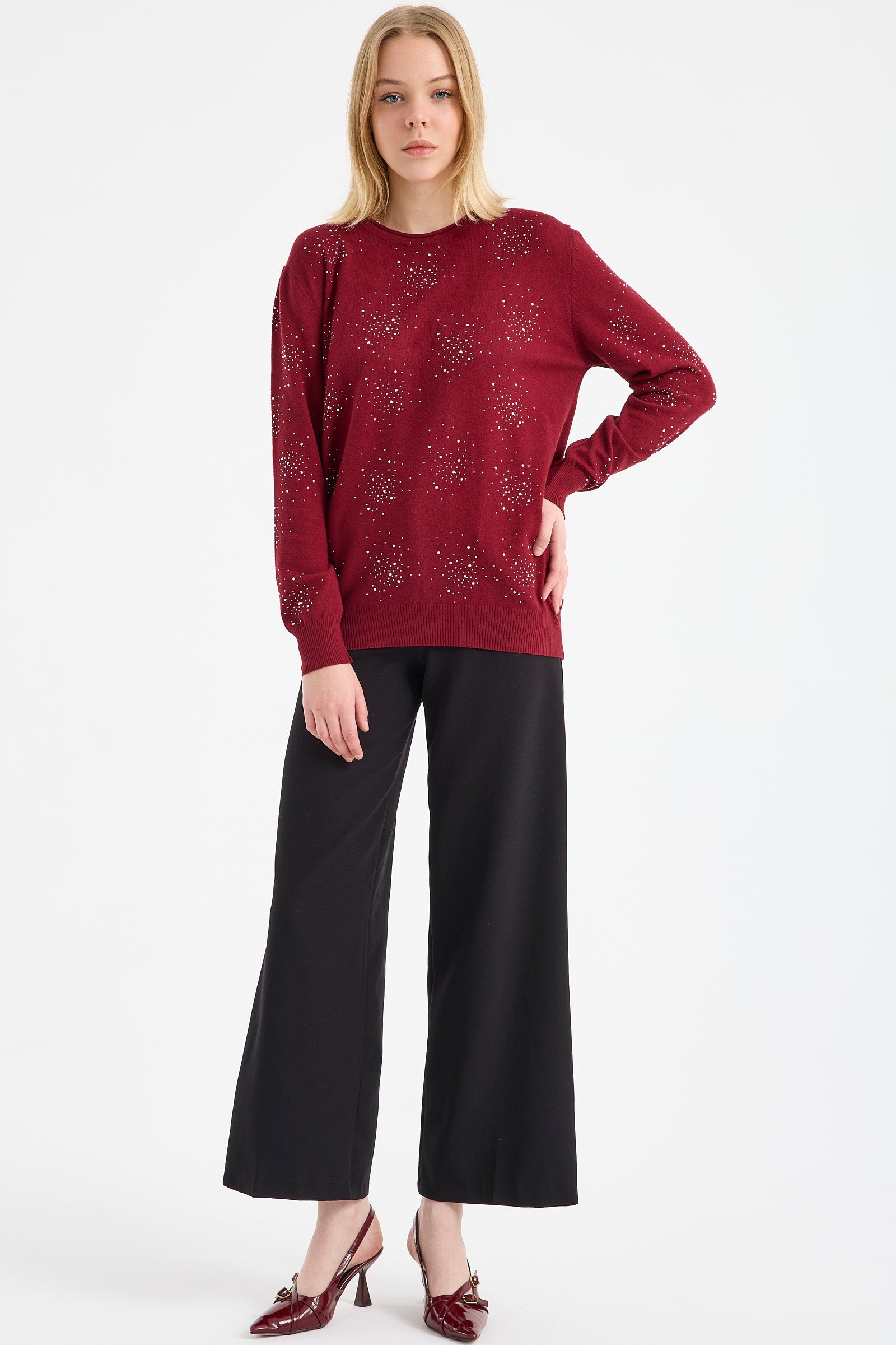 Sementa’nın modaya yön veren kazak modelleri arasında, sezonun favori ürünlerinden olan pul işlemeli ve yırtmaç detaylı triko kazak öne çıkıyor. Bu kazakta, kemik, kamel, vizon, siyah, pudra kiremit gibi renk alternatifleri de bulunuyor.