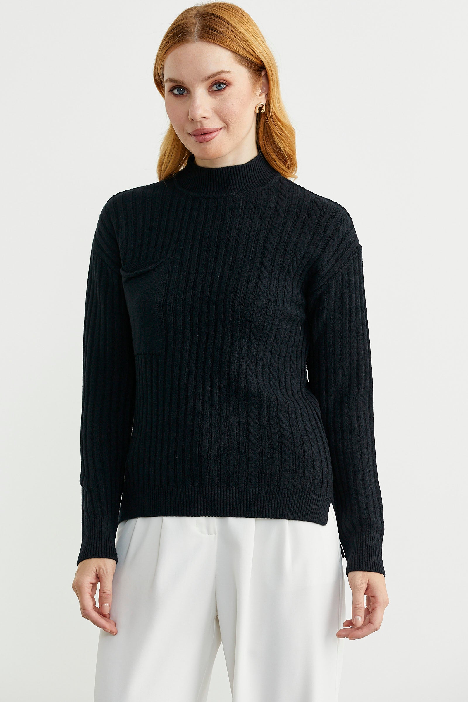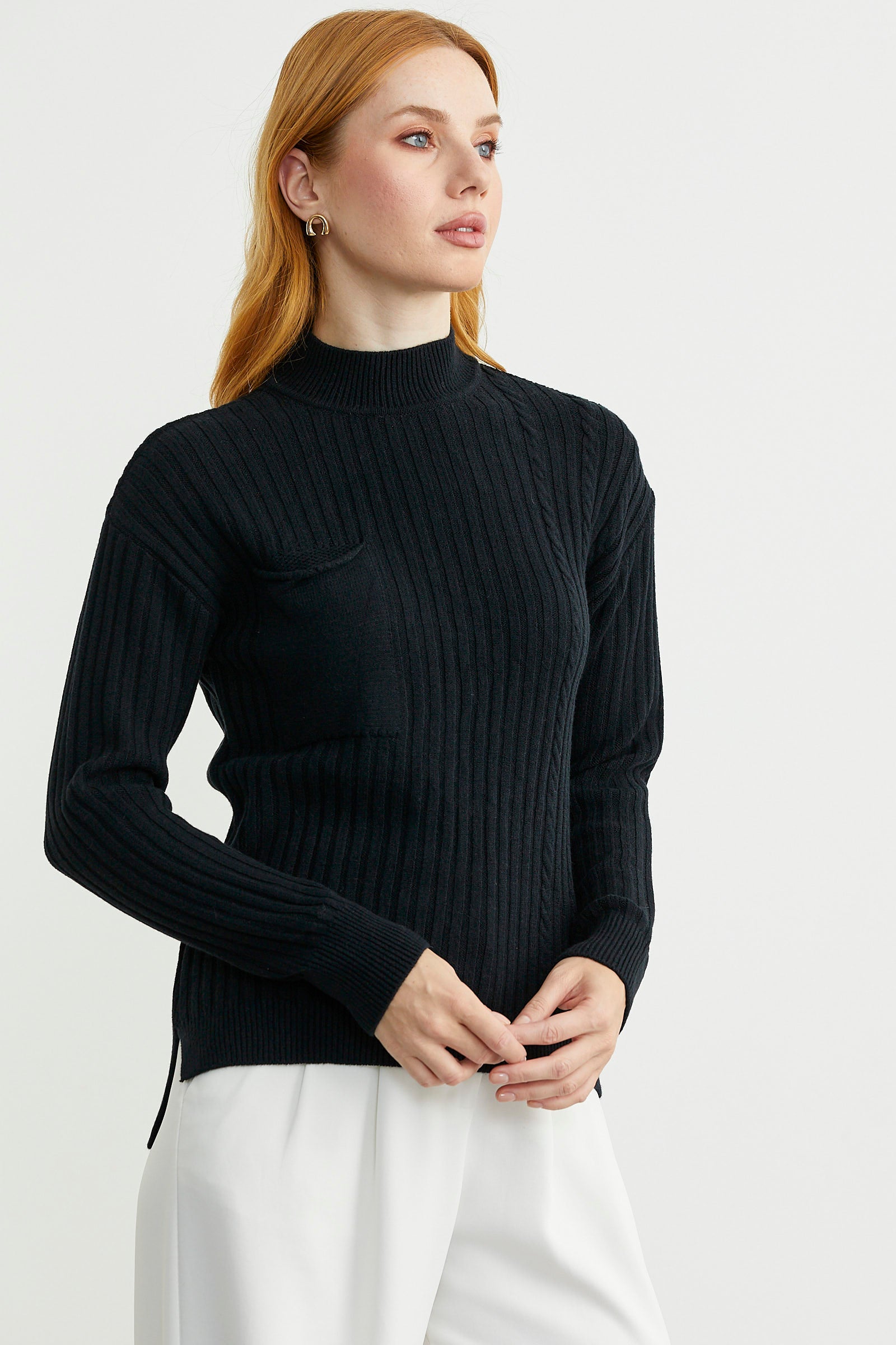 Ayrıca yarım balıkçı yaka kadın kazak tasarımları içinde yer alıp, son derece çarpıcı bir duruşu olan yaka ucu büzgü detaylı kazak da, sezonun trend ve favori ürünleri arasında! Bu ürünümüzde ayrıca desenler de, şık ve zarif duruşlarıyla göz dolduruyor. Renk seçenekleri arasında ise siyah, lacivert, bordo, pudra ve vizon yer alıyor.