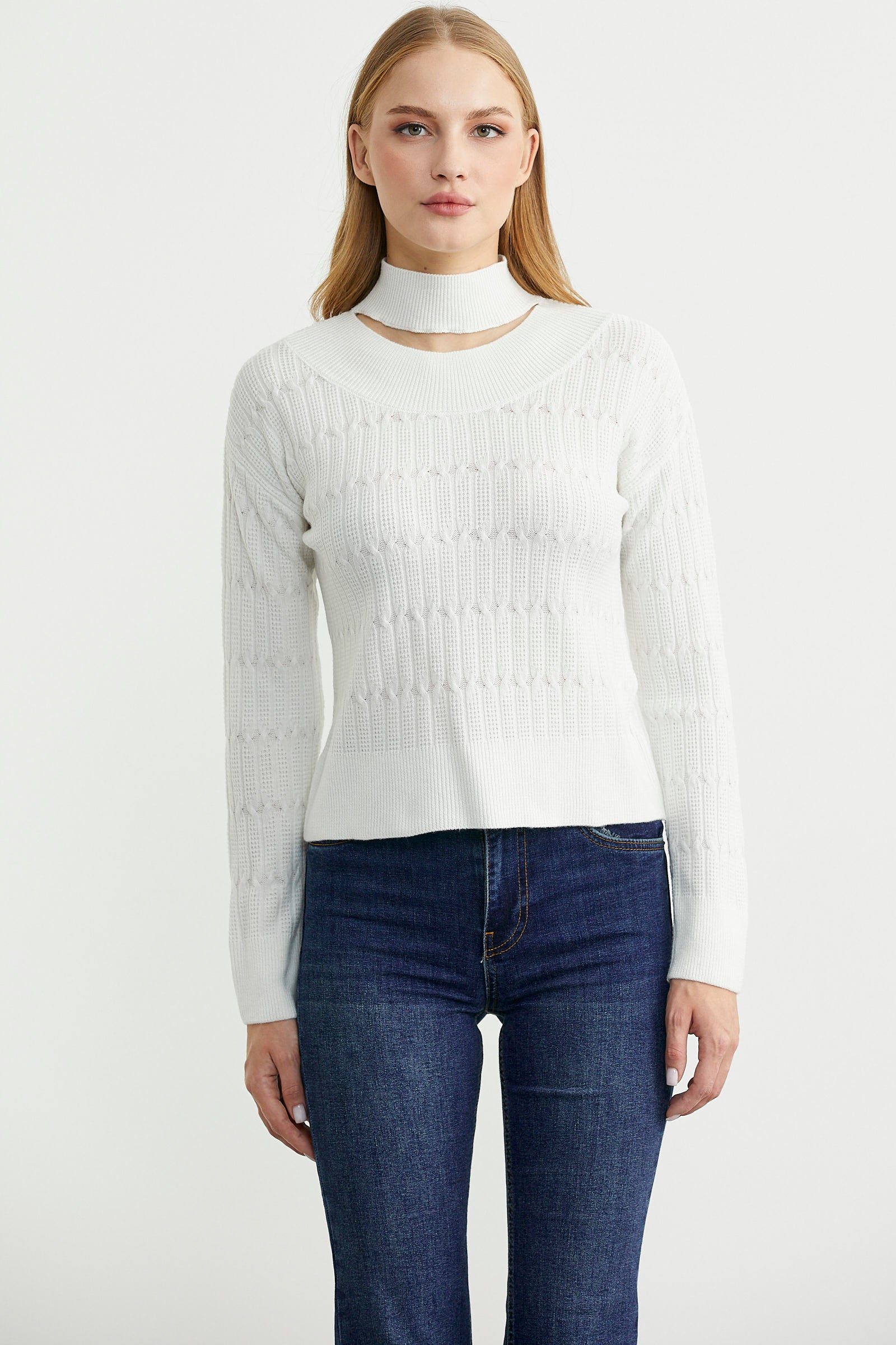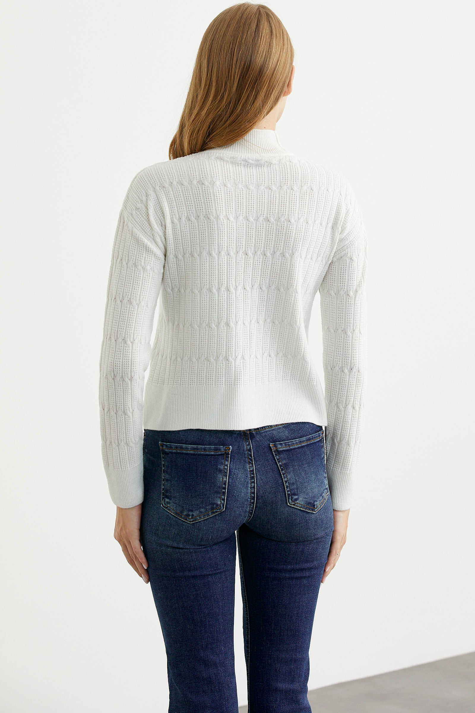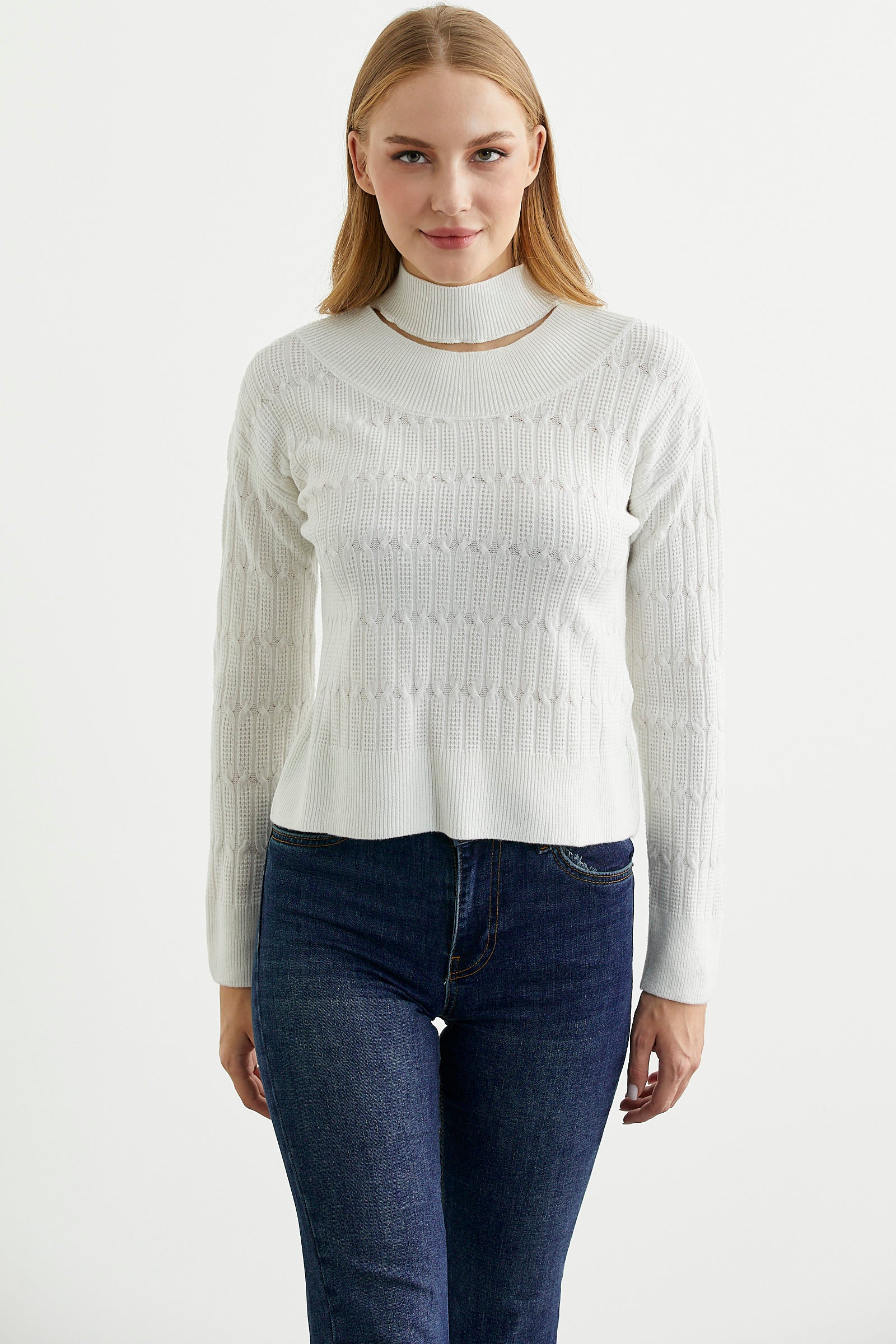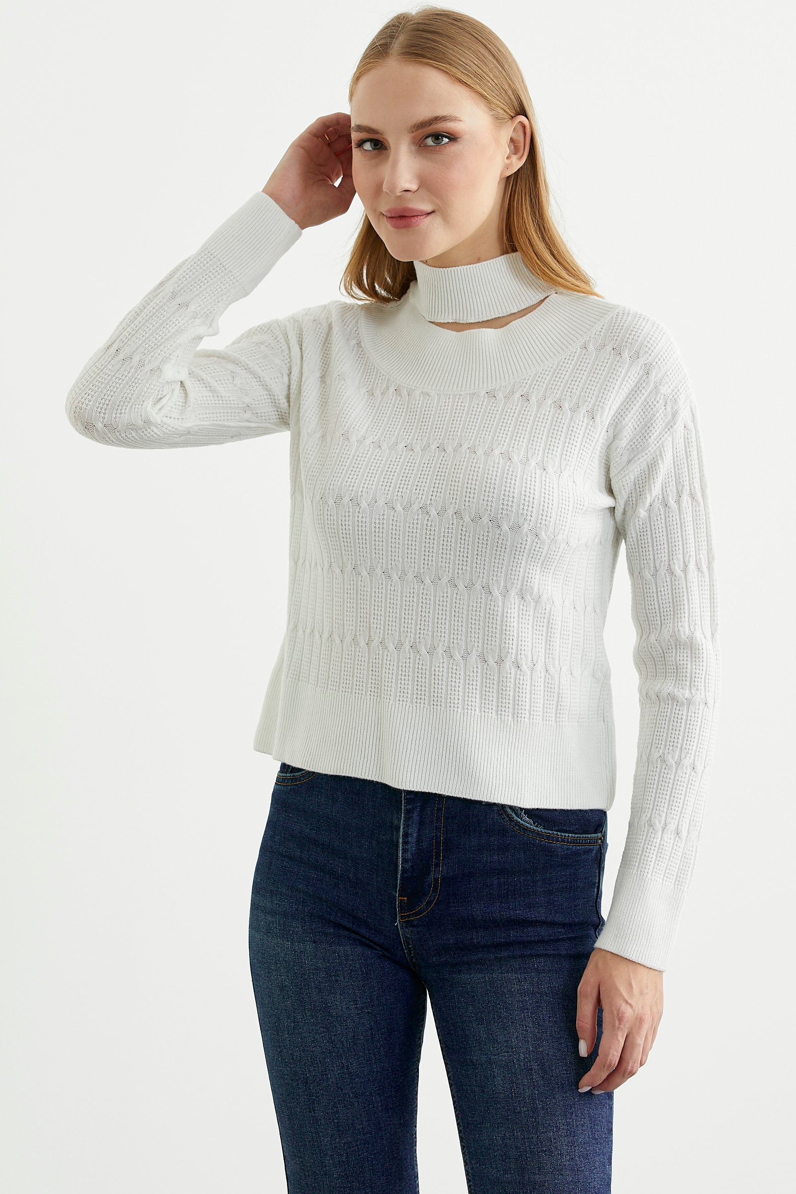 Ayrıca yarım balıkçı yaka kadın kazak tasarımları içinde yer alıp, son derece çarpıcı bir duruşu olan yaka ucu büzgü detaylı kazak da, sezonun trend ve favori ürünleri arasında! Bu ürünümüzde ayrıca desenler de, şık ve zarif duruşlarıyla göz dolduruyor. Renk seçenekleri arasında ise siyah, lacivert, bordo, pudra ve vizon yer alıyor.