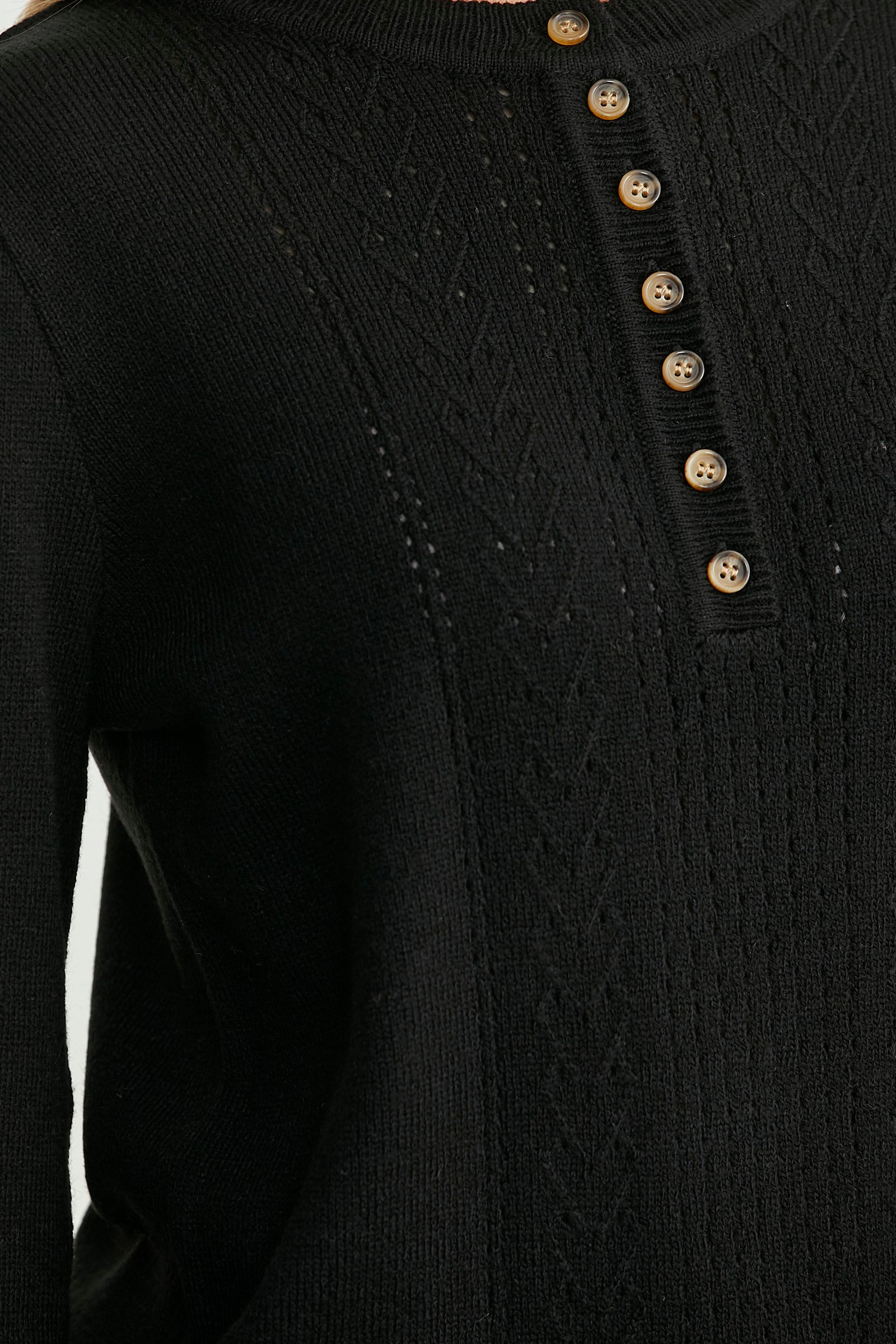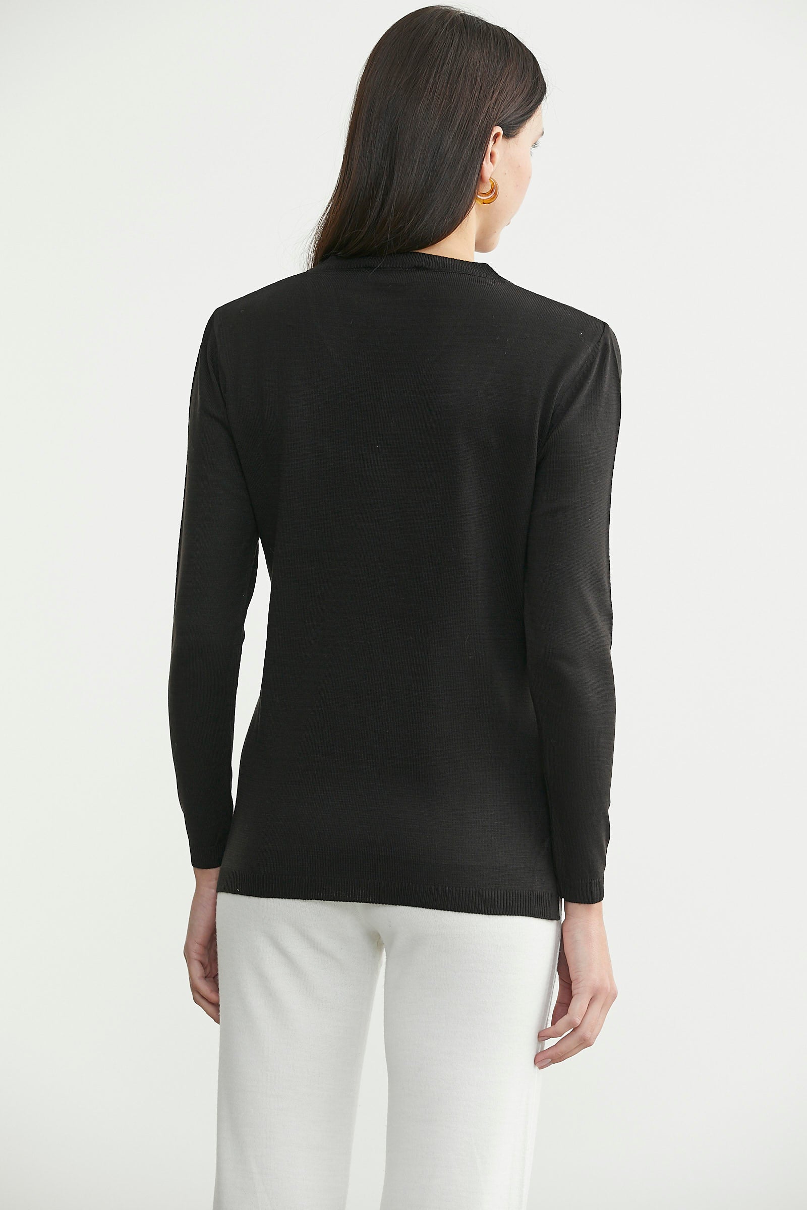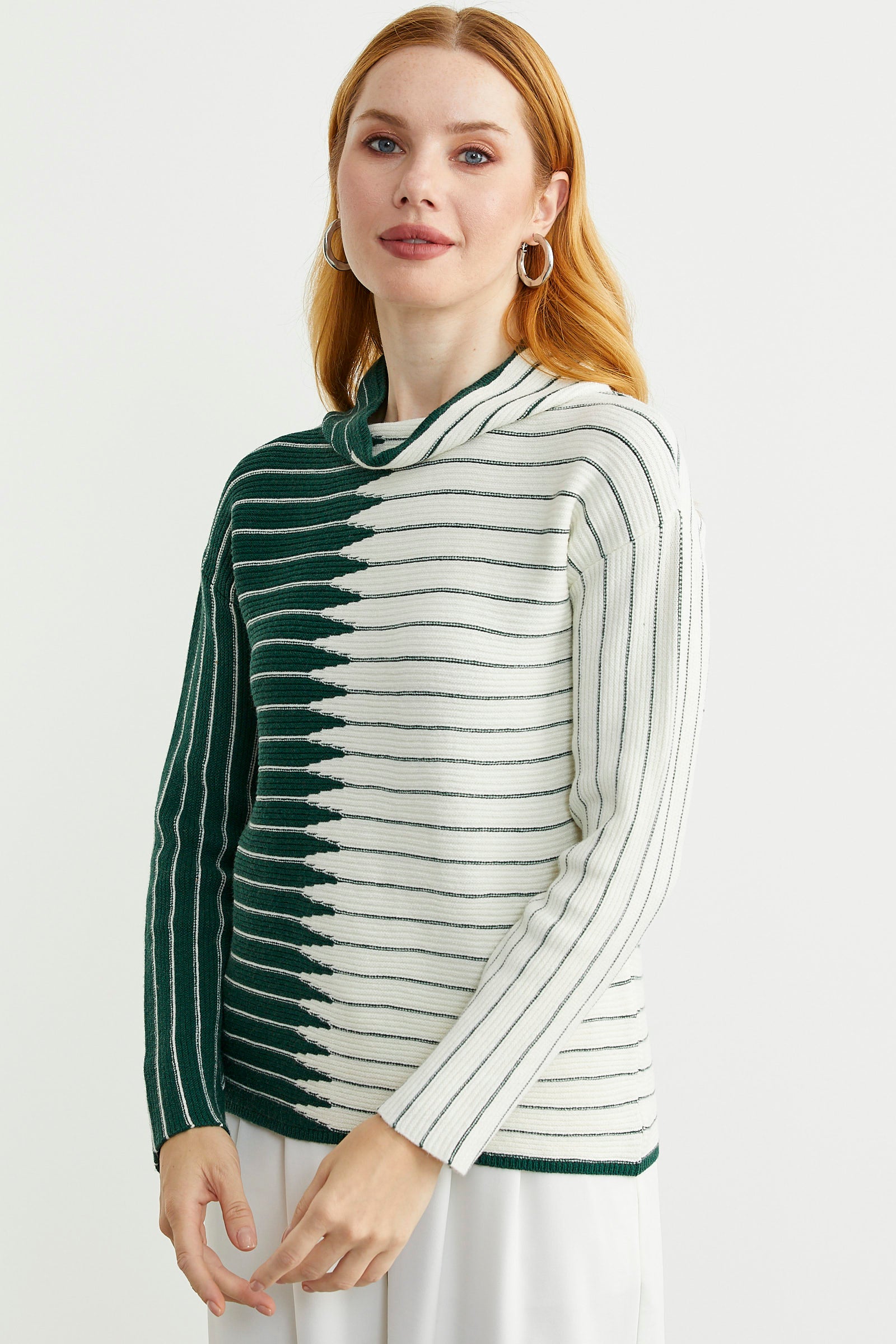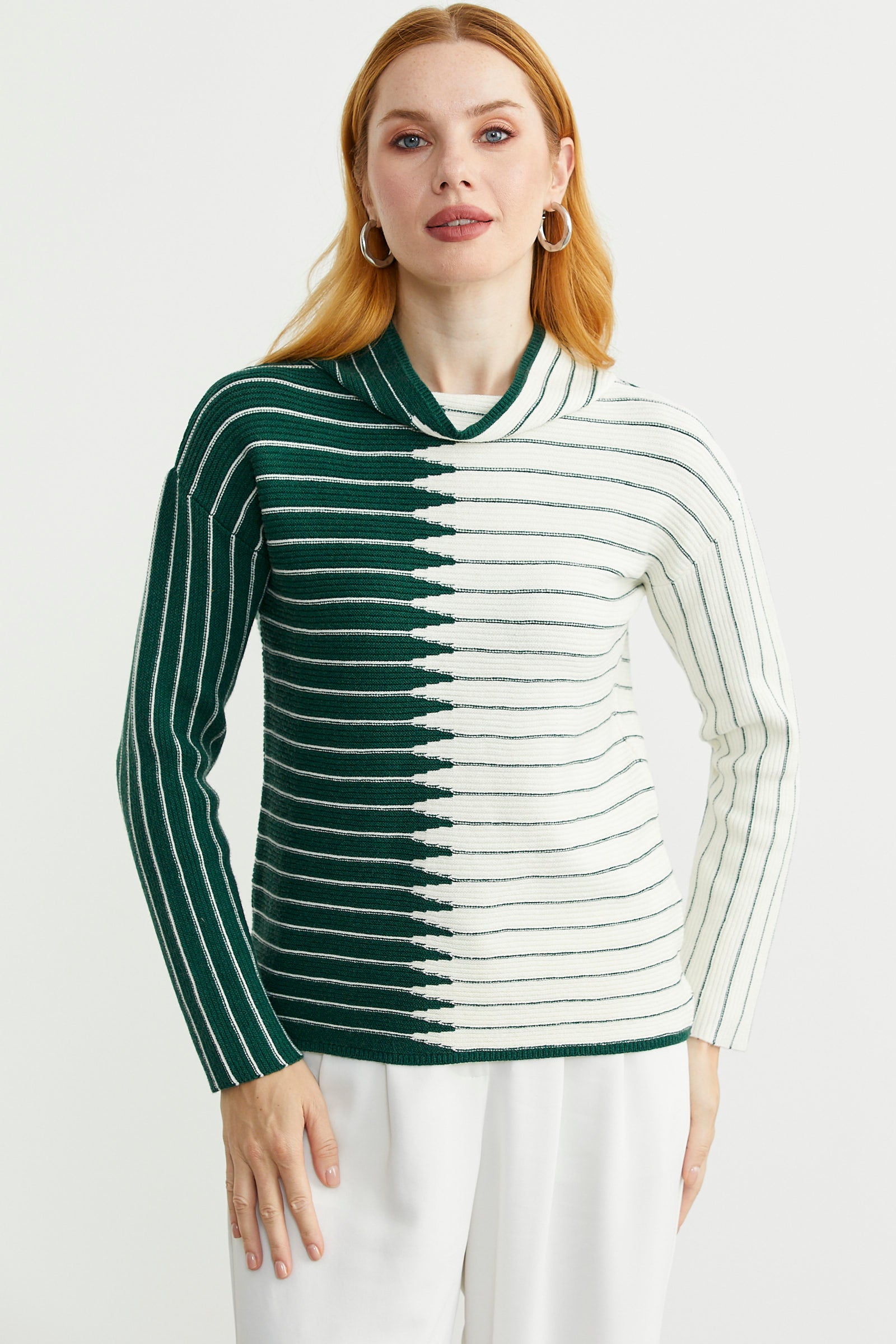 Ayrıca yarım balıkçı yaka kadın kazak tasarımları içinde yer alıp, son derece çarpıcı bir duruşu olan yaka ucu büzgü detaylı kazak da, sezonun trend ve favori ürünleri arasında! Bu ürünümüzde ayrıca desenler de, şık ve zarif duruşlarıyla göz dolduruyor. Renk seçenekleri arasında ise siyah, lacivert, bordo, pudra ve vizon yer alıyor.