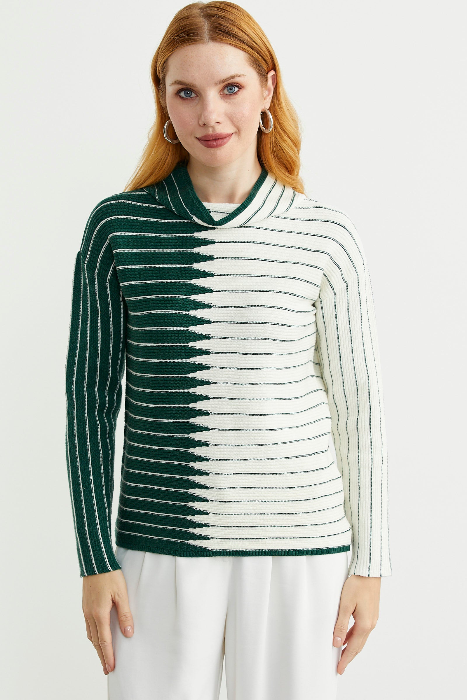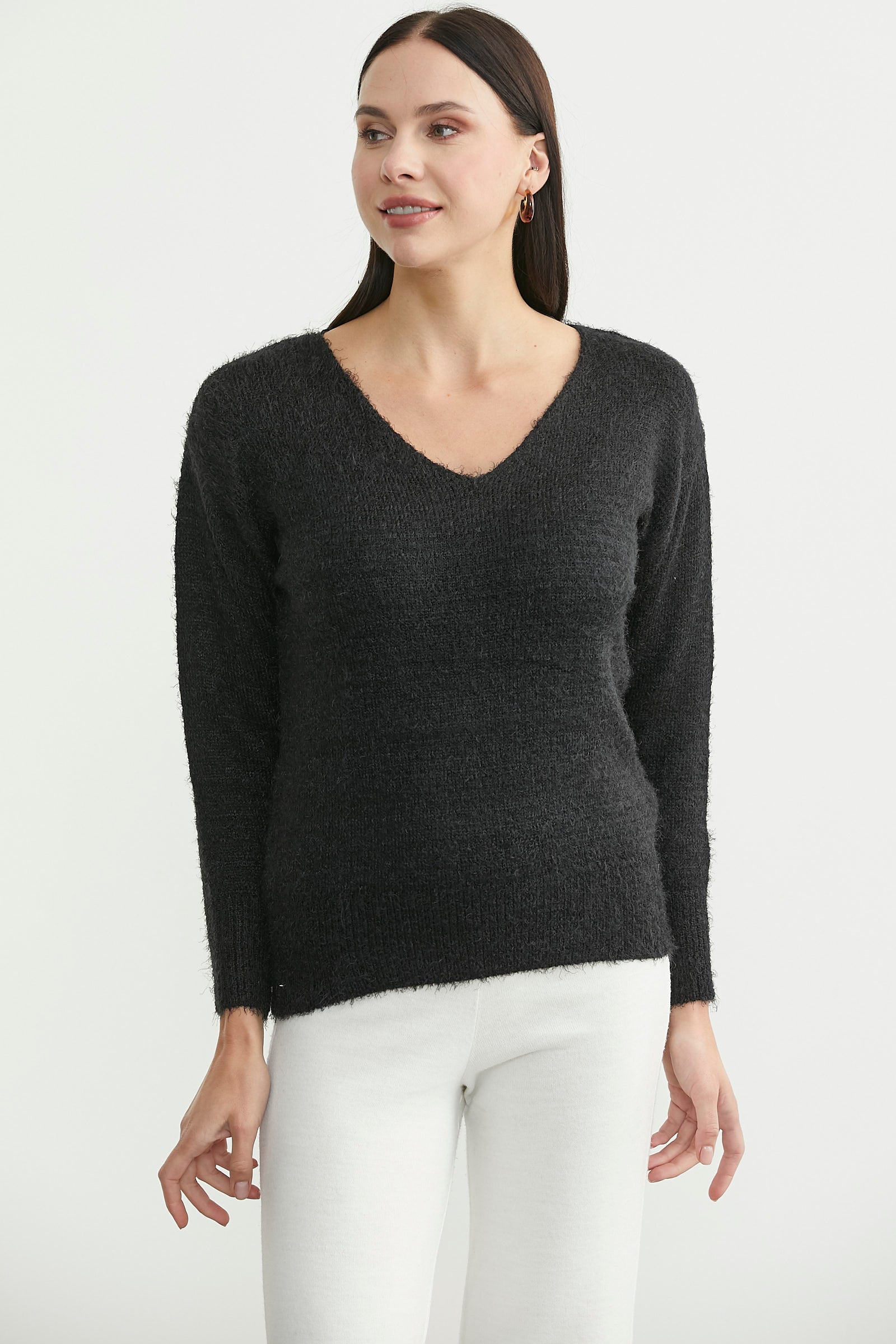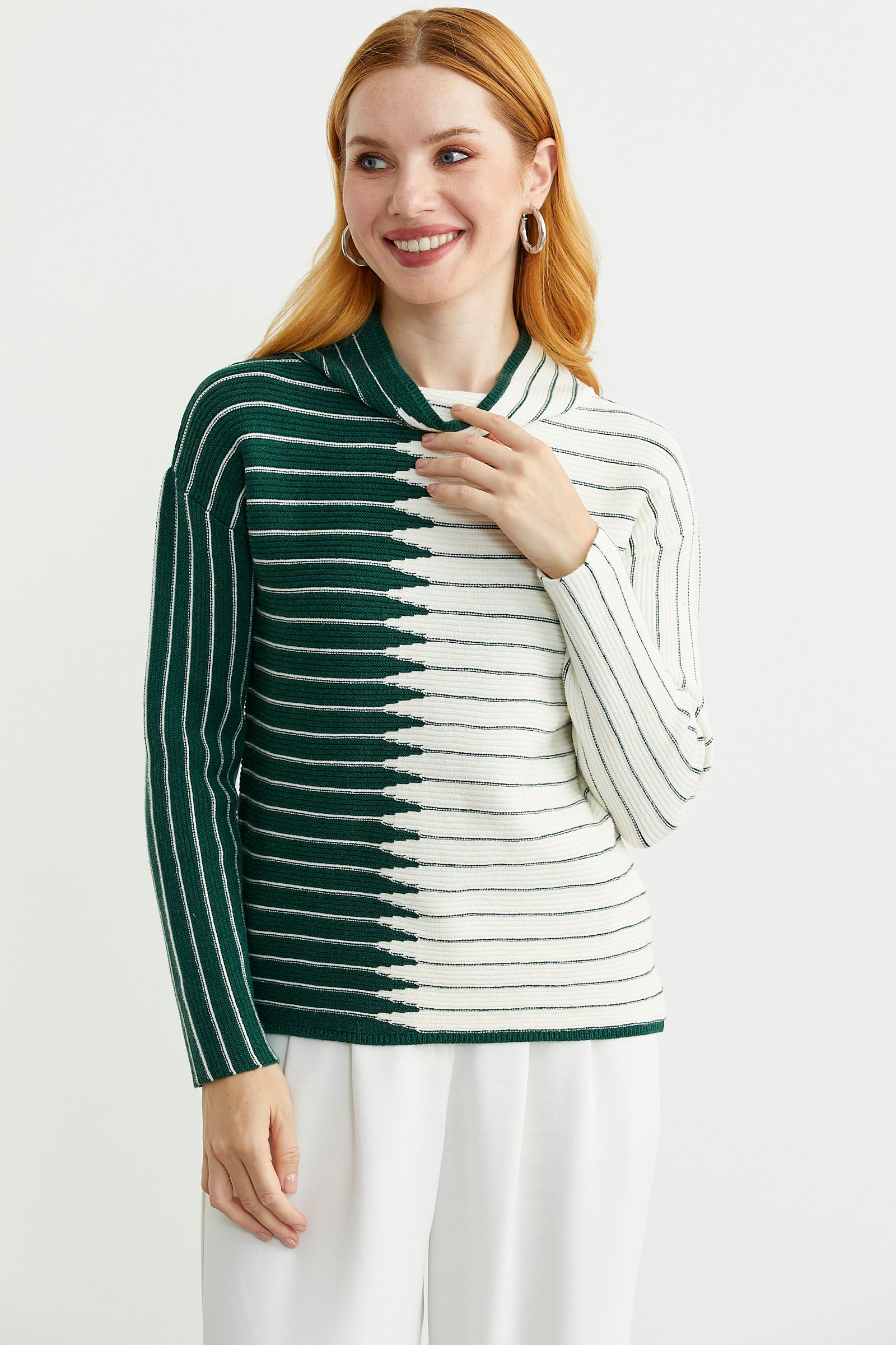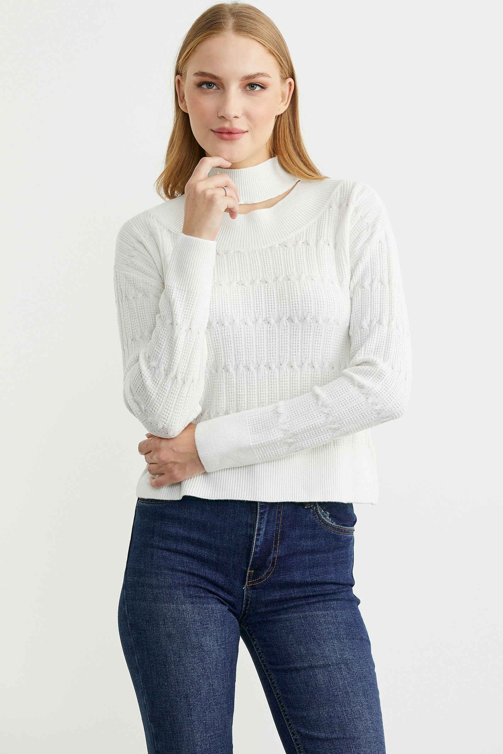 Ayrıca yarım balıkçı yaka kadın kazak tasarımları içinde yer alıp, son derece çarpıcı bir duruşu olan yaka ucu büzgü detaylı kazak da, sezonun trend ve favori ürünleri arasında! Bu ürünümüzde ayrıca desenler de, şık ve zarif duruşlarıyla göz dolduruyor. Renk seçenekleri arasında ise siyah, lacivert, bordo, pudra ve vizon yer alıyor.