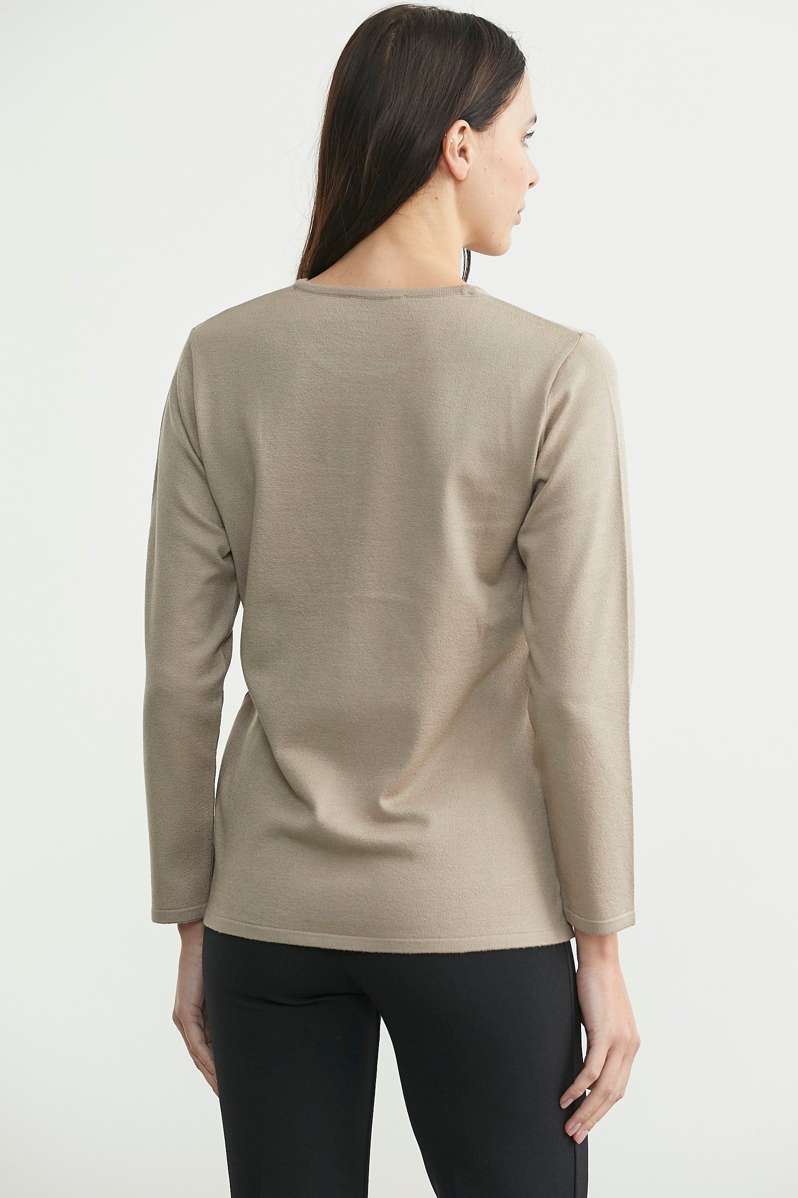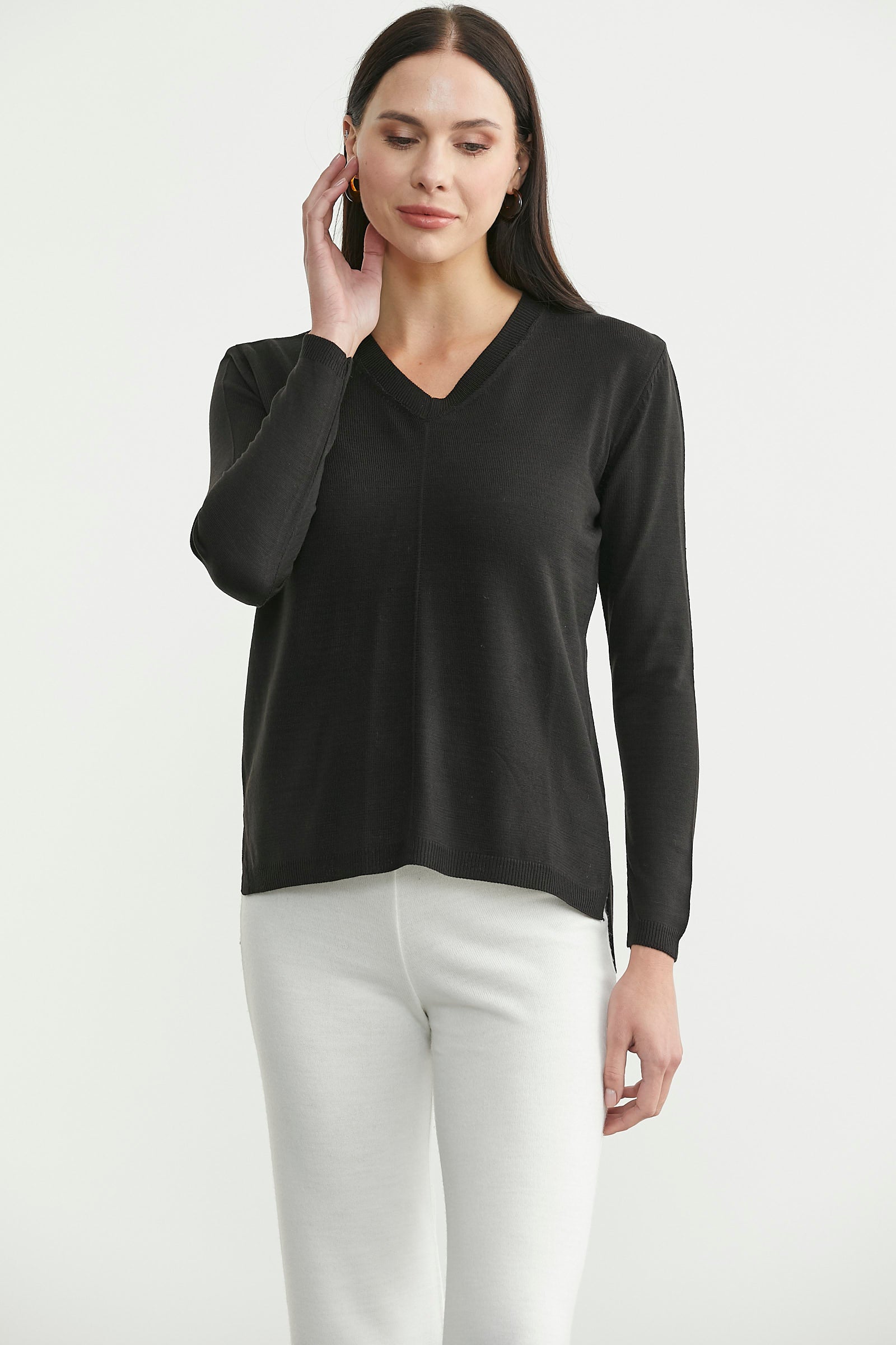 Soğuk havalara karşı gerekli önlemi alırken şıklığından ödün vermek istemeyenlerin tercih edebileceği uzun bayan triko kazak modelleri bulunur. Uzun tasarımları, koruma ve sıcaklık hissinin artmasına yardımcı olur. Özellikle süveter tasarımındaki uzun modeller popüler olarak tercih edilir. Altına başka bir kıyafet giyilerek kombinlenen bu parçalar, V yaka tipine sahiptir. V yaka süveter trikolarda, gri, siyah, açık bej, kırmızı gibi birçok farklı renk seçeneği mevcuttur. Bu tasarımın sütlü kahve rengi, son sezonla birlikte dikkatleri üzerine çekmeye başlamıştır. Yumuşak renk tonu, kombinlere doğal ve şık bir hava katar.