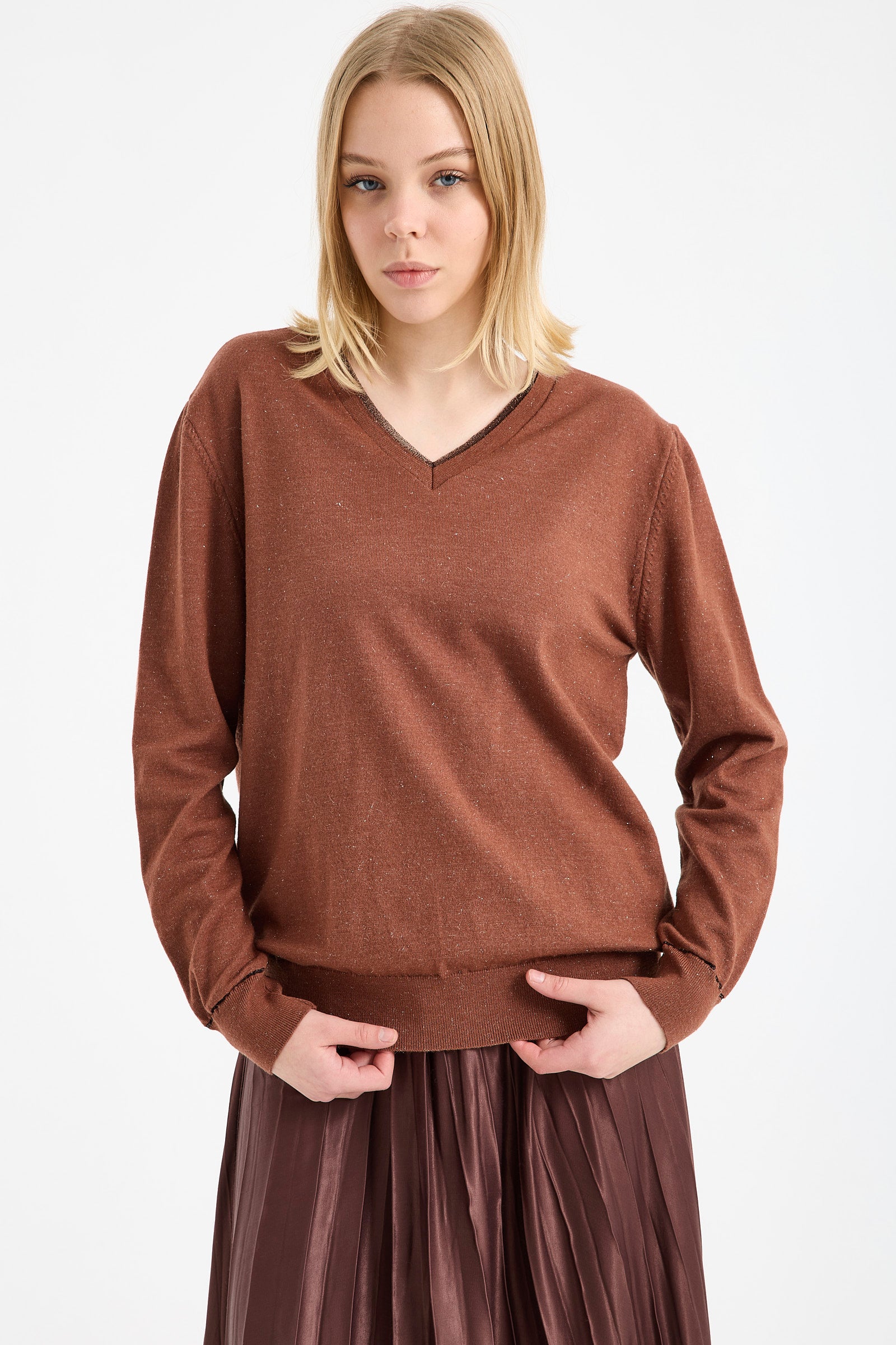 Soğuk havalara karşı gerekli önlemi alırken şıklığından ödün vermek istemeyenlerin tercih edebileceği uzun bayan triko kazak modelleri bulunur. Uzun tasarımları, koruma ve sıcaklık hissinin artmasına yardımcı olur. Özellikle süveter tasarımındaki uzun modeller popüler olarak tercih edilir. Altına başka bir kıyafet giyilerek kombinlenen bu parçalar, V yaka tipine sahiptir. V yaka süveter trikolarda, gri, siyah, açık bej, kırmızı gibi birçok farklı renk seçeneği mevcuttur. Bu tasarımın sütlü kahve rengi, son sezonla birlikte dikkatleri üzerine çekmeye başlamıştır. Yumuşak renk tonu, kombinlere doğal ve şık bir hava katar.