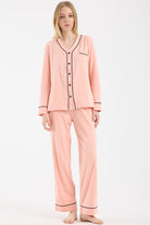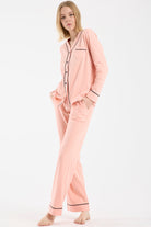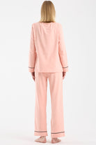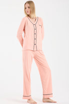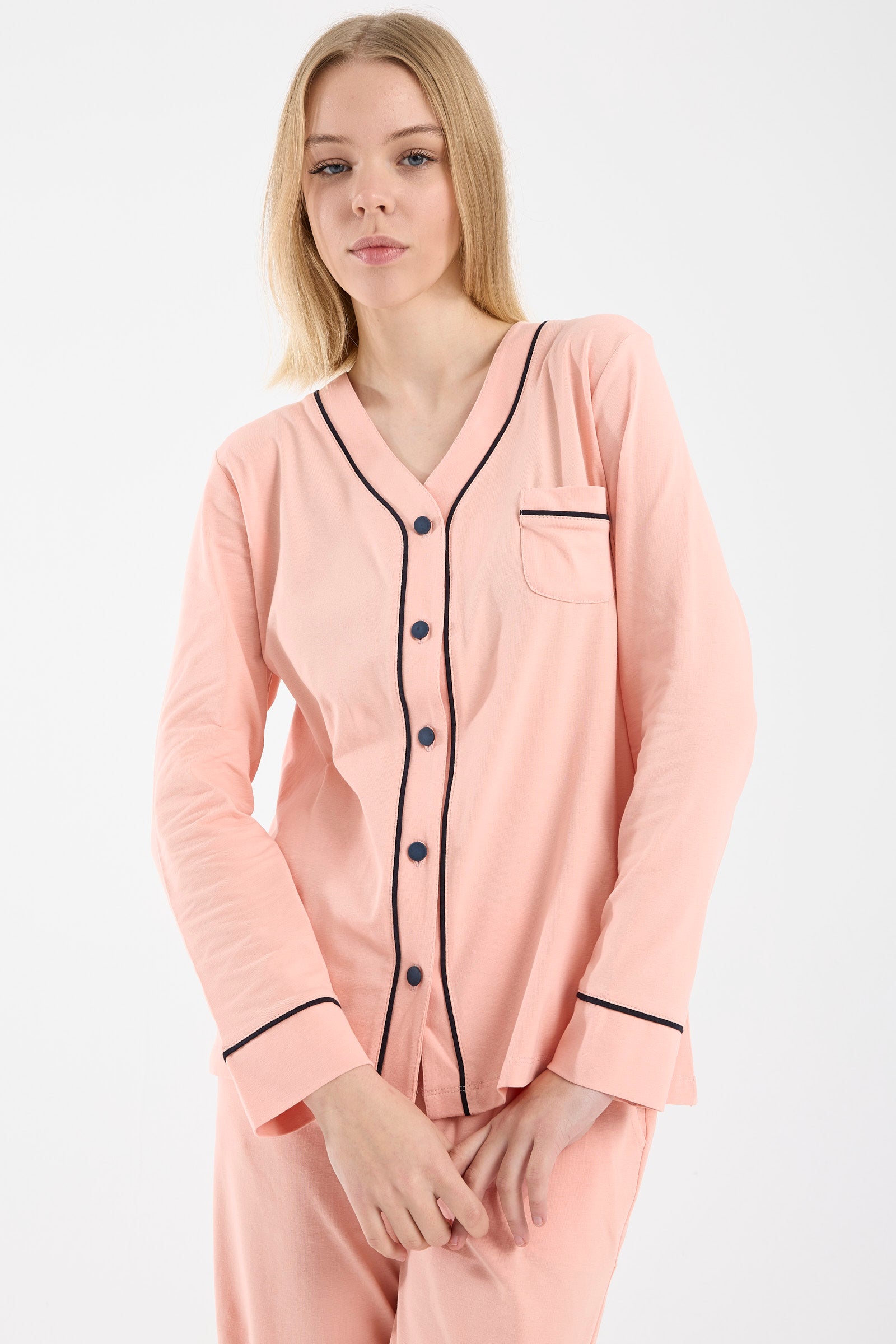 Biye Detaylı Düğmeli Pijama Takım - Somon