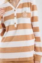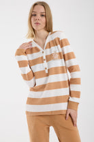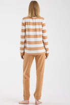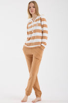 Çizgi Kombinli Detaylı Pijama Takım - Hardal