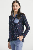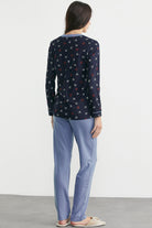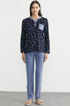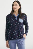 Desenli Yaka Detaylı Pijama Takım - Lacivert