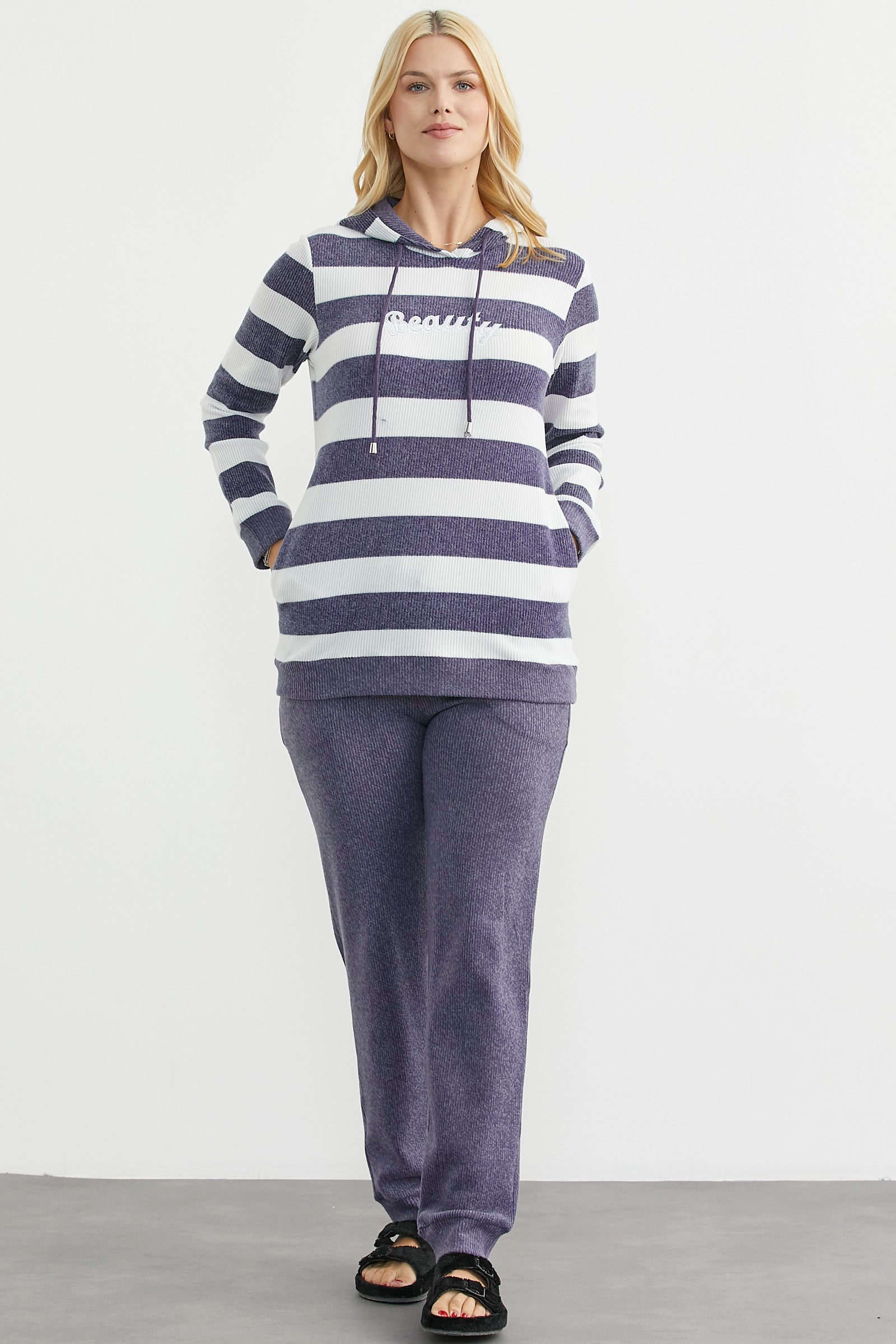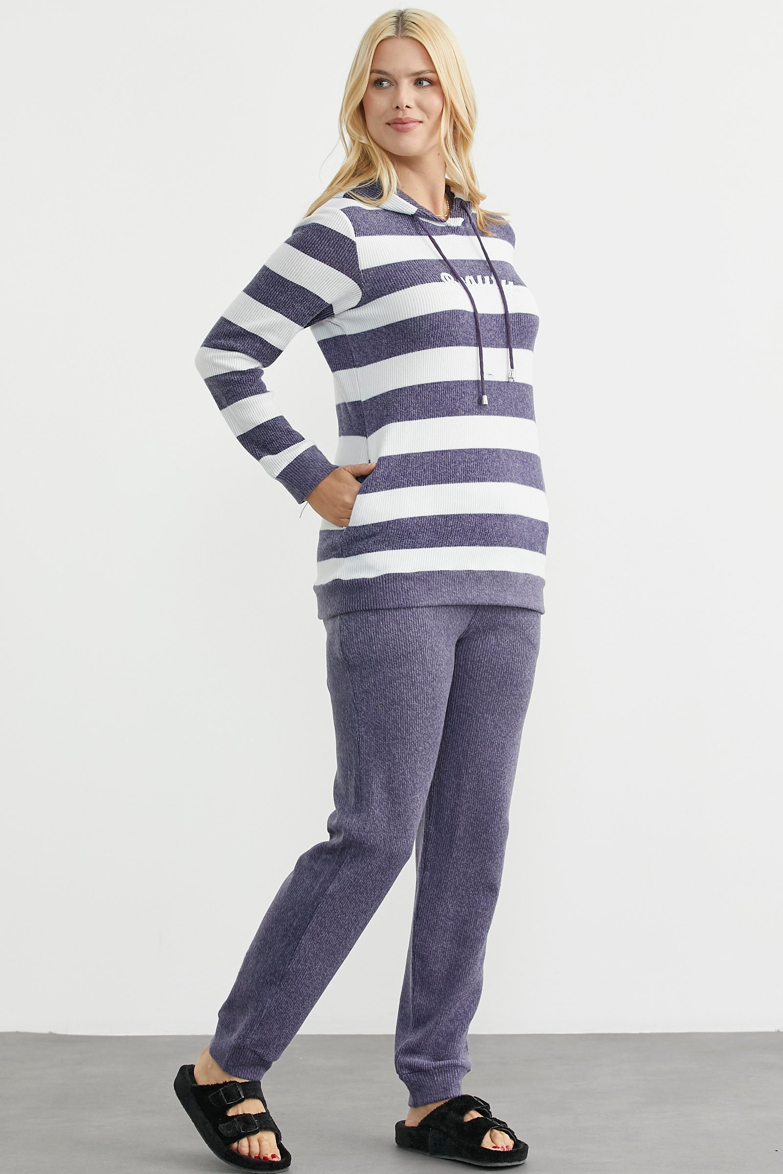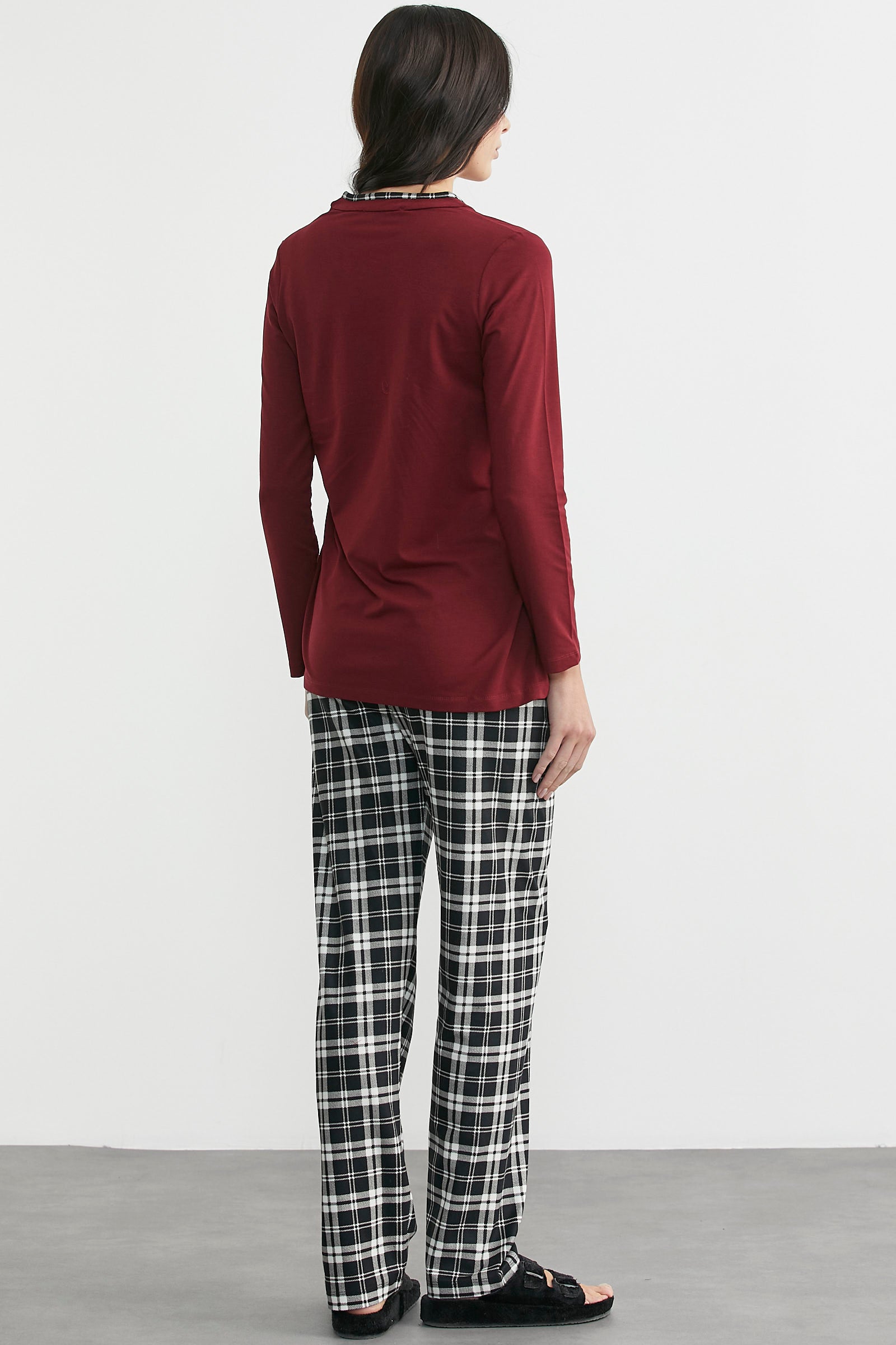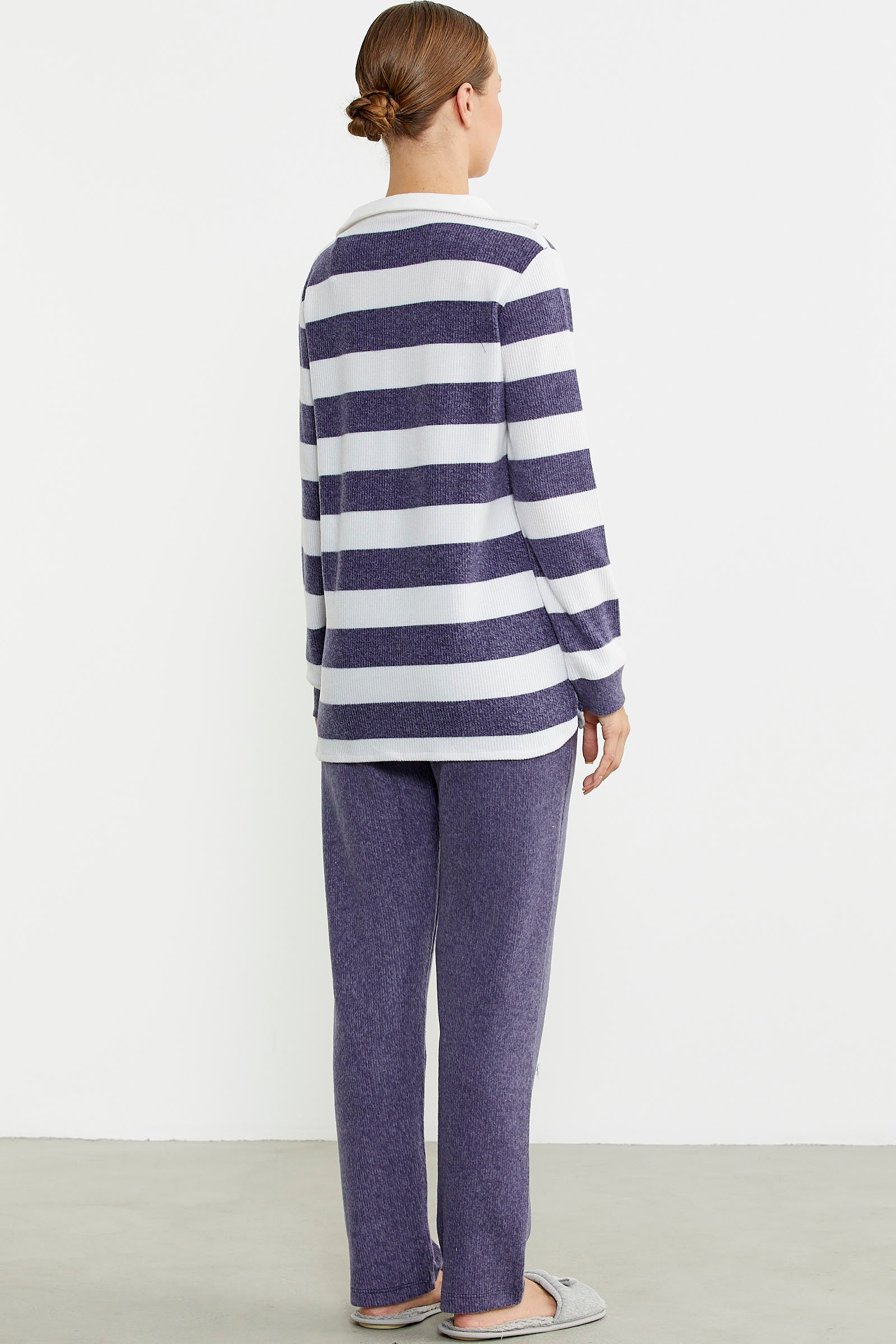 Pijamalarında çizgili desenlerin eğlenceli görüntüsüne yer vermek isteyen kadınlar için de, kareli yahut düz çizgili tasarımlarımız sizlere kavuşacağı günü bekliyor. Birçok modelde çizgilerin ya da karelerin yoğunluğu, pijama altında toplanmış durumda. Üst kısımlar daha sade olup, yaka ve düğme detaylarıyla hareketlendiriliyor. Böyle yine şıklık namına bir denge oluşturulurken, takımın hareketli havası size de yansıyor. Bunun yanında alt kısımda düz rengin kullanıldığı, üst kısımda desenlere yer verilen tasarımlarımızda yok değil. Örneğin mavi ve lila renk alternatifleriyle sunulan, ceket yaka düğmeli pijama modelimiz, böyle bir arayışı olan kadınlar tarafından tercih ediliyor.
