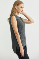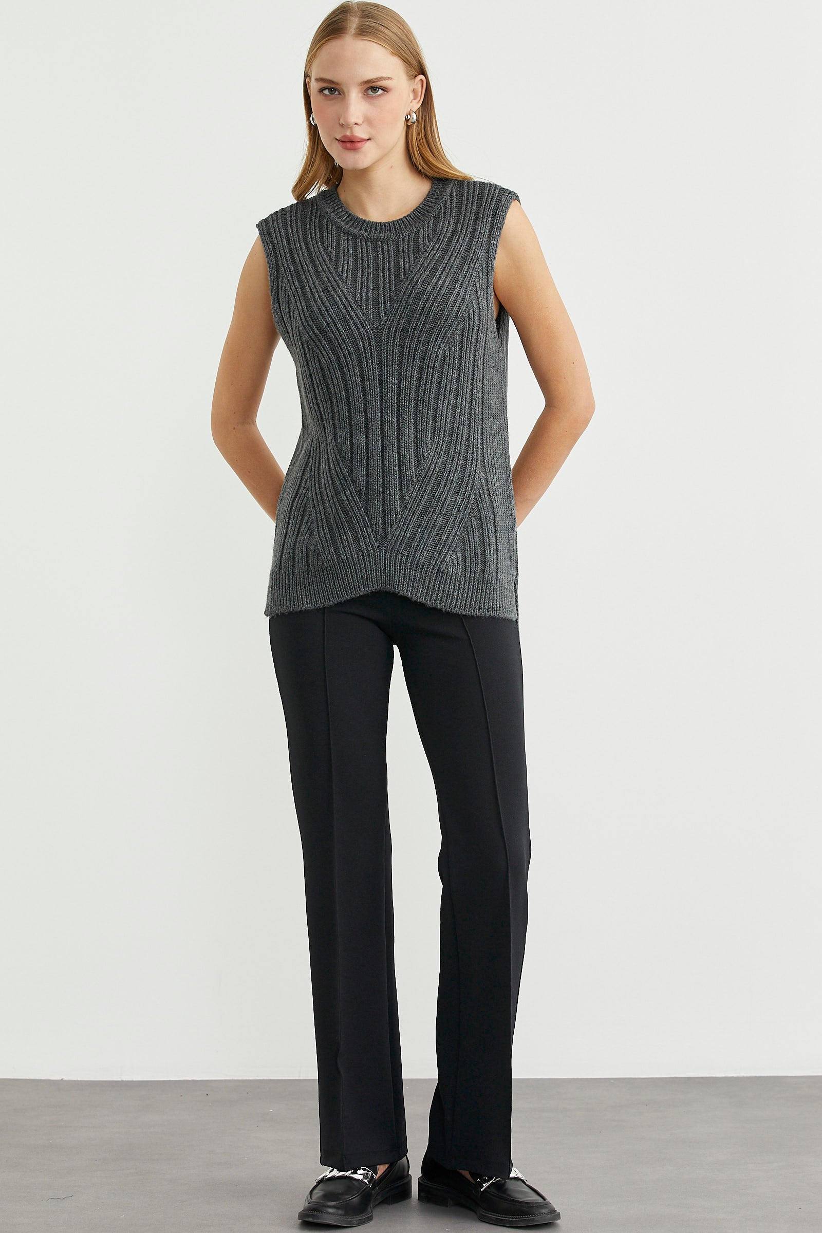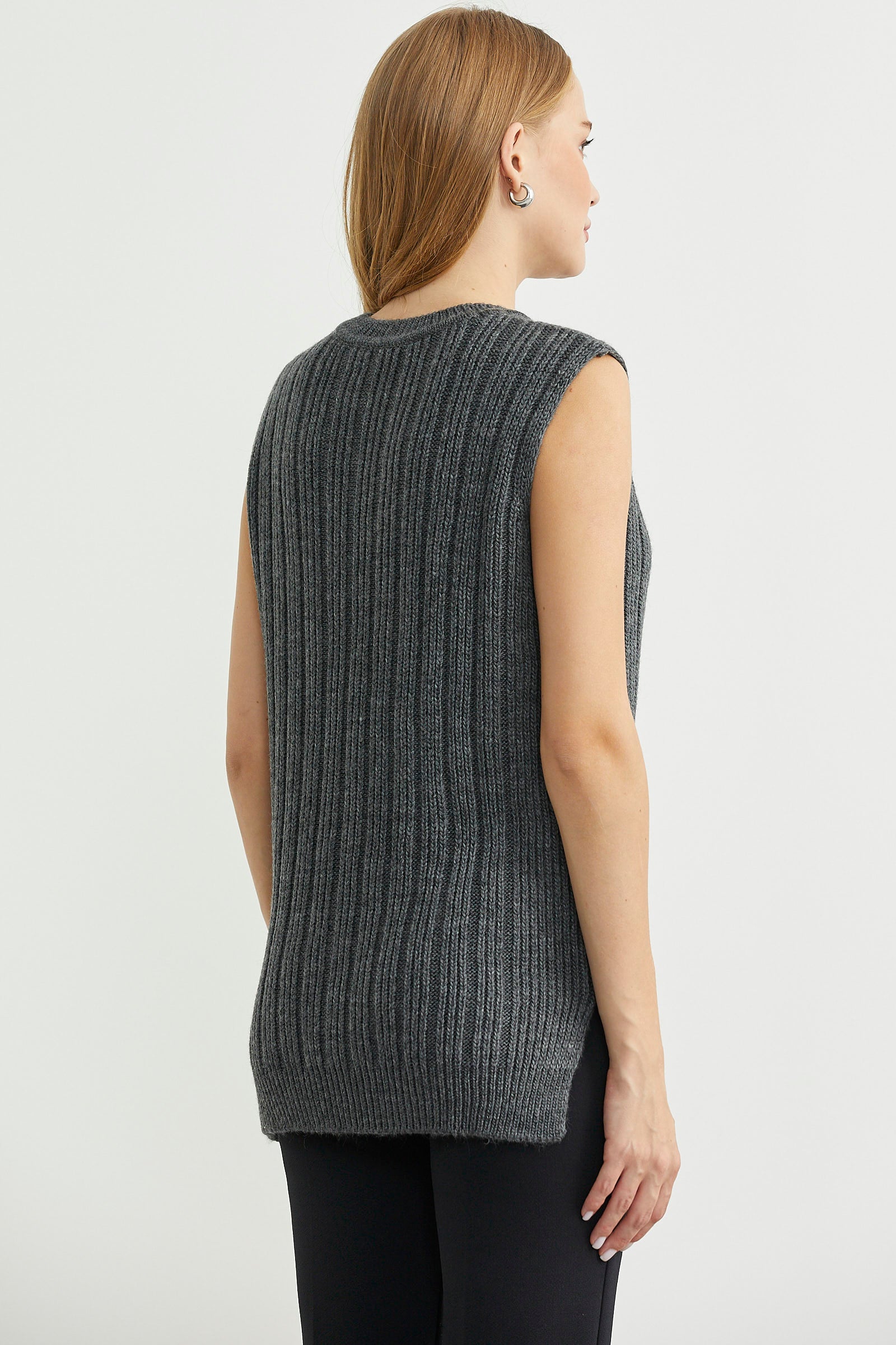 Arkası Uzun Bisiklet Yaka Yünlü Triko Süveter - Koyu Gri