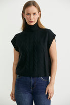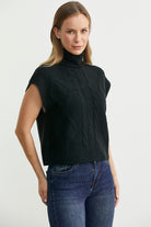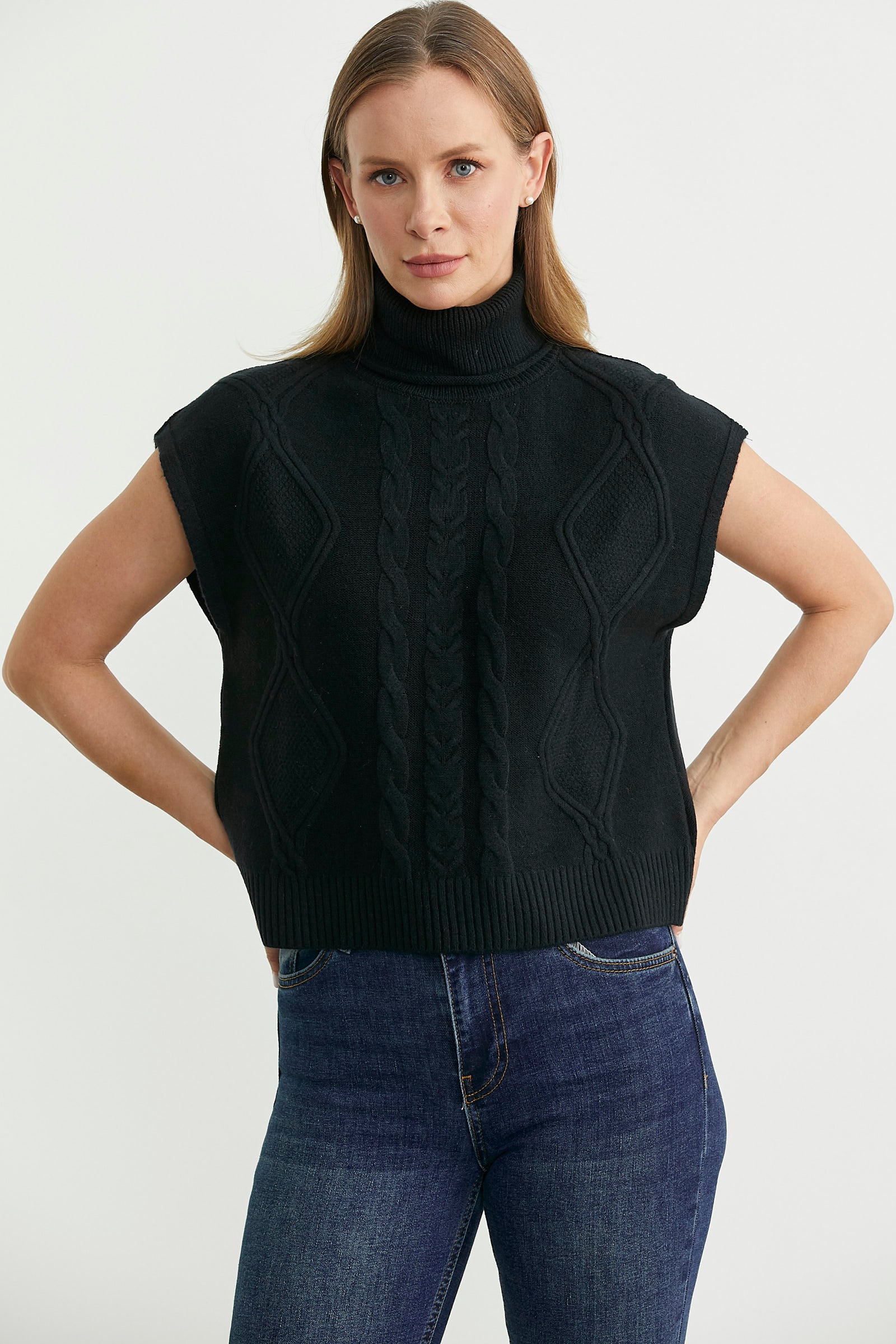 Tam Balıkçı Crop Triko Süveter - Siyah
