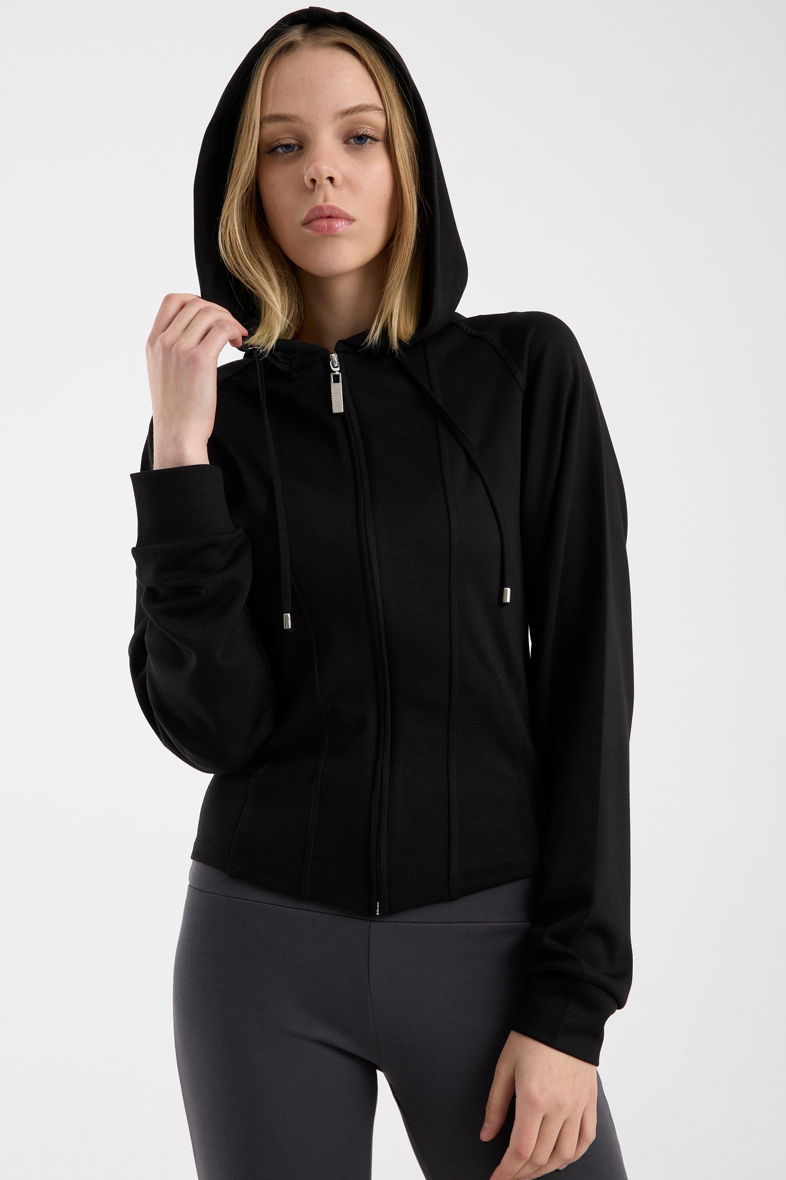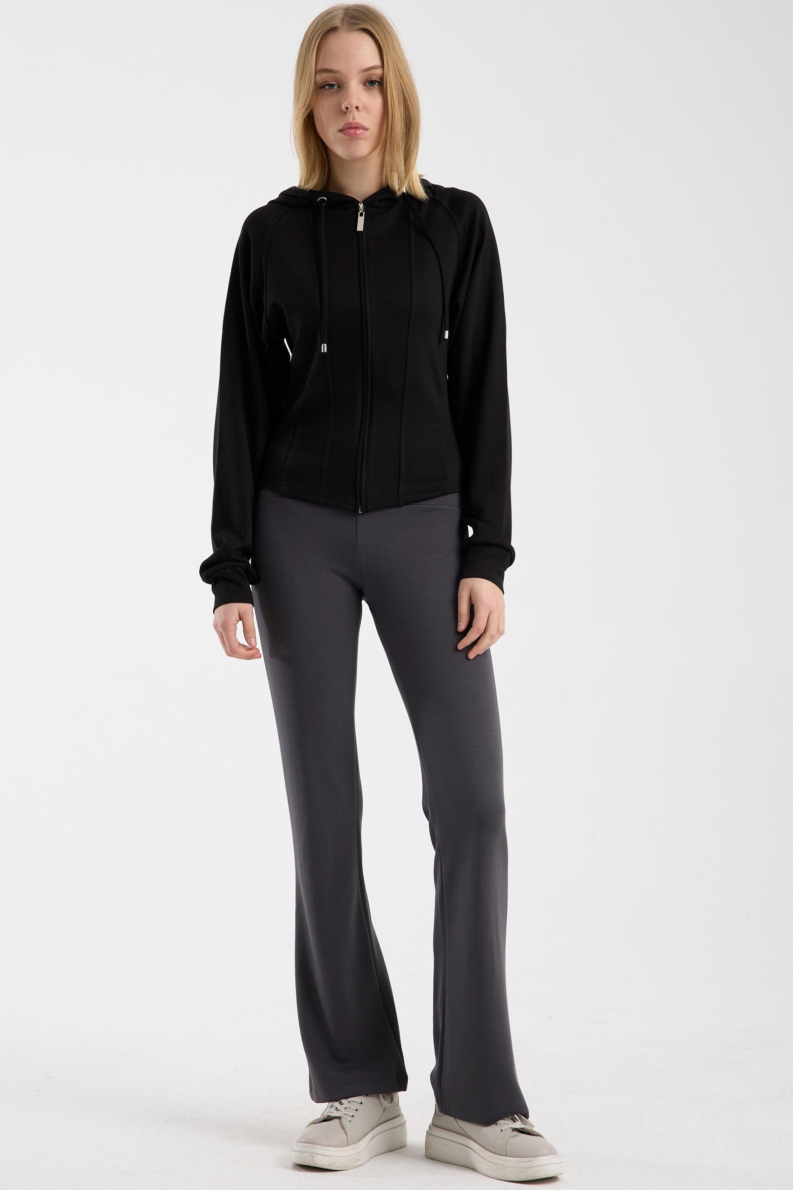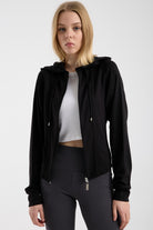 Yumuşak Dokulu Crop Sweatshirt - Siyah