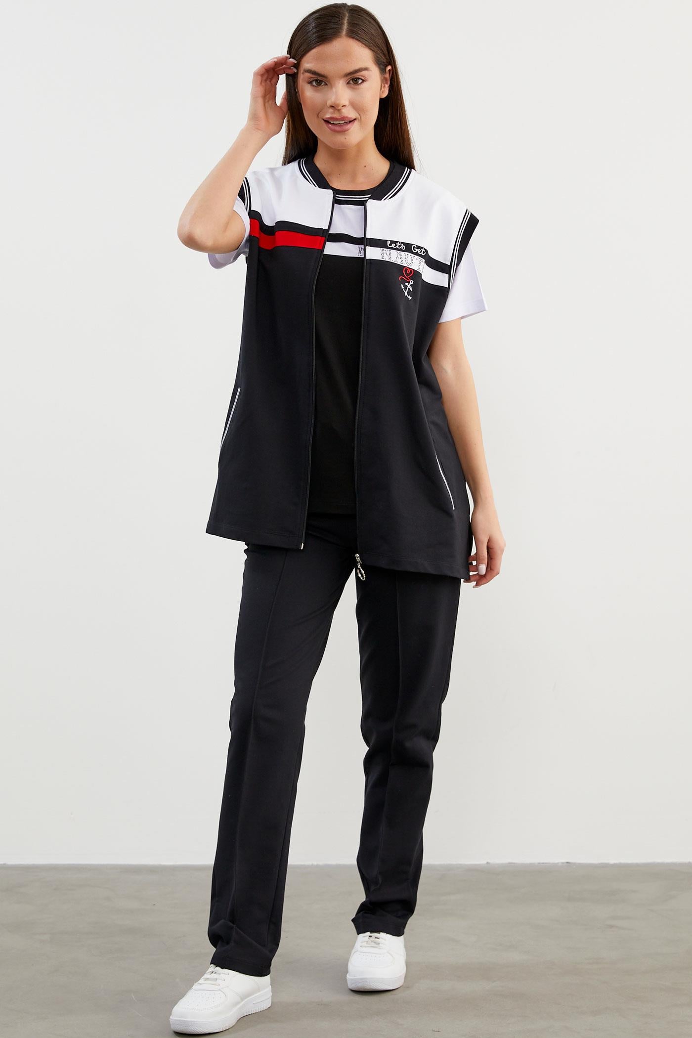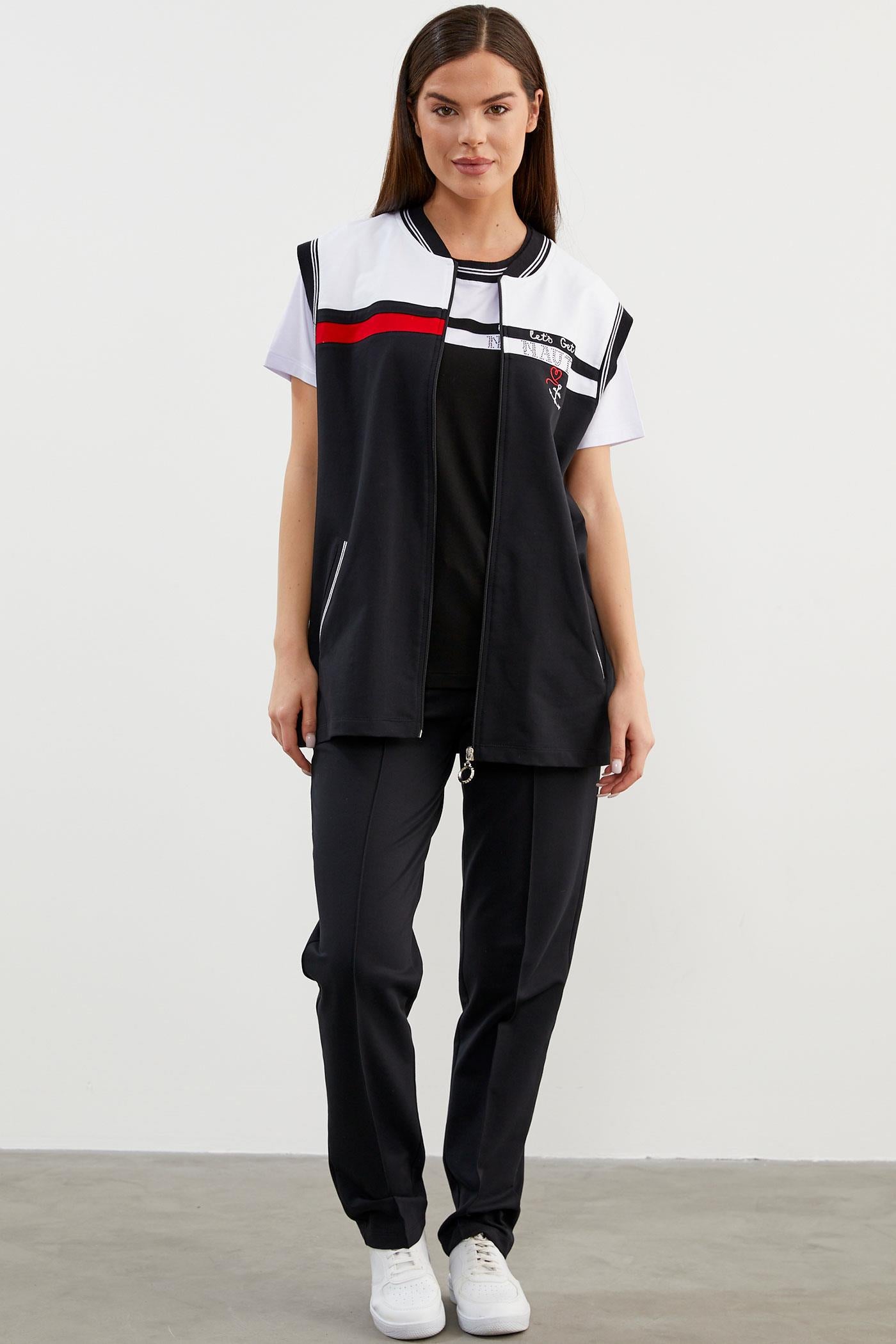 Yelek, tshirt ve eşofman altından oluşan üçlü takım.