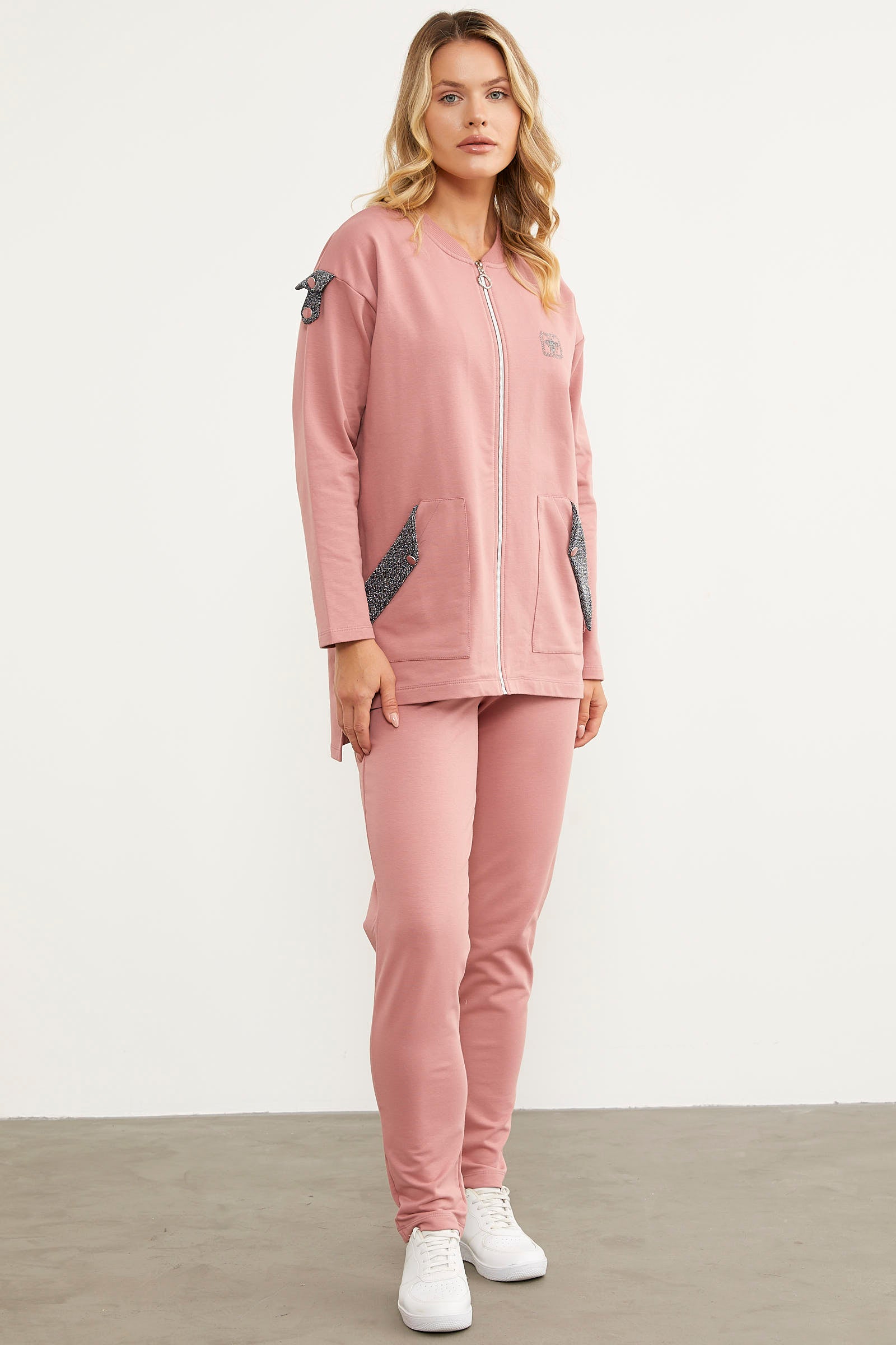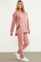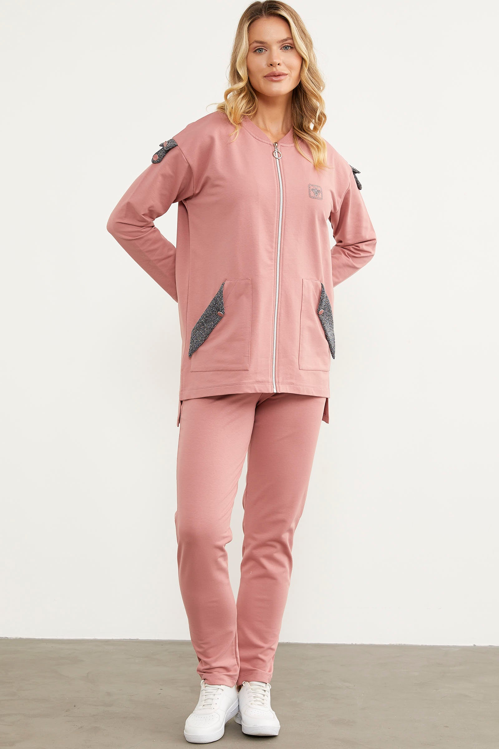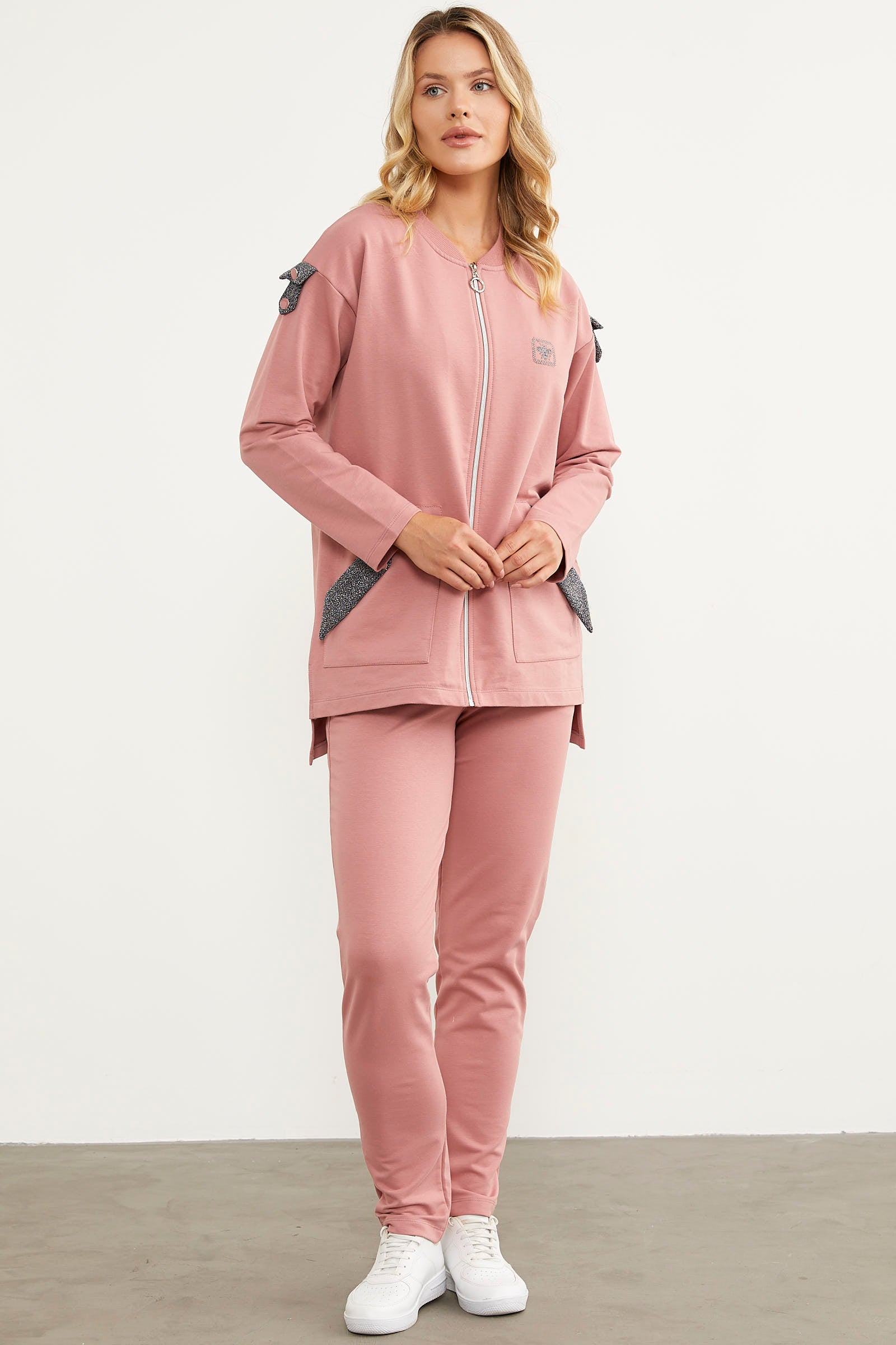 Sim Kumaş Kombinli Fermuarlı Takım - Gül