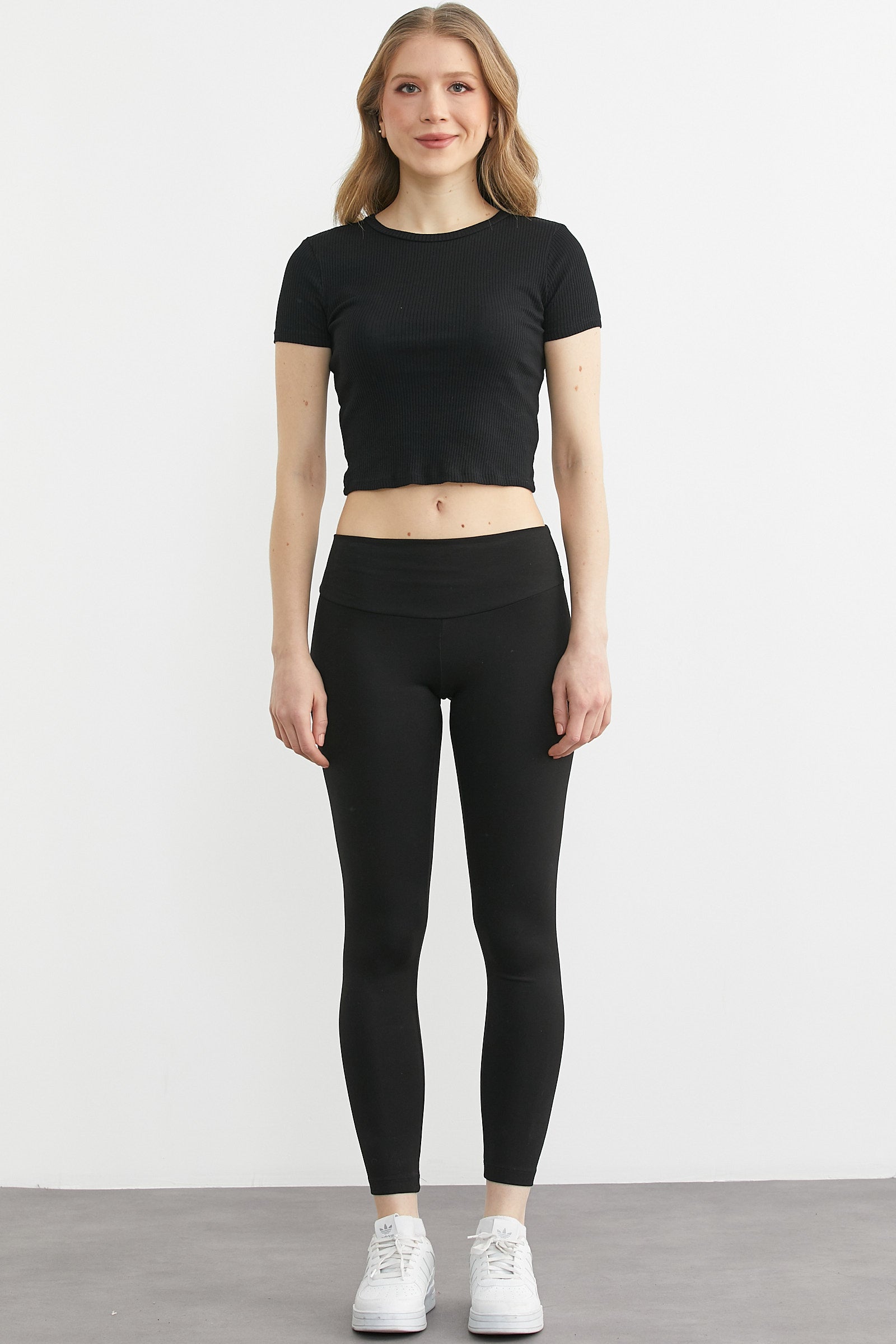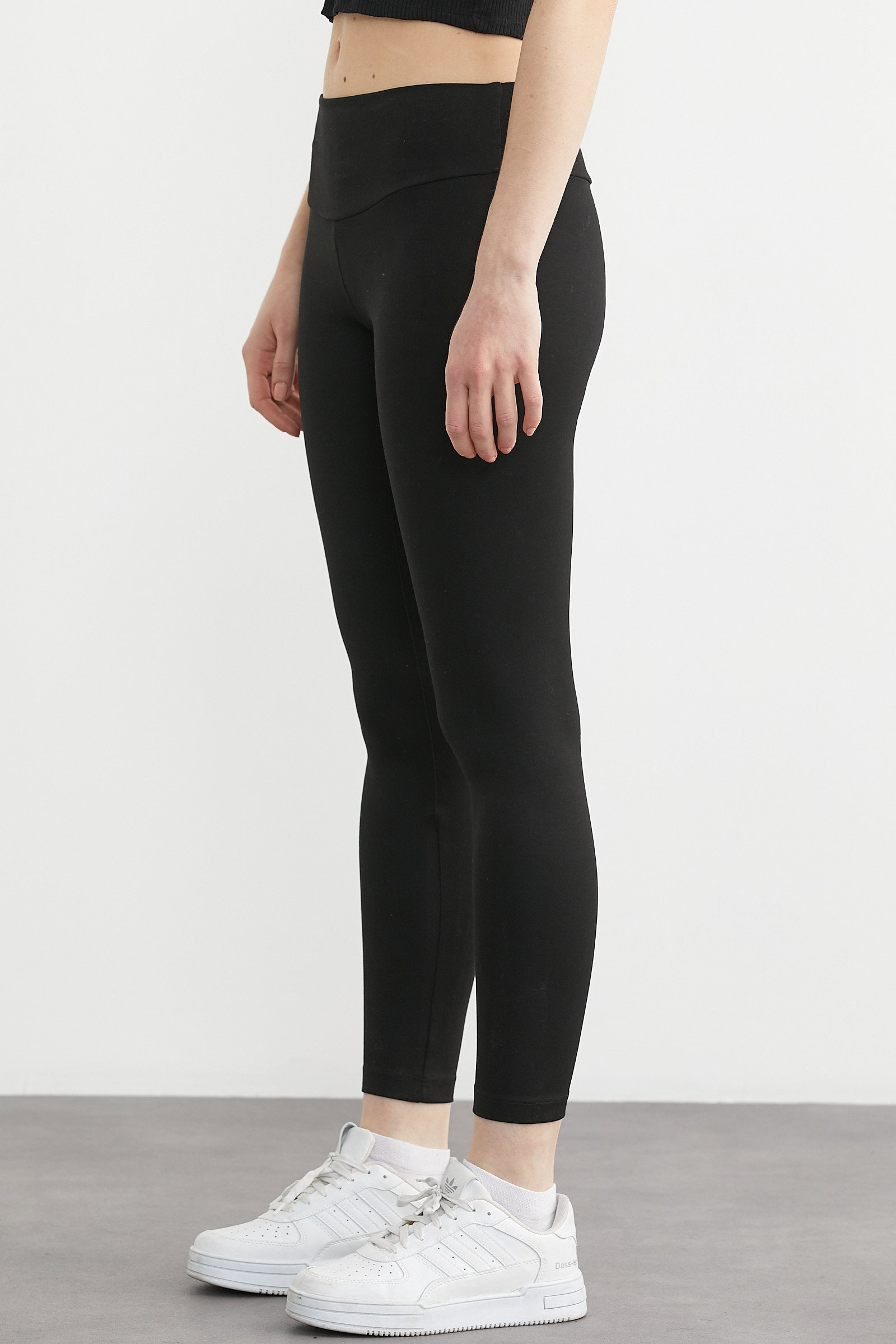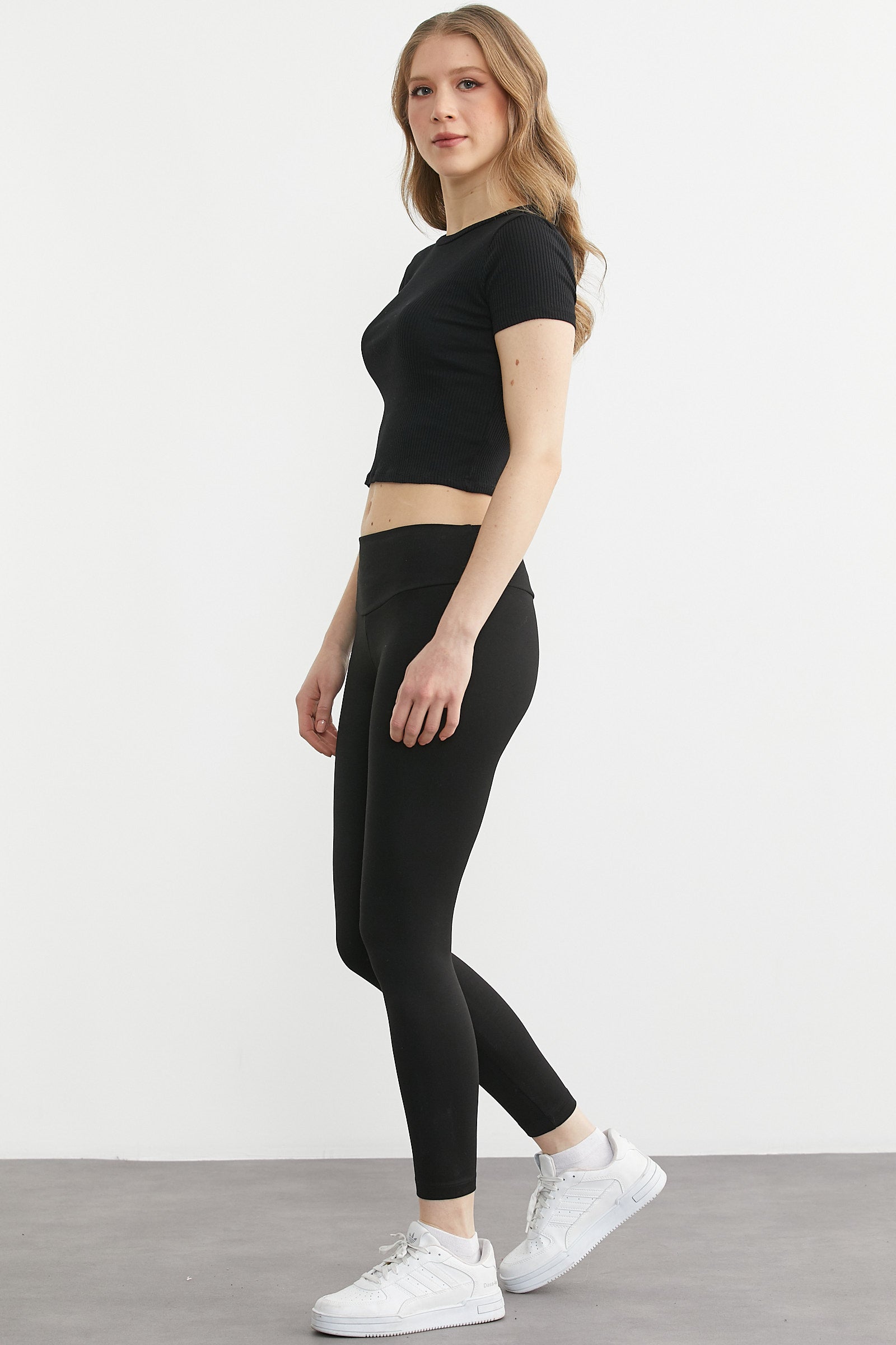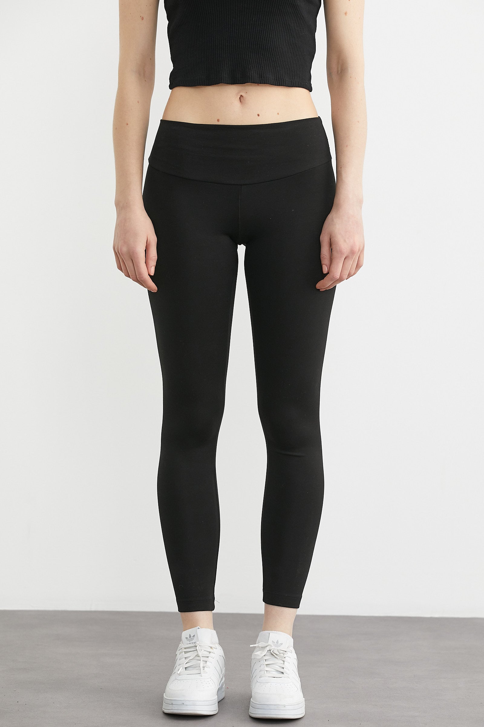 Yumuşak Dokulu Yüksek Bel Toparlayıcı Tayt - Siyah