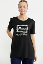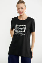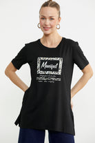 Baskılı Bisiklet Yaka Tunik Tişört - Siyah