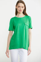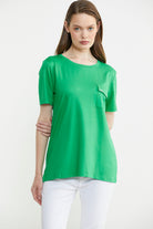 Cep Detaylı Sıfır Yaka Penye Tişört - Yeşil