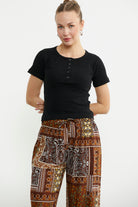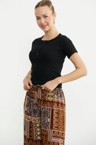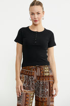 Düğmeli Kısa Kol Basic Tişört - Siyah