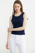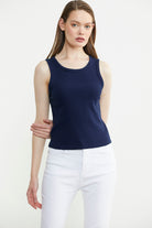 Fitilli Basic Kolsuz Tişört - Lacivert