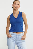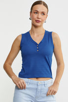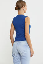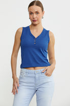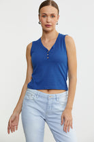 Kalın Askılı V Yaka Tişört - Saks