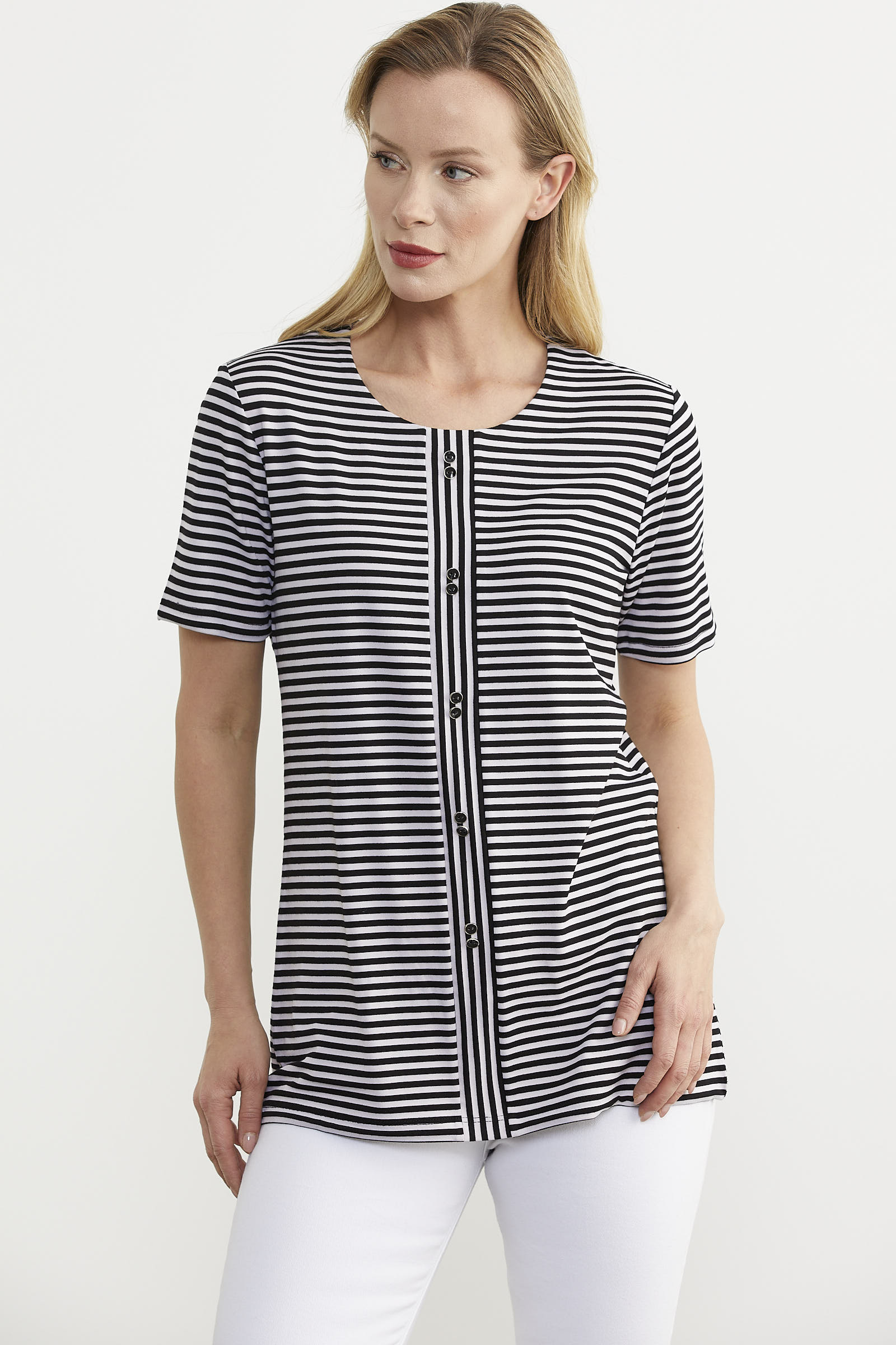 Tişörtler ile bir kombin oluşturmak zaten oldukça pratik. Bir de buna, her renk ile kolay ve etkili bir biçimde uyum yakalayan siyah tişört modelleri eklendiğinde; pratikliğin etkisi bir kat daha artıyor. Siyah tişörtler ile beraber mor tişört tasarımları da son yıllarda moda tutkunlarının vazgeçemediği renkler arasında yer alıyor. Ne de olsa siyah ve mor sadelik, zarafet ve asil bir duruşa sahip olunmasını sağlıyor. Bunun yanında diğer tüm renkler de göz ardı edilmemeli. Tişört modellerinde sık sık kullanılan ve herkesçe büyük beğeni toplayan dikey ve yatay çizgili tasarımlar, kısa tişört modellerinin yanı sıra uzun tişört seçeneklerinde de bolca kullanılan ve belirli bir stil çizgisine sahip kadınlarca tercih edilen ürünler arasında. Çünkü çizgili tişört tasarımları, her yaştan kadın için oldukça şık ve cezbedici. Bu nedenle Sementa’da, çizgili fermuarlı bluzlere, baskılı-çizgili tişörtlere yahut yine çizgili şort-tişört takımlara rastlamak mümkün!