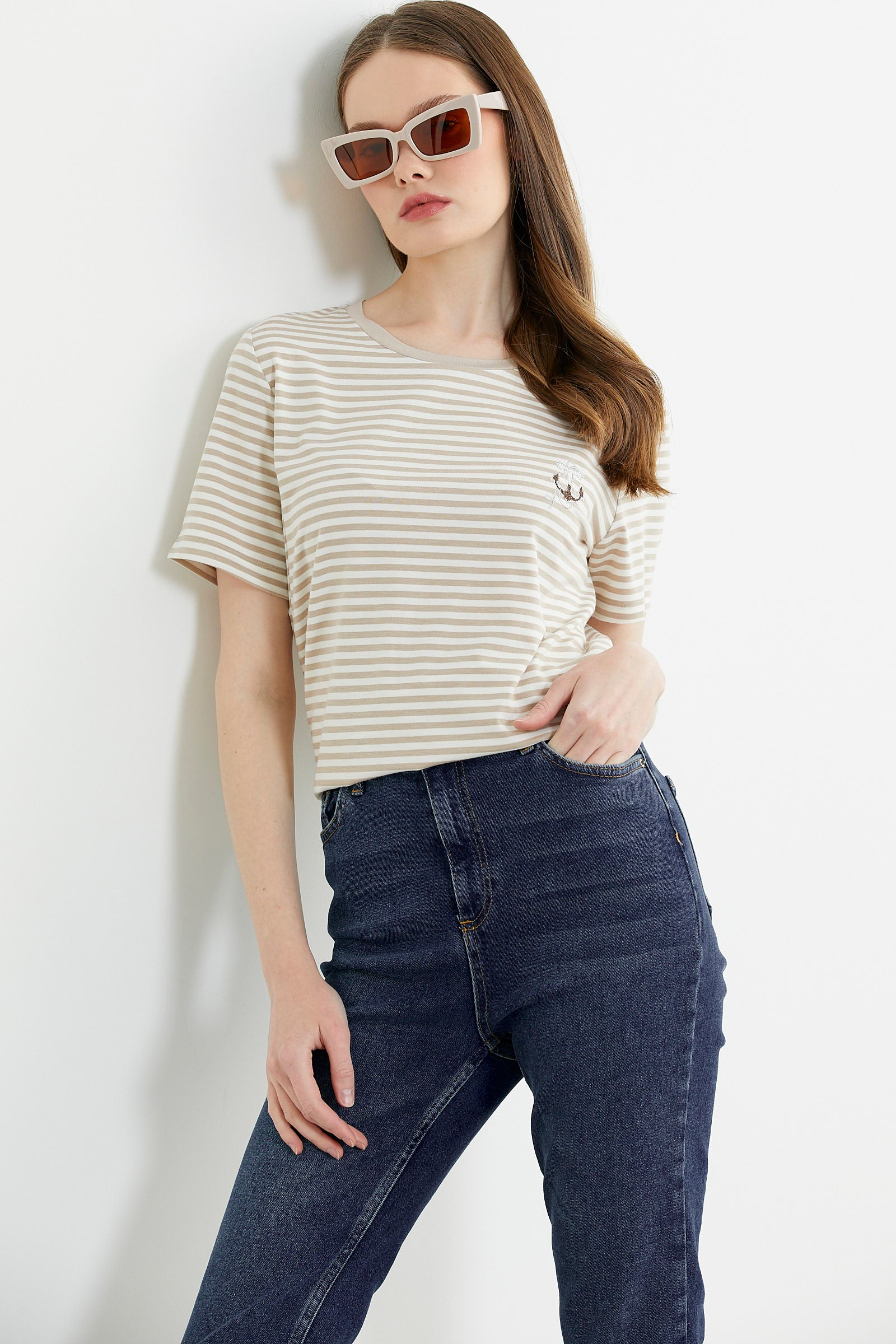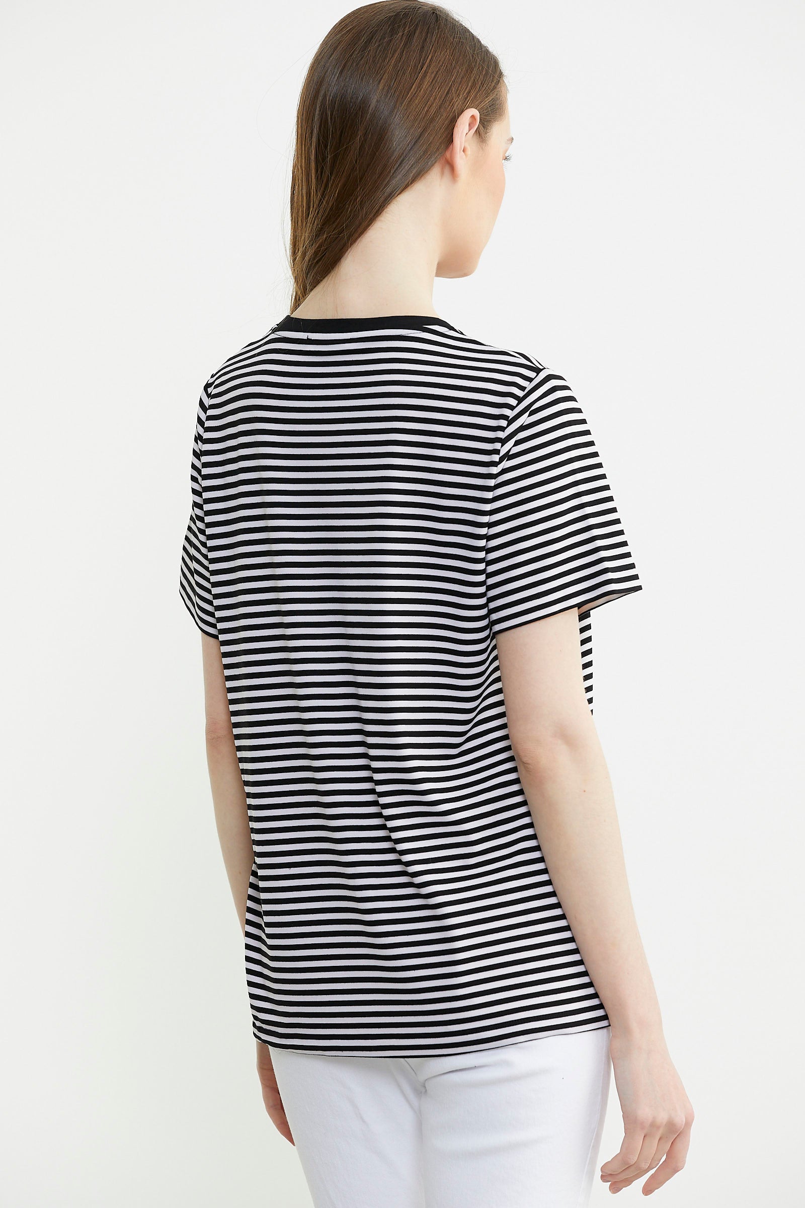 Çizgili desenlere sahip kadın tişört seçenekleri kategorimizde bulabileceğiniz ürünlerden bir diğeridir. Çizgilerin tüm tişört boyunca devam ettiği seçeneklerin yanı sıra ceplerde, yaka çevresinde, kollarda gibi spesifik bölgelerde çizgilerin yer aldığı alternatifler de mevcuttur. Sportif bir tarzdan çok şık tasarımlara sahip ürünler arayanlar leopar gibi farklı desenlere sahip ürünlerimize göz atabilir. Sayfamızdaki ürünleri incelerken fiyat aralıkları ve tişörtlere özel indirimler hakkında bilgi sahibi olabilirsiniz. Kaliteli kumaş yapısı sayesinde ve canlı renkleri sayesinde uzun ömürlü bir giyim süreci sağlayan kıyafetleri hemen satın alabilirsiniz. Zamansız tasarımları sayesinde kombinlerinizin bir parçası olmaya devam edecek tişörtlere ulaşabilirsiniz.