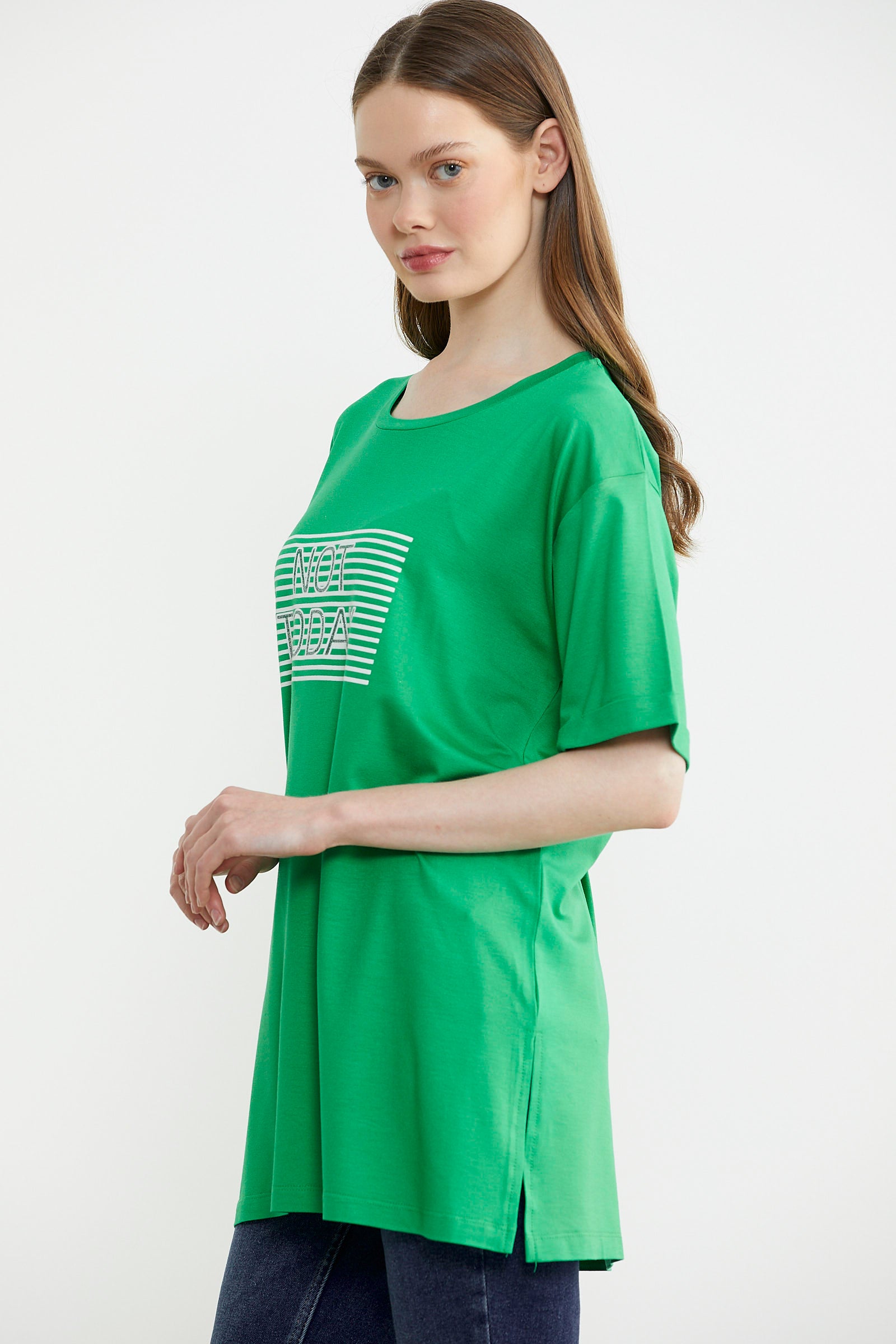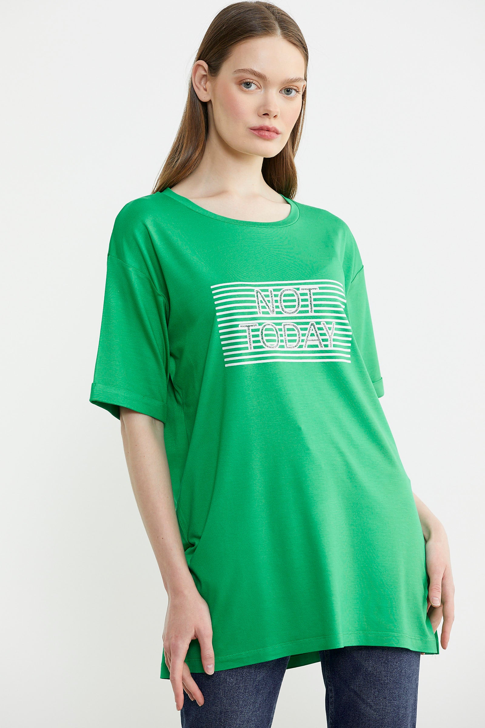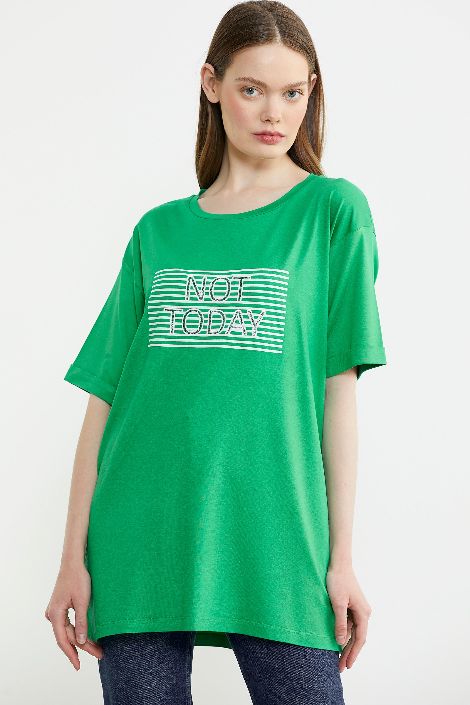 Yazı baskılarına sahip kadın tişört modelleri, sprotif bir sokak tarzını sevenlerin giyebileceği seçeneklerdir. Hem evde hem de dışarıda giyime uygun tasarımlara sahip yazılı modeller mevcuttur. Arka plan ve yazı rengine göre dikkatleri üzerine çekebilen baskıları bulunur. Zıt renkler bir arada kullanıldığında daha dikkat çekici bir tarz yaratır. Yazıların boyutları ve miktarı da genel tarzında rol oynar. Sementa olarak sizler için hazırladığımız kategoriyi incelerken ürün fotoğraflarını bulabilir, kadın tişört yazı baskılarını okuyabilirsiniz. Böylece tarzınıza ve kişliğinize uygun yazıyı içeren tişörtü kolayca tespit edebilirsiniz.