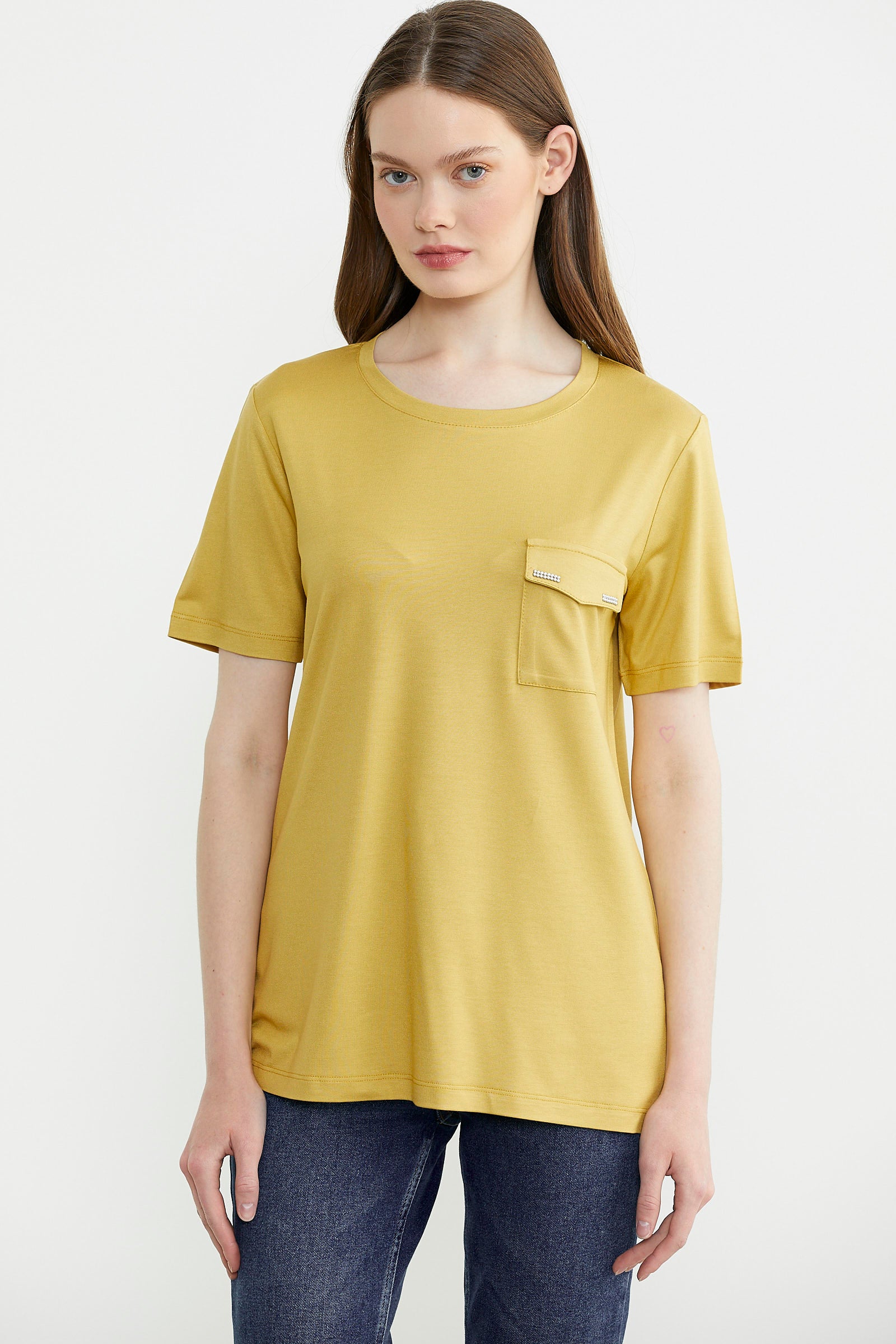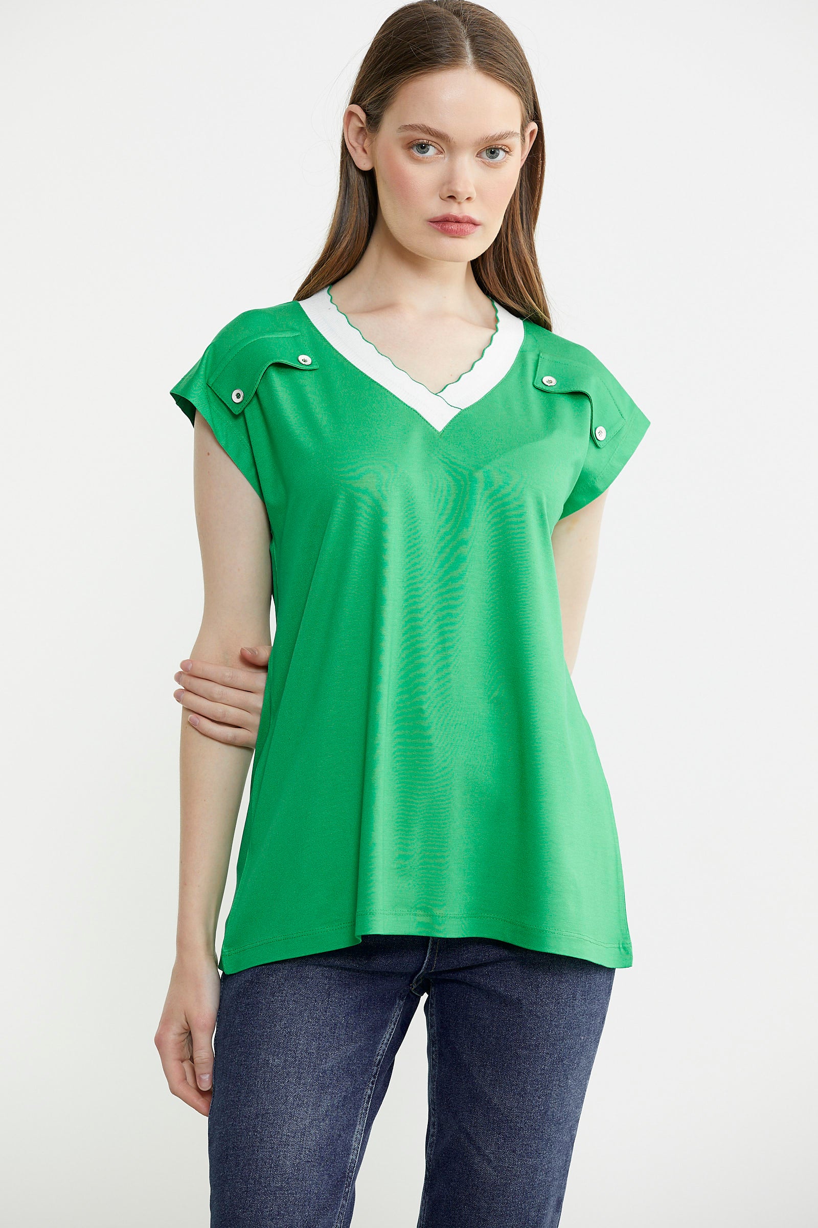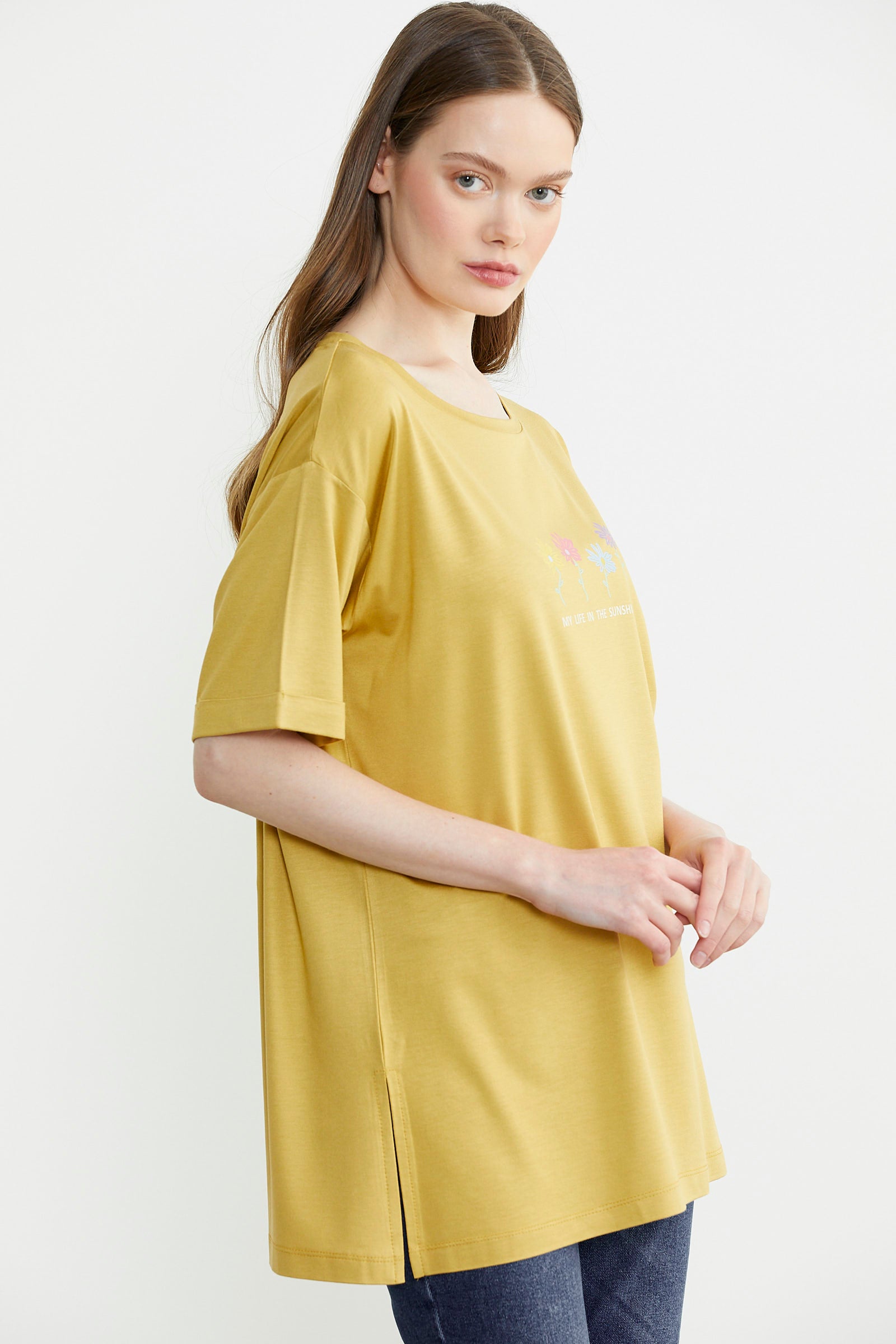Zor zamanların kurtarıcısı olan ve istediğiniz tüm kombinlerde kullanılabilen kadın tişört modellerinden bir diğeri, geniş yaka düz renk seçeneklerdir. Sarı ve saks gibi canlı tonların yanı sıra siyah ve beyaz gibi daha sade renk alternatifleri de bulunur. Gardıroplarınıza en sevdiğiniz renklerden birkaç tane tişört eklemeniz hızlı hazırlanmanız gereken anlarda kolaylık sağlayabilir. Geniş yaka yerine V yaka veya sıfır yaka modellere de ulaşmanız mümkündür.