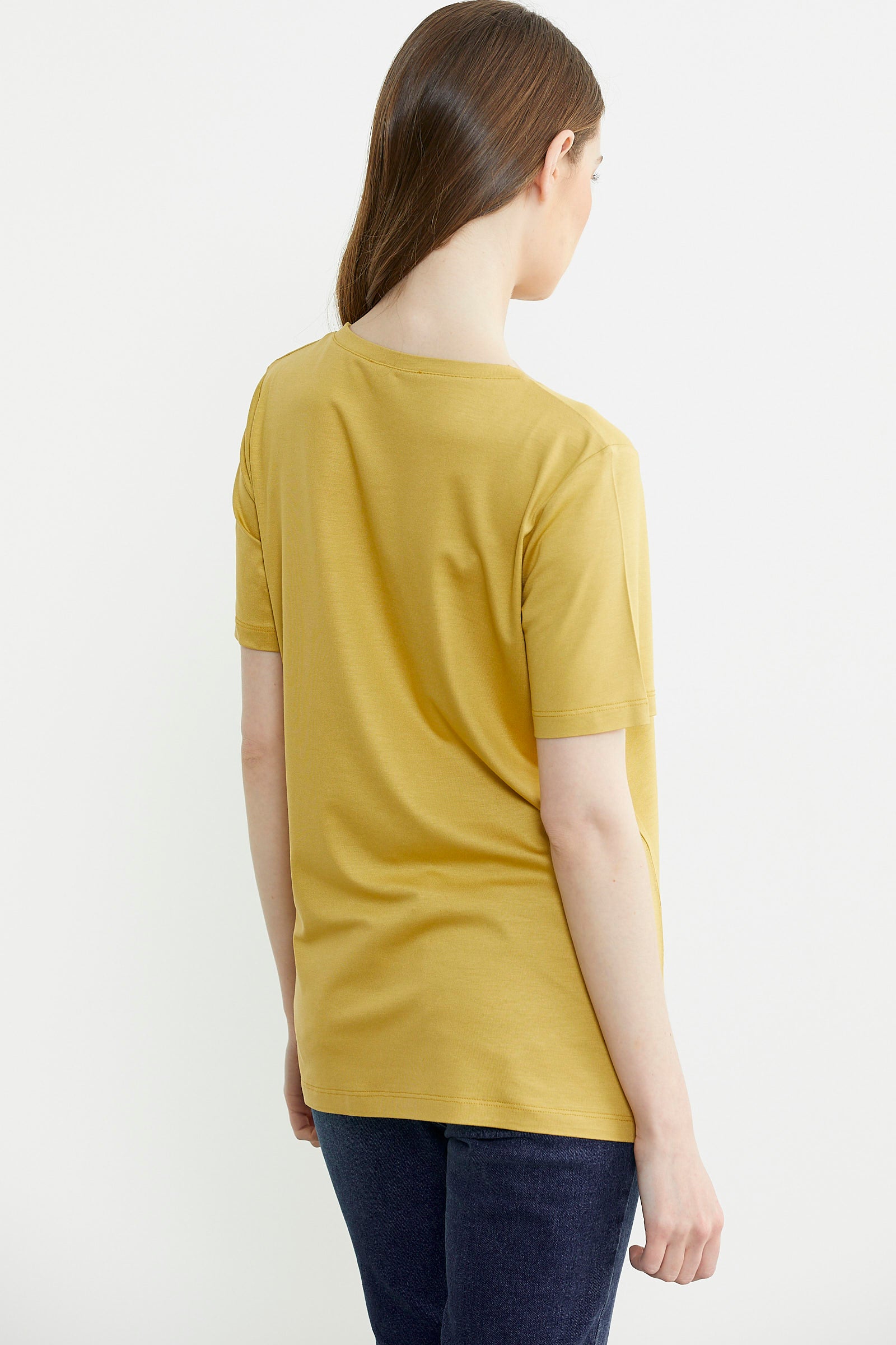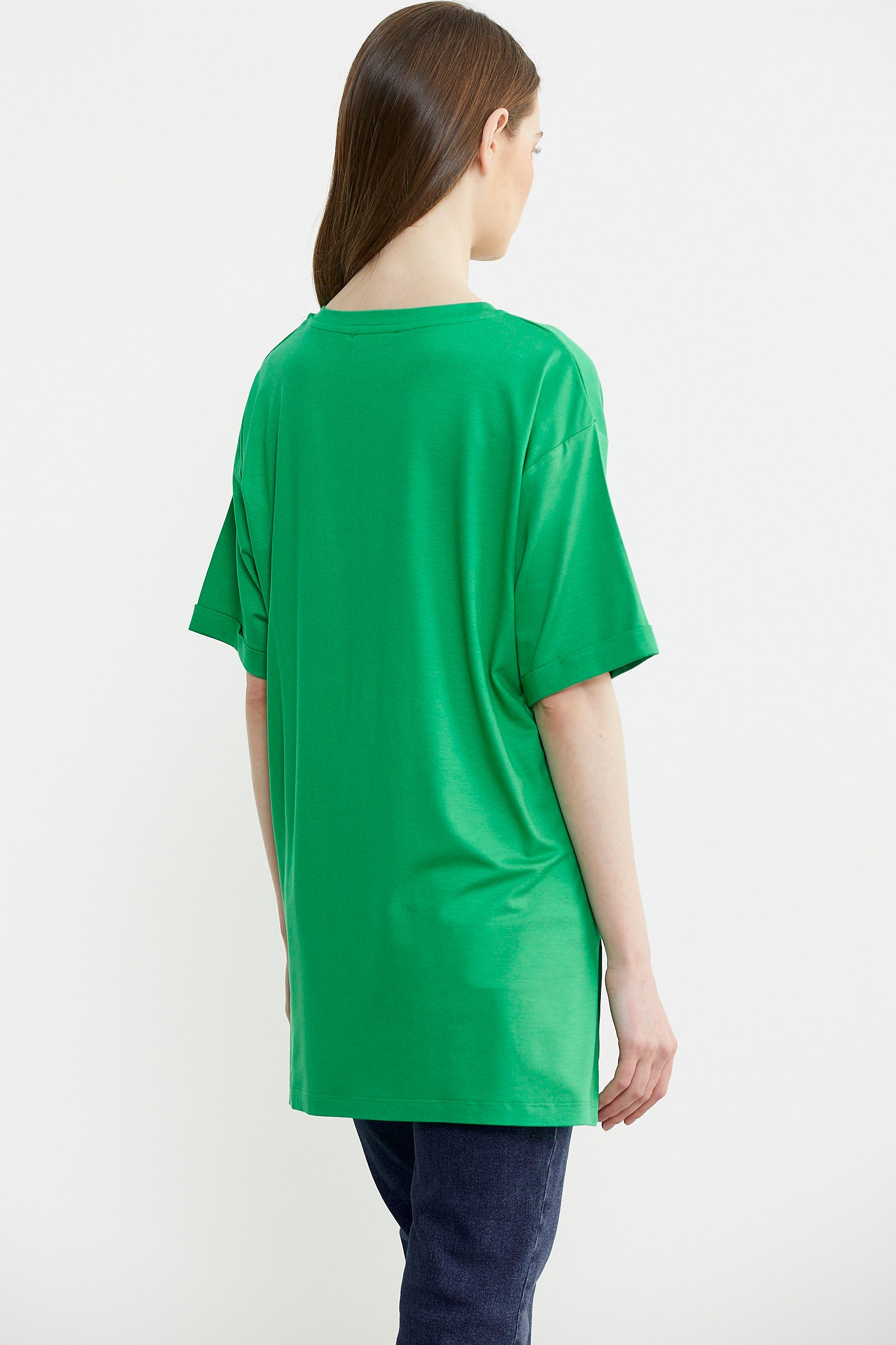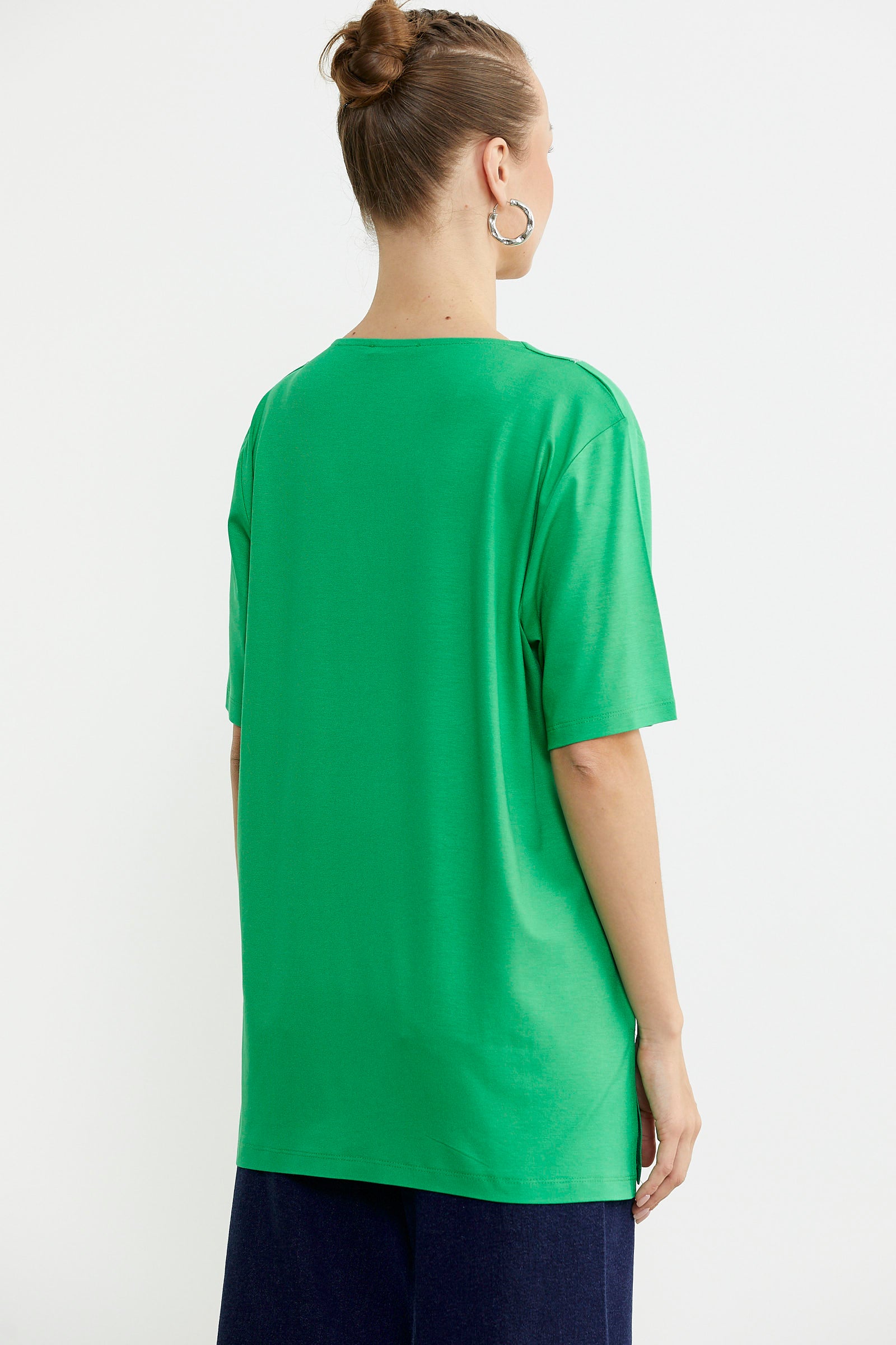 Zor zamanların kurtarıcısı olan ve istediğiniz tüm kombinlerde kullanılabilen kadın tişört modellerinden bir diğeri, geniş yaka düz renk seçeneklerdir. Sarı ve saks gibi canlı tonların yanı sıra siyah ve beyaz gibi daha sade renk alternatifleri de bulunur. Gardıroplarınıza en sevdiğiniz renklerden birkaç tane tişört eklemeniz hızlı hazırlanmanız gereken anlarda kolaylık sağlayabilir. Geniş yaka yerine V yaka veya sıfır yaka modellere de ulaşmanız mümkündür.
